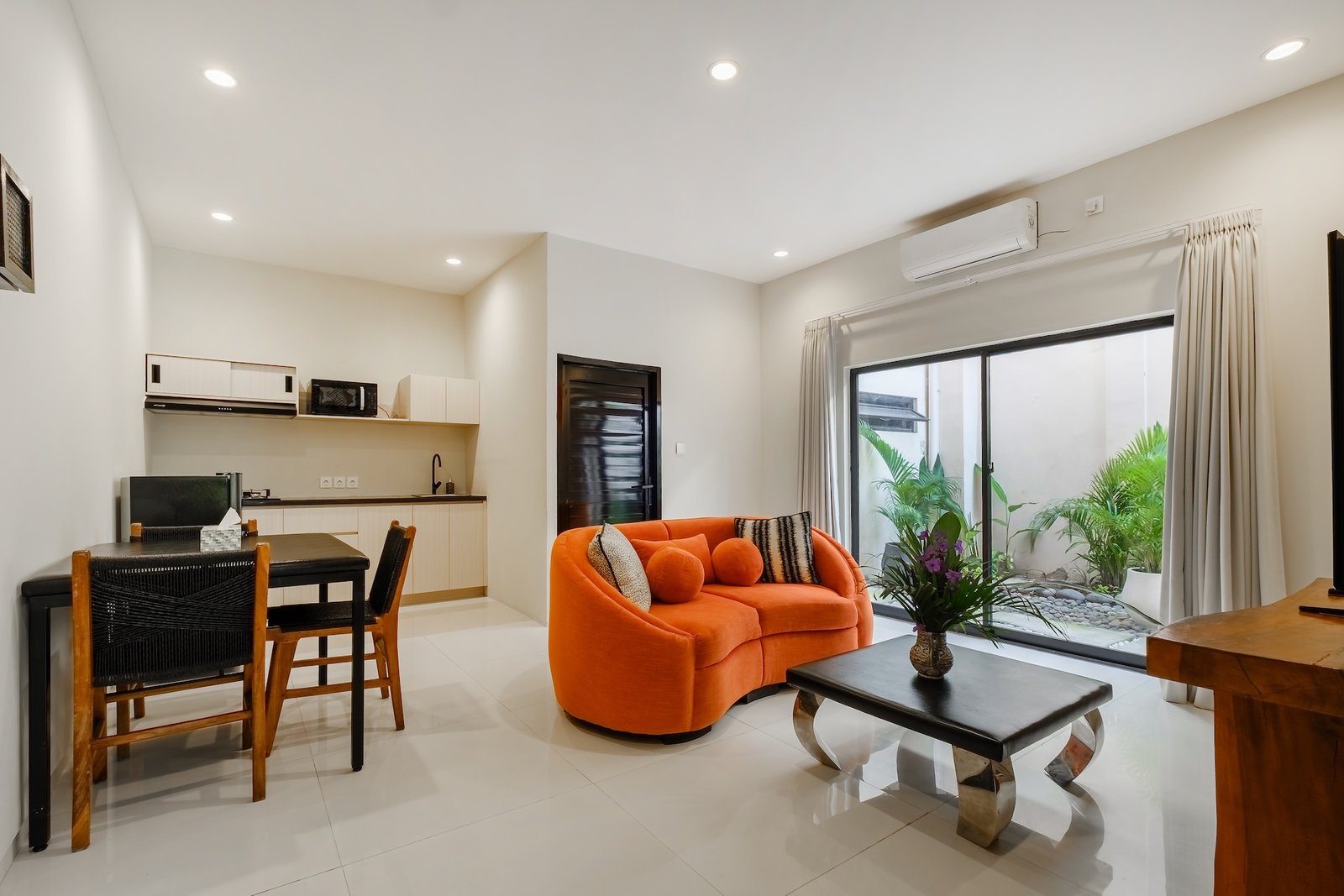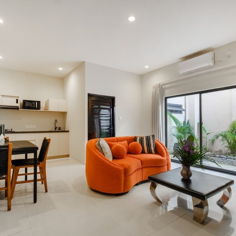 A cozy 1-bedroom apartment situated on the ground floor in Seminyak, just a short walking distance to Starbucks Reserve and Sushi Hiro. Double Six Beach can be reached in less than 8 minutes by motorbike.Perfect for a single person or a young couple who enjoys living in a stylish apartment close to everything.
