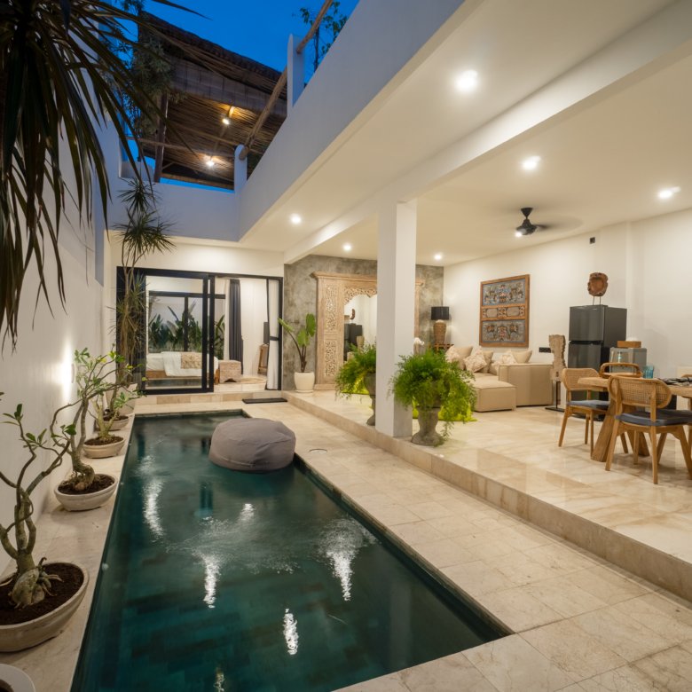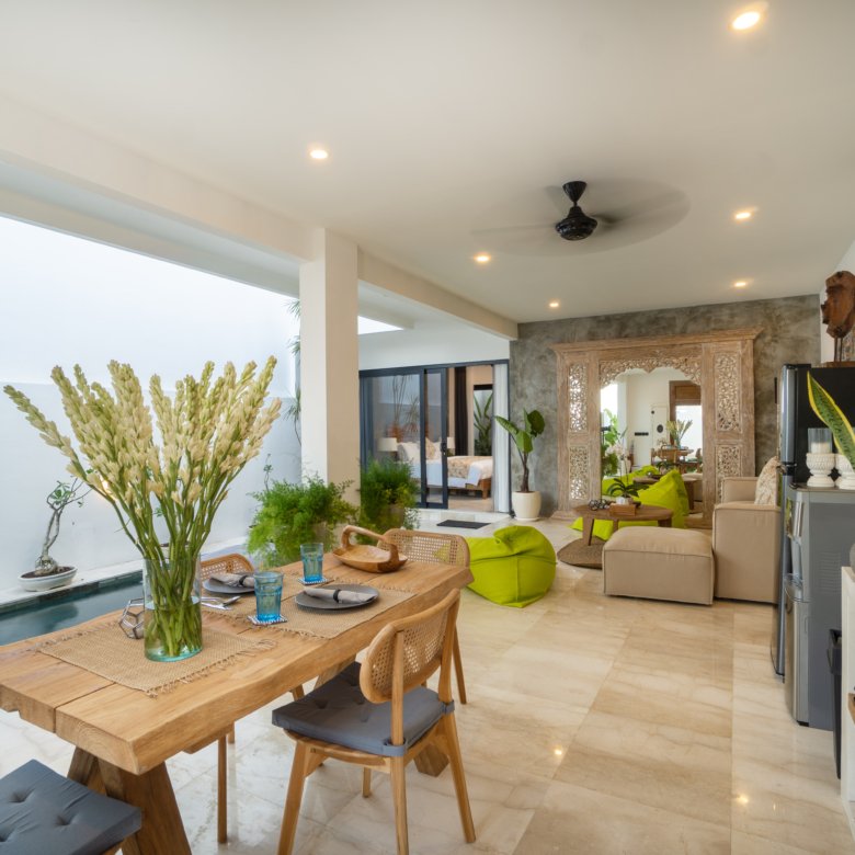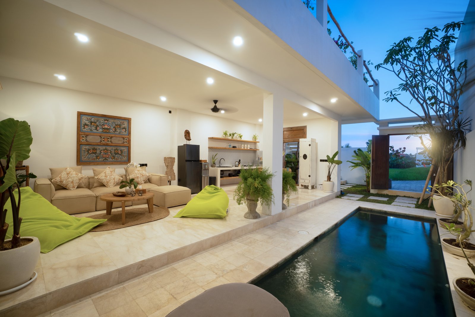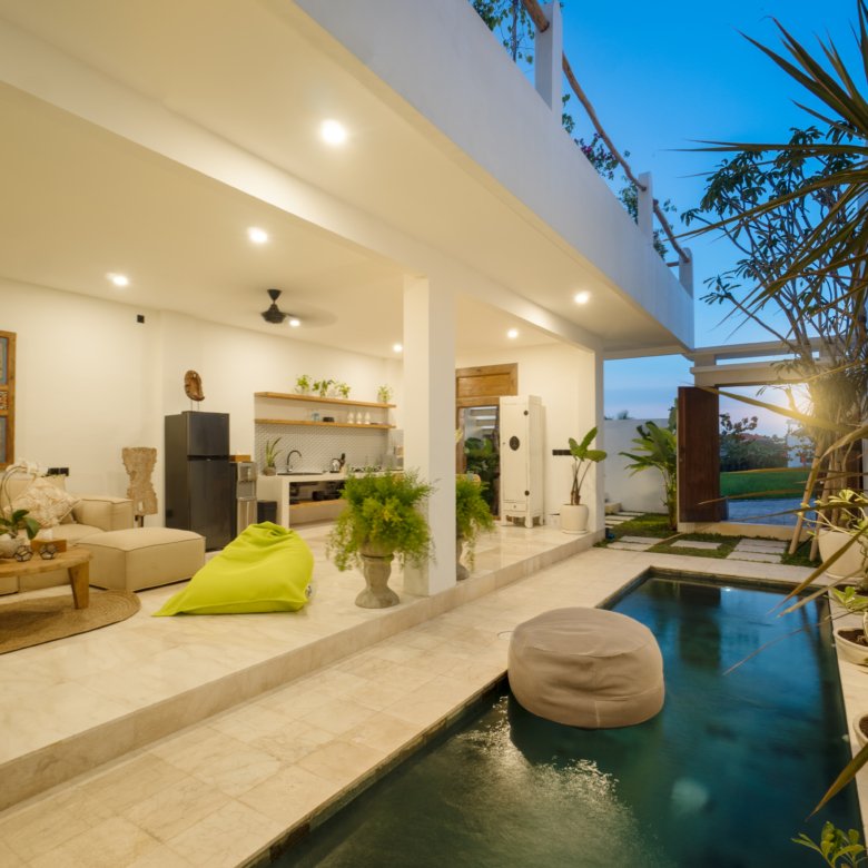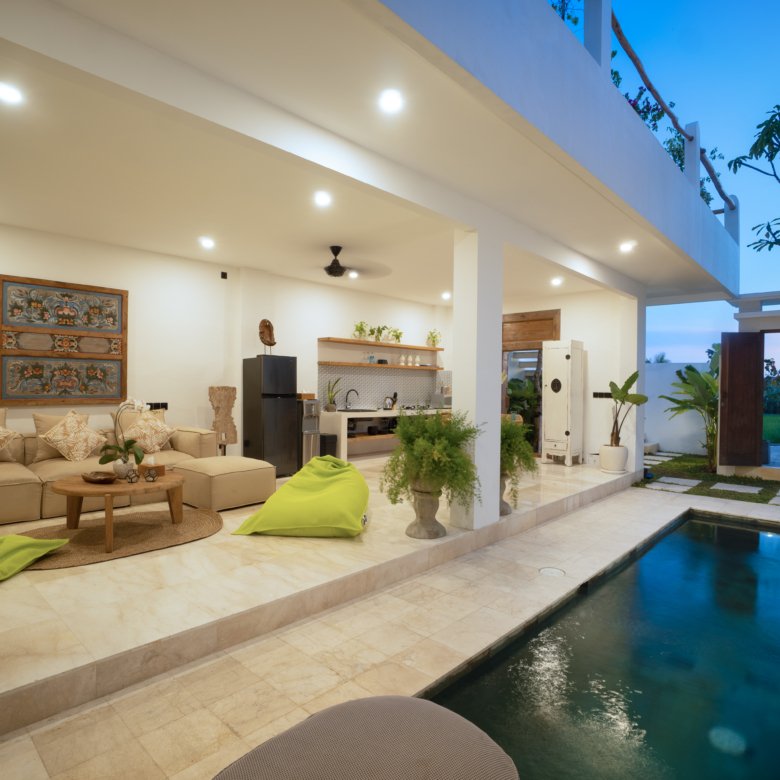 Nestled in the tranquil residential community of Tumbak Bayuh in North Pererenan, this brand-new tropical modern villa offers a serene lifestyle just ten minutes away from the vibrant energy of Pererenan Beach and Canggu. The property is thoughtfully designed as a light-filled single-floor sanctuary complemented by an expansive rooftop that captures breathtaking views of the surrounding ricefields. Situated in a sought-after pink zone with both SLF and Pondok Wisata licenses already secured, this residence is perfectly prepared for immediate occupancy or as a high-potential holiday rental. The interior features an extra powder room for guest convenience, ensuring that every detail aligns with a premium living experience in one of Bali’s most peaceful yet accessible neighborhoods.