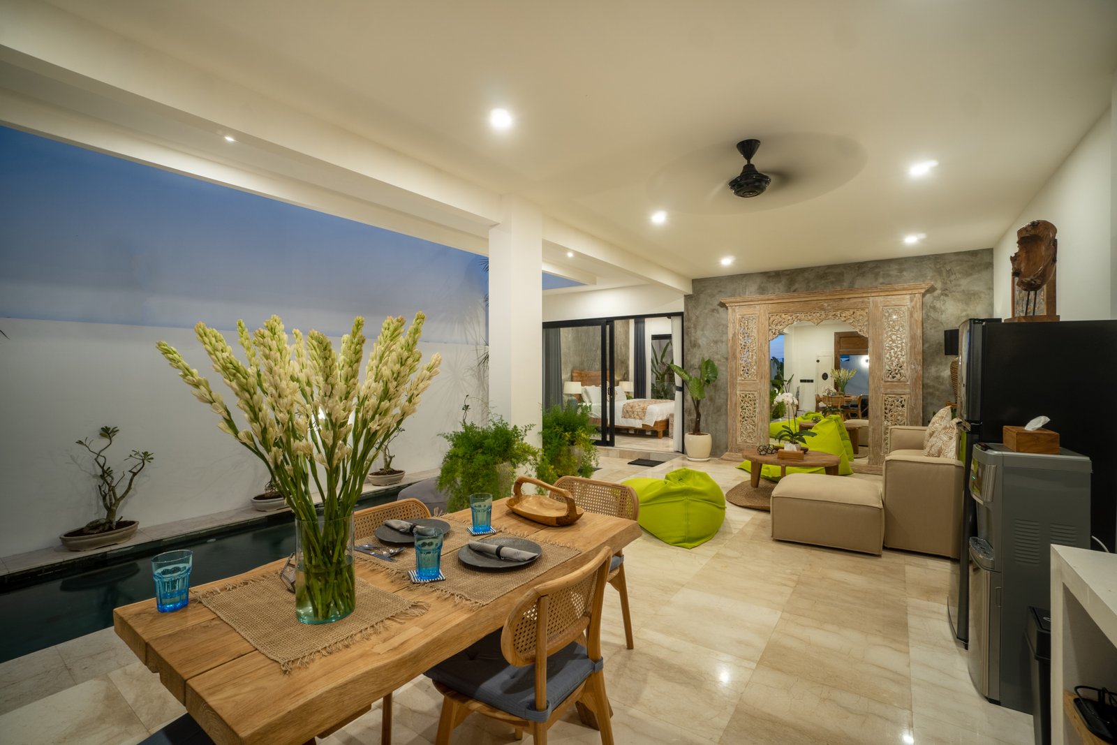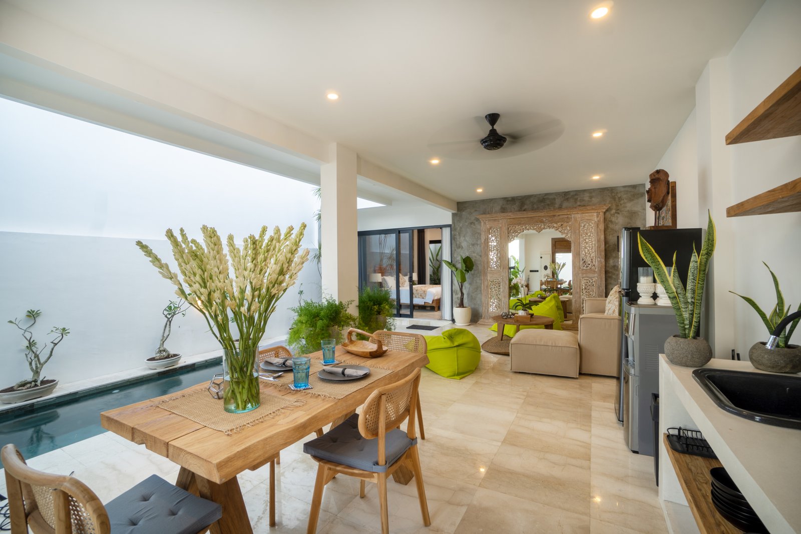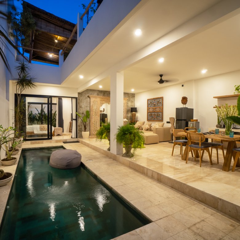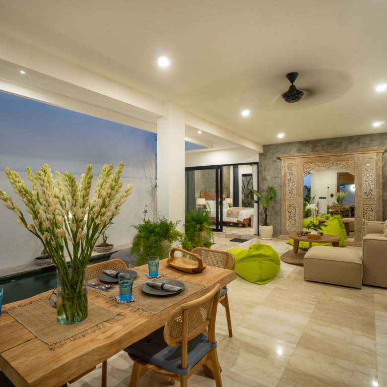 Nestled in the tranquil residential community of Tumbak Bayuh in North Pererenan, this brand-new tropical modern villa offers a serene lifestyle just ten minutes away from the vibrant energy of Pererenan Beach and Canggu. The property is thoughtfully designed as a light-filled single-floor sanctuary complemented by an expansive rooftop that captures breathtaking views of the surrounding ricefields. Situated in a sought-after pink zone with both SLF and Pondok Wisata licenses already secured, this residence is perfectly prepared for immediate occupancy or as a high-potential holiday rental. The interior features an extra powder room for guest convenience, ensuring that every detail aligns with a premium living experience in one of Bali’s most peaceful yet accessible neighborhoods.