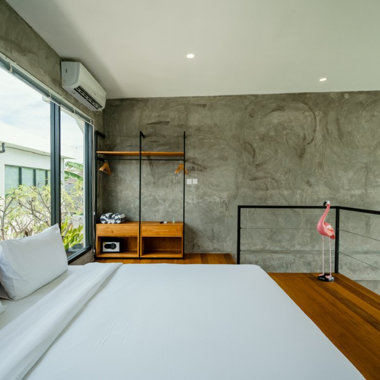 This deluxe-type no 7 villa in Canggu Babakan is available for monthly and yearly rent—just ask for current availability. Designed in a stylish loft mezzanine concept, the villa offers serene views of the pool and surrounding rice fields. Located in a peaceful yet strategic area, it’s close to Fine by SatuSatuCoffee and only a 10-minute bike ride to Batu Bolong Beach, making it a perfect blend of comfort, style, and convenience for your Bali stay.
