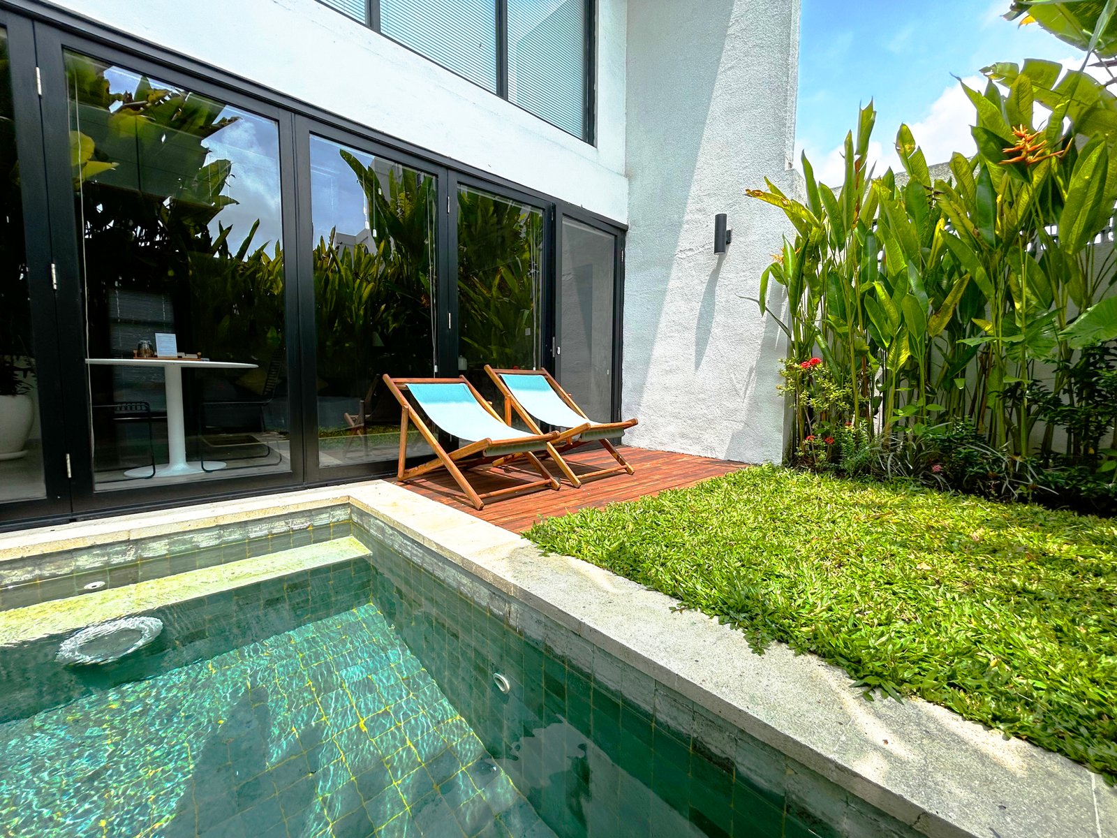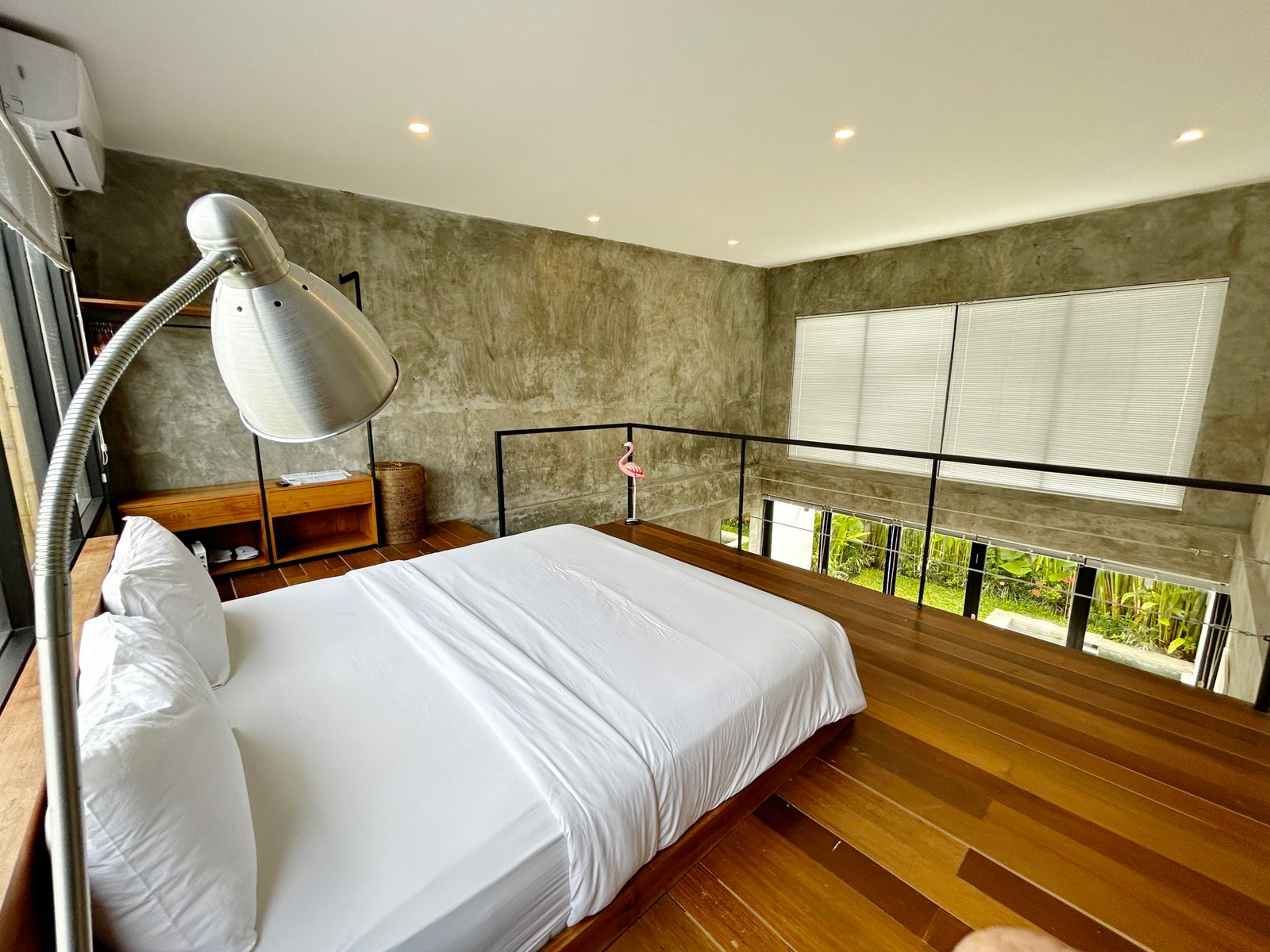 This standard-type no 11 villa in Canggu Babakan is available for monthly and yearly rent—just ask for current availability. Designed in a stylish loft mezzanine concept, the villa offers serene views of the pool and surrounding rice fields. Located in a peaceful yet strategic area, it’s close to Fine by SatuSatuCoffee and only a 10-minute bike ride to Batu Bolong Beach, making it a perfect blend of comfort, style, and convenience for your Bali stay.