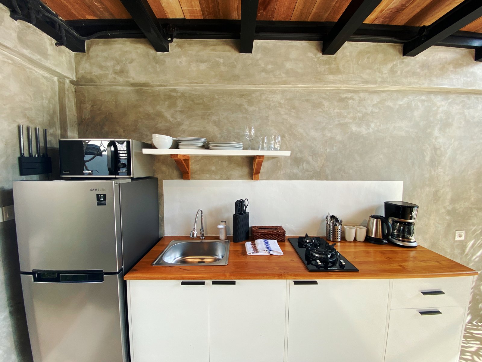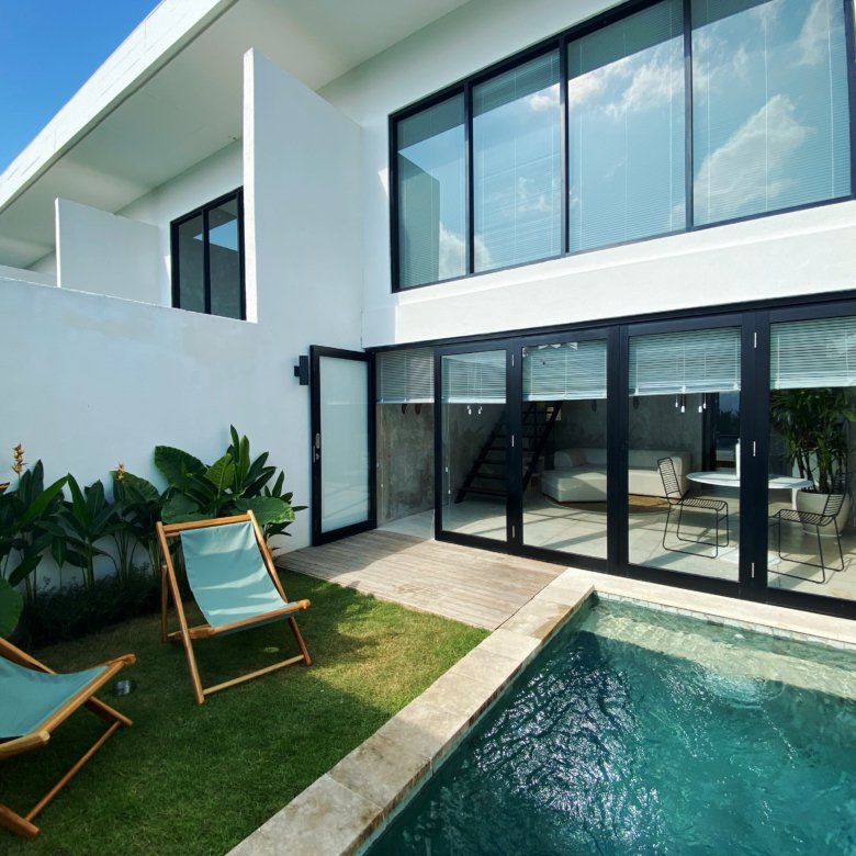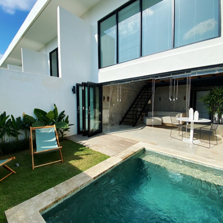 This standard-type no 4 villa in Canggu Babakan is available for monthly and yearly rent—just ask for current availability. Designed in a stylish loft mezzanine concept, the villa offers serene views of the pool and surrounding rice fields. Located in a peaceful yet strategic area, it’s close to Fine by SatuSatuCoffee and only a 10-minute bike ride to Batu Bolong Beach, making it a perfect blend of comfort, style, and convenience for your Bali stay.