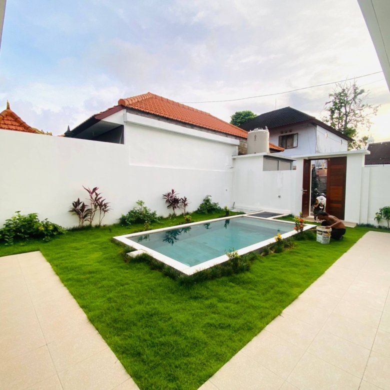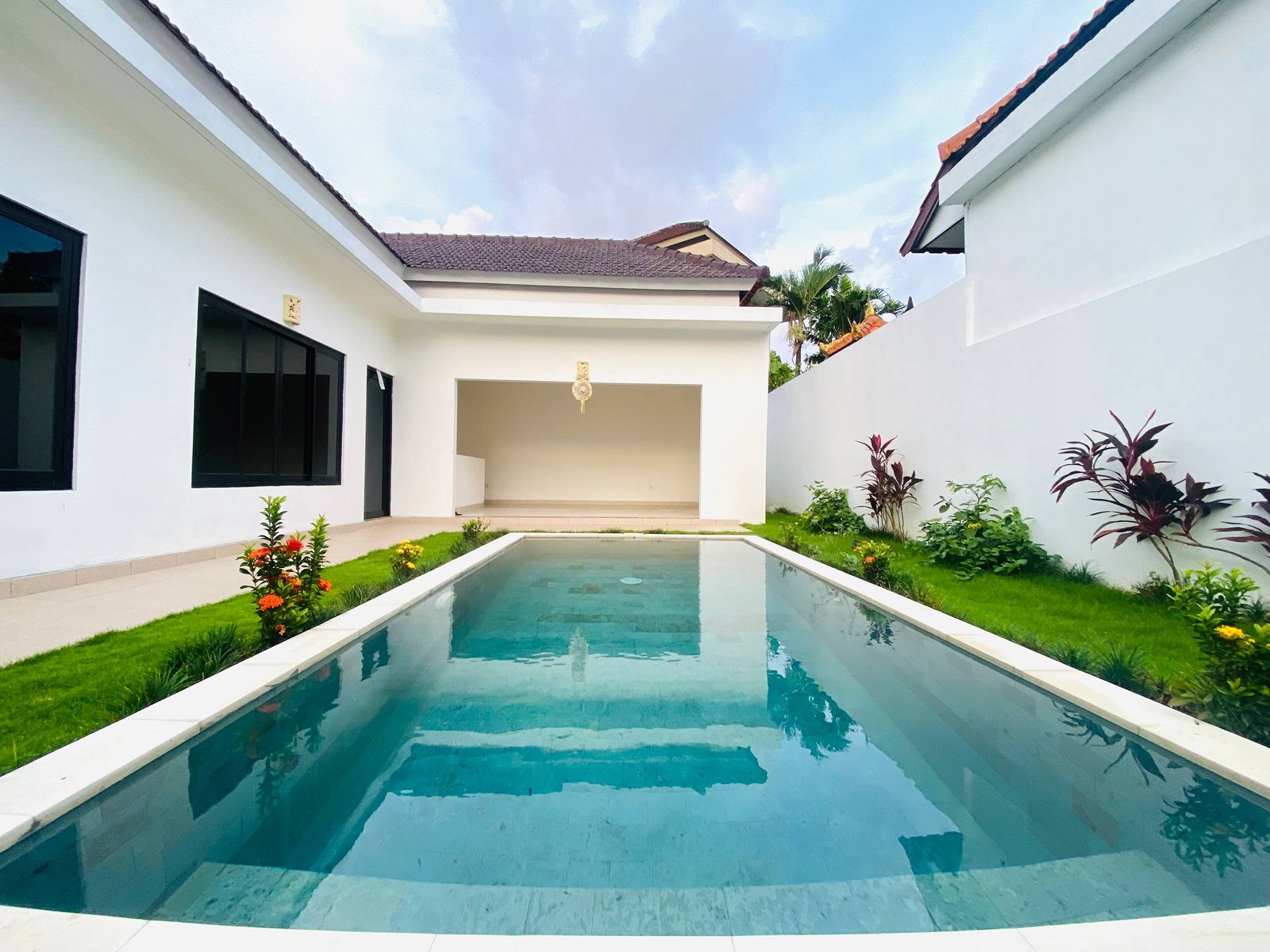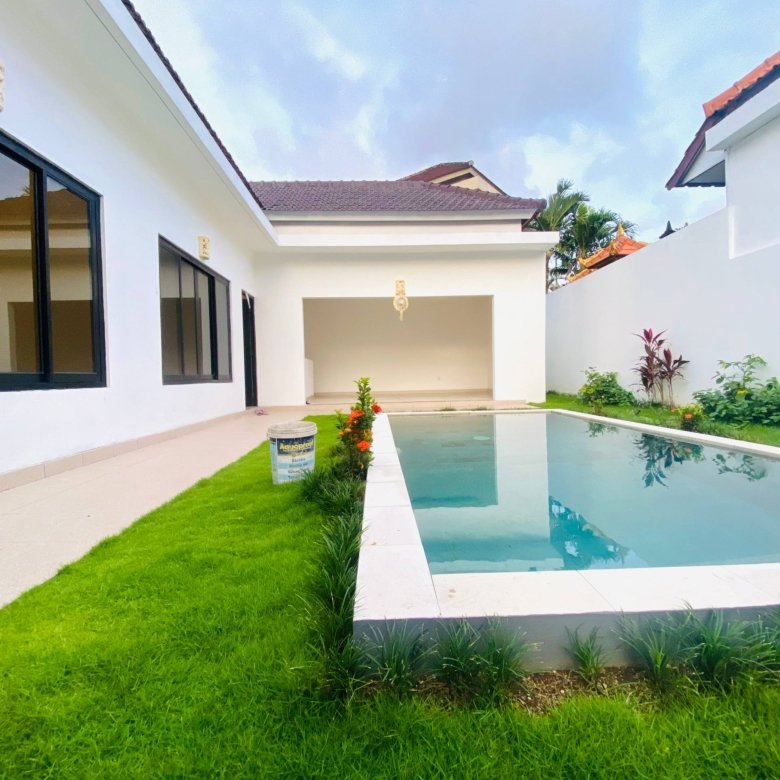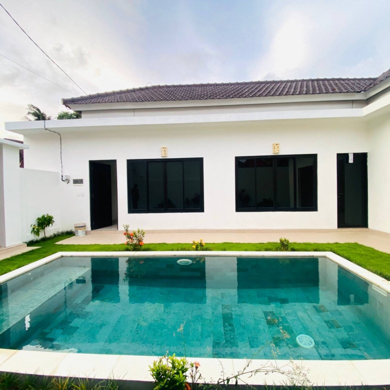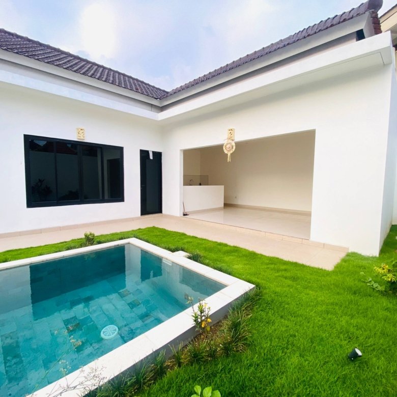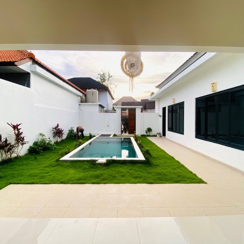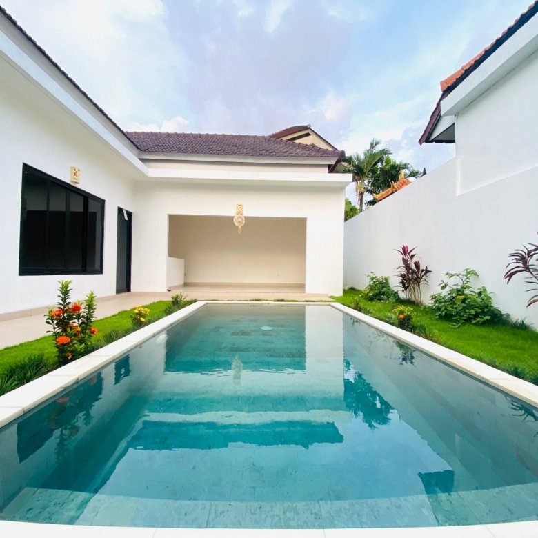 This modern Balinese villa in Umalas is ready now for yearly rent, offering a pool view. It is situated in a strategic location in one of the most popular areas for tourists and expats to live in, near many cafes and bars, and only 10 minutes from Berawa Beach. Parking is available for cars and bikes, though access is via a narrow street for small cars. Subleasing is possible as the property is located in an orange zone.