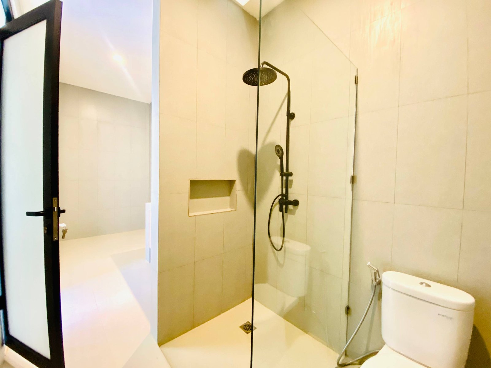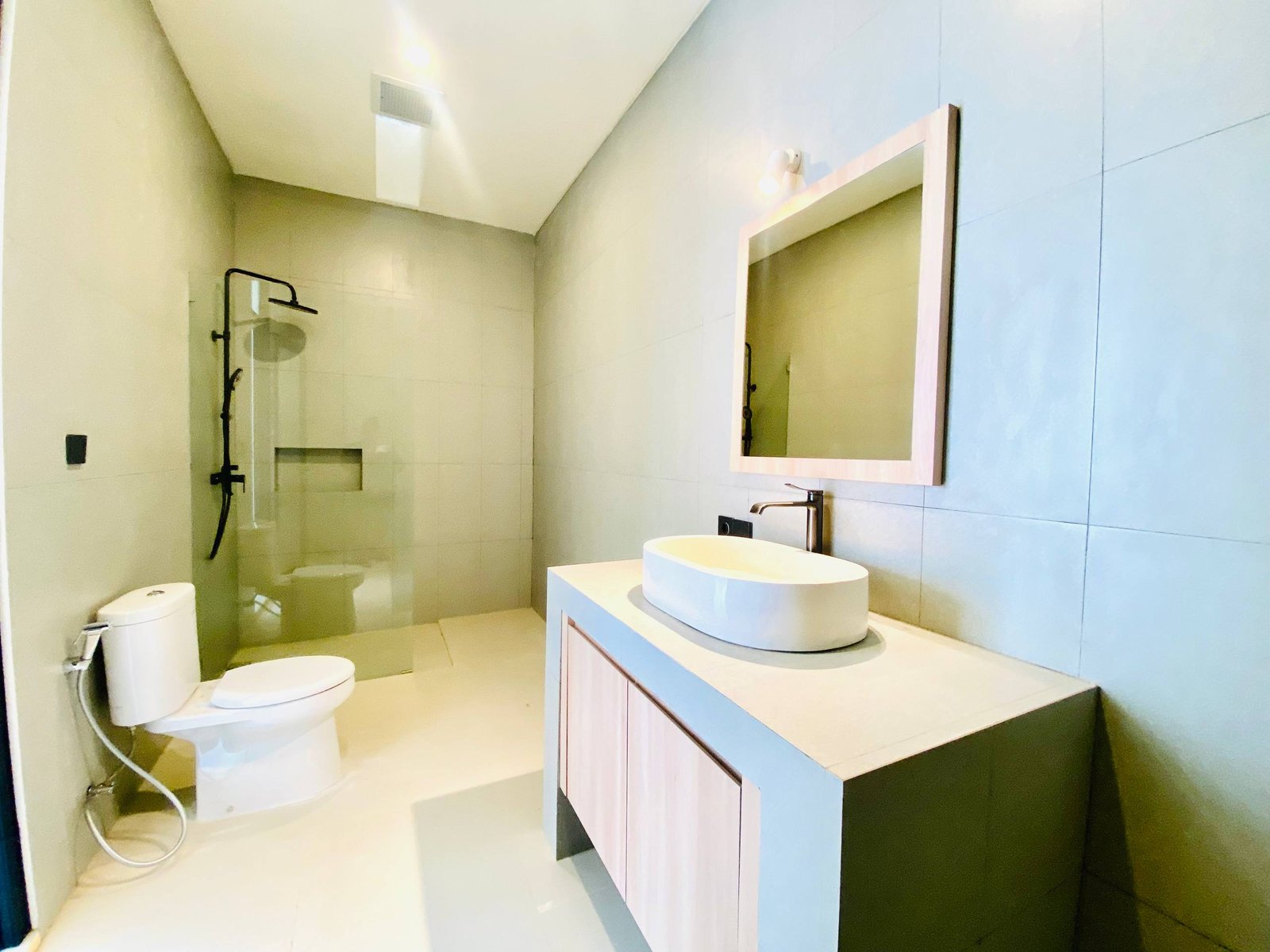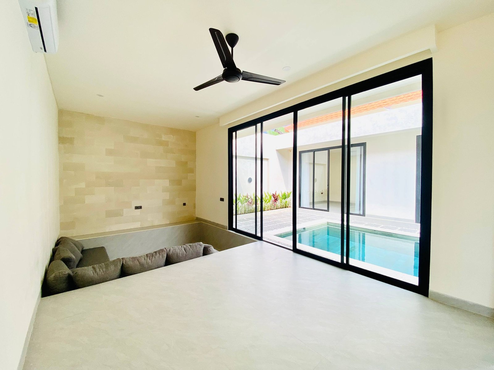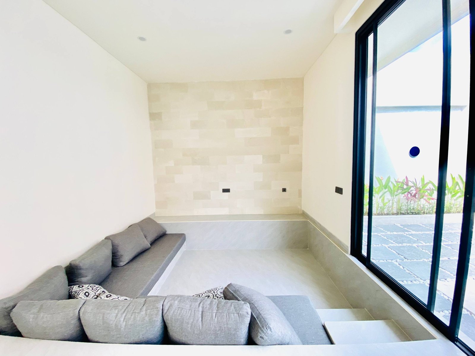 This is Villa B, a modern villa in Umalas Bumbak available for yearly rent, offering a pool view. It is situated in a strategic location in one of the most popular areas for tourists and expats, near various cafes and bars such as Plumber Arms Bar, Bali Buda, and Seketei Sushi. It is conveniently only 4 minutes to Berawa, 7 minutes to Canggu, 7 minutes to Petitenget, and 30 minutes to the Airport. Subleasing is possible.