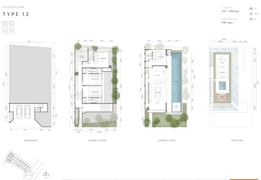 Available for both leasehold and freehold, this villa complex, Unit N-15, features a unique Type 12 design with only 10 units remaining. Currently under construction in Canggu Padang Linjong, it is set to be ready by December 2026. The villas boast a Eucalyptus Forest Luxury Wellness Living style, complete with a private basement. The surrounding residential area is perfect for those who enjoy being close to the action, with numerous cool restaurants and easy walking access to popular beaches and beach clubs. The location is ideal for beach lovers, with Sensorium just 20 meters away, and La Brisa a short 2-minute drive. You’re also minutes away from Batu Mejan Beach (3 min), Batu Bolong Beach (5 min), Echo Beach (6 min), and Pererenan Beach (6 min), as well as famous beach clubs like ATLAS (11 min) and Finn’s (11 min). The complex is located in a Zone Orange area and offers a range of public facilities, including a gym, sauna, yoga deck, massage room, restaurant, and buggy car service.