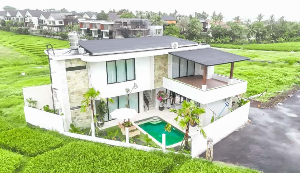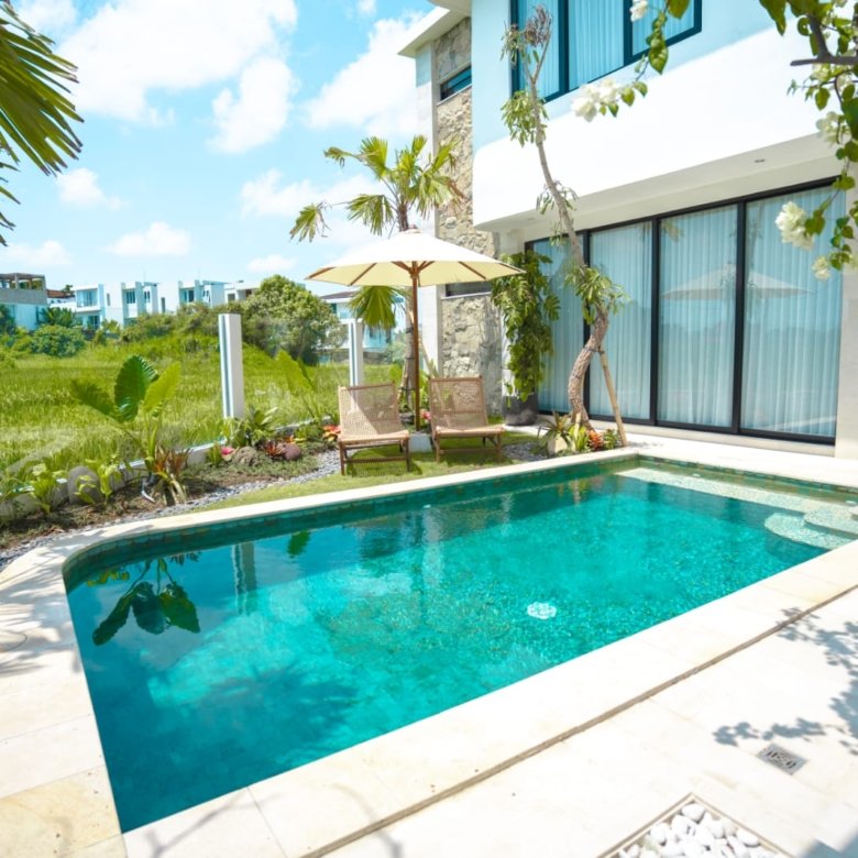 This stunning modern and luxury villa, located in the serene area of Cemagi, is set to be completed by September 2025. The two-story, fully furnished property boasts a land size of 150 sqm and a building size of 180 sqm. It features two spacious bedrooms, two bathrooms, and an enclosed living and dining room. The villa offers breathtaking views of rice fields and the ocean, along with a 3 x 5 swimming pool and a beautiful garden, making it perfect for pet lovers. Additionally, the property includes parking for both car and bike, with 7700 KWH electricity power and a drill well water source. The villa is available for IDR 5,500,000,000 (negotiable) and comes with freehold SHM.