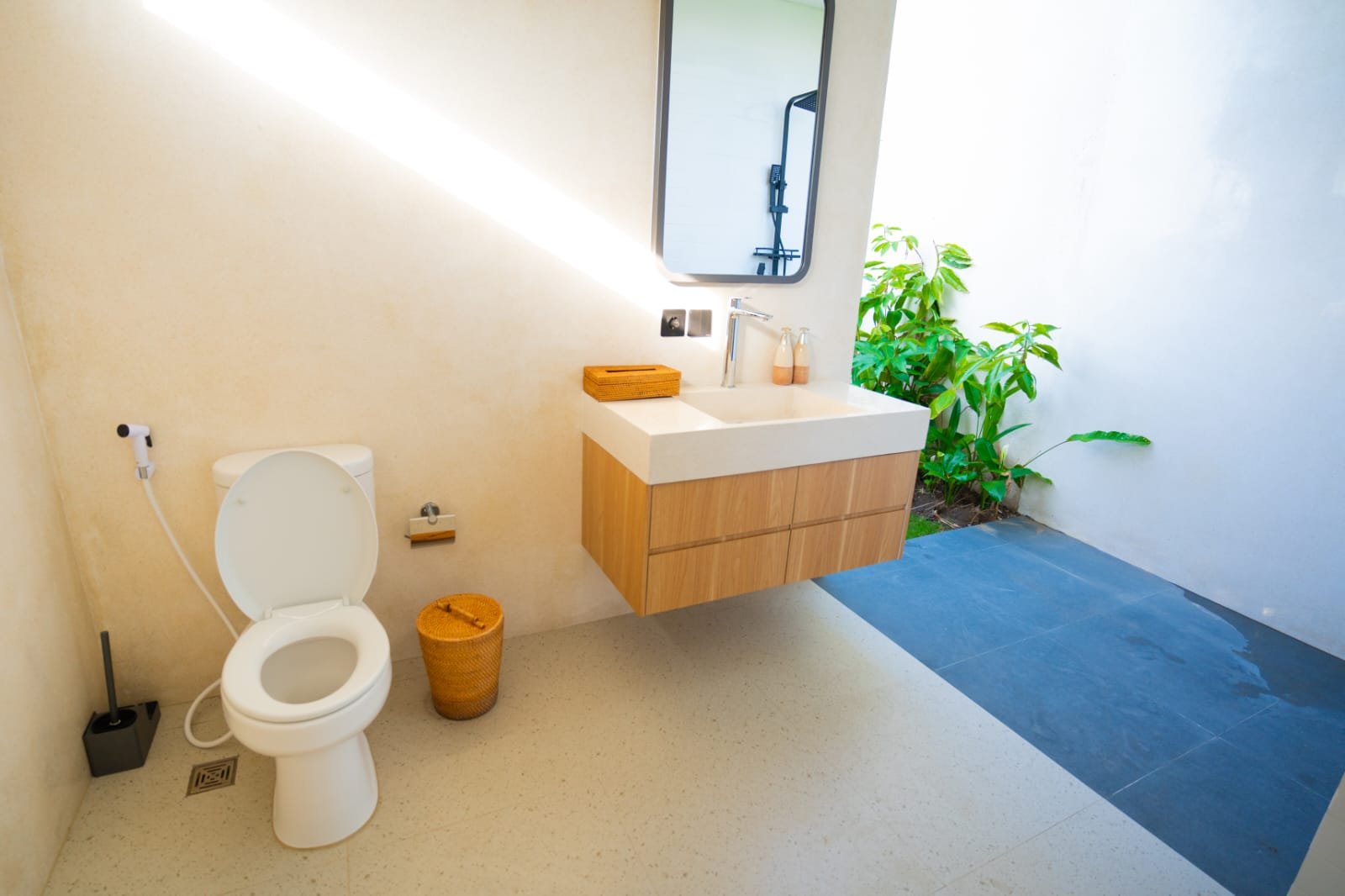 The villa’s modern design is complemented by its premium surroundings with the pink zone, including Campbar Caffe & Bar and the nearby Cemagi Beach. With three air conditioners and a balcony on the second floor, this property ensures comfort and style. This villa promises a luxurious living experience, making it an ideal investment. Don’t miss the opportunity to own this piece of paradise in Cemagi.