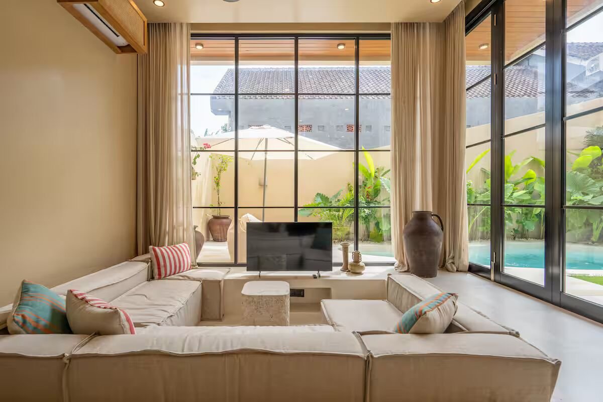 This modern luxury villa in Pererenan is ready now for monthly and yearly rent. It offers a pool view and boasts a strategic location, being only a 10-minute drive to Pererenan Beach and close to cafes, restaurants, and all the Pererenan hotspots.