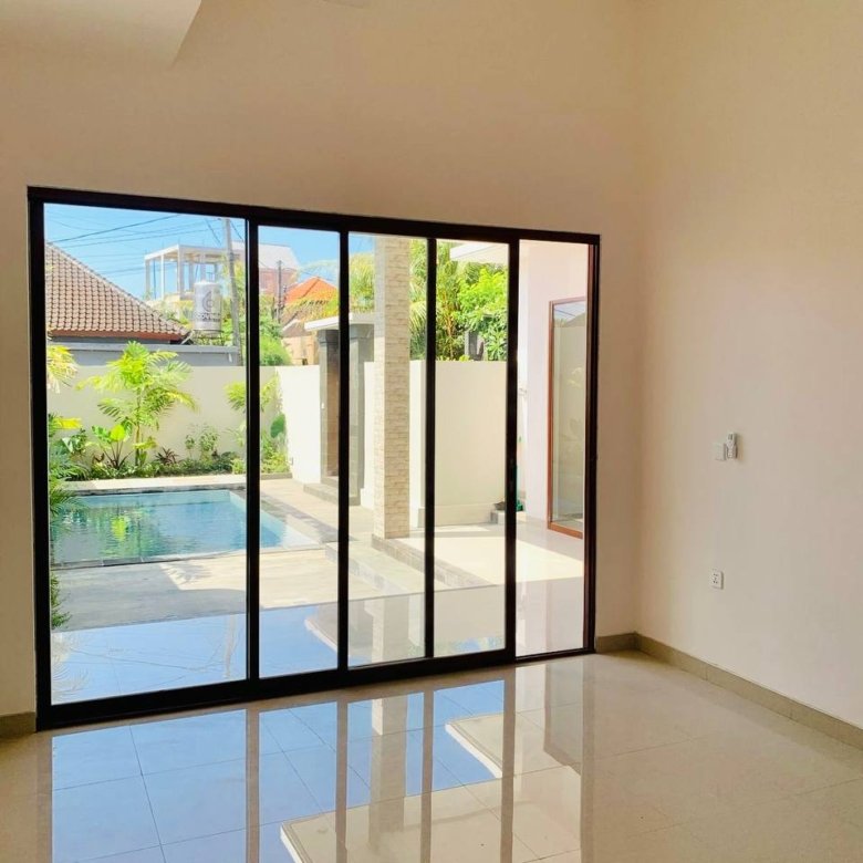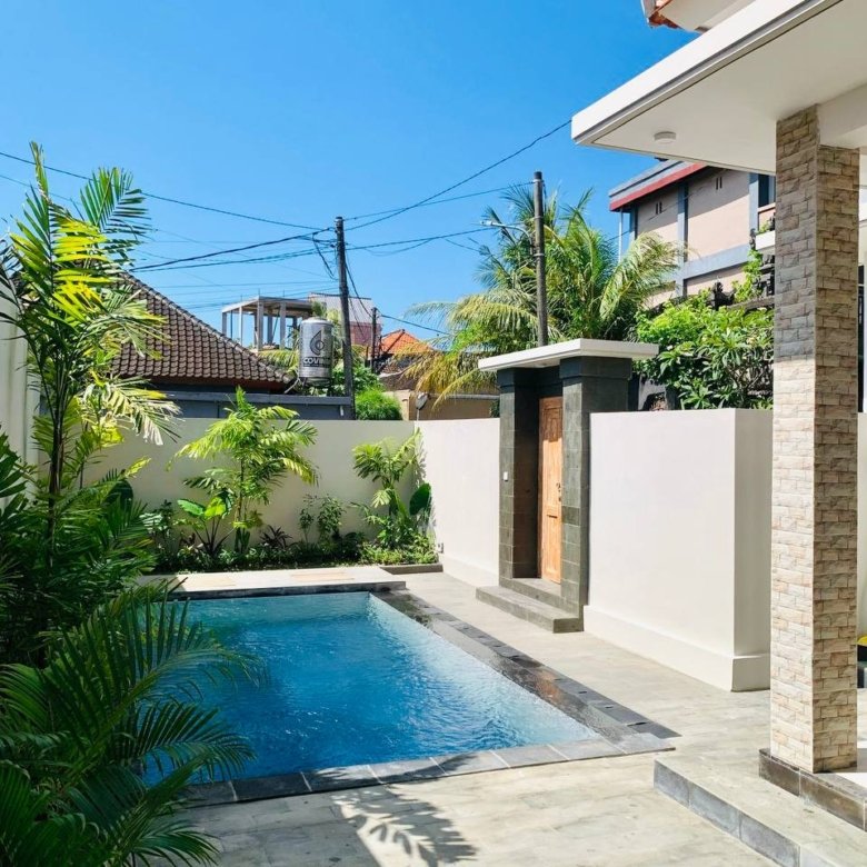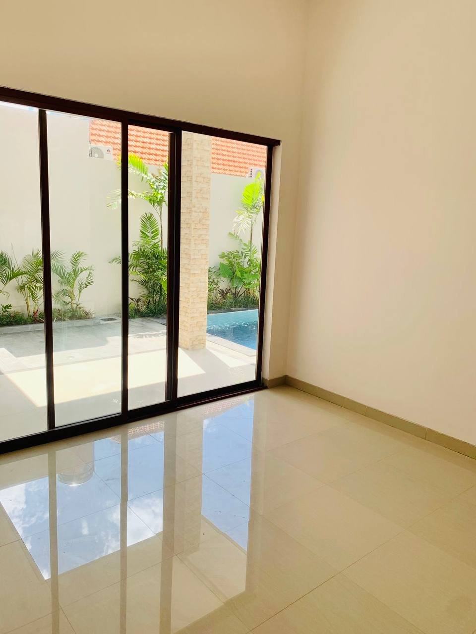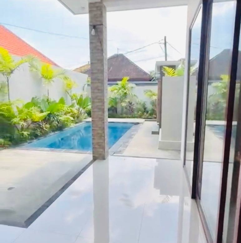 This modern villa in the Canggu Padonan area is available for yearly rent with a minimum one-year lease and is ready for immediate occupancy. It features a refreshing pool view and is conveniently located near Grya Kopi Space, with Echo Beach just a 15-minute drive away.