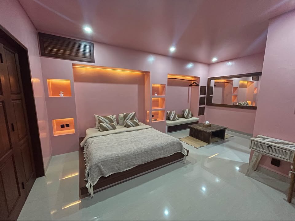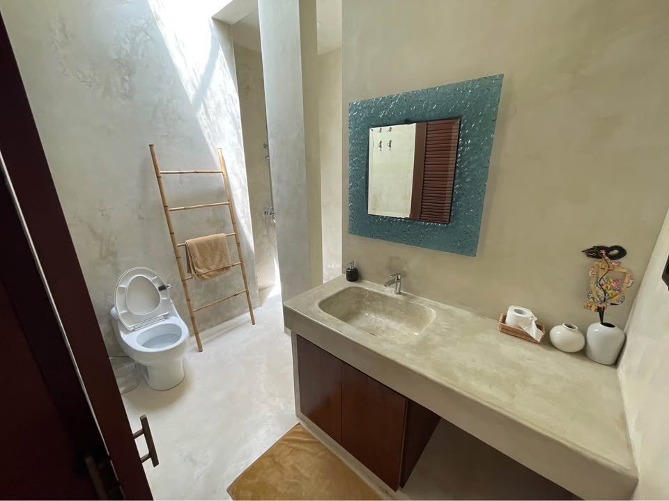 This modern villa in the Jimbaran Uluwatu area will be ready for monthly or yearly rent starting 25 February 2026, offering a stylish living experience with an open-concept living and dining room that looks out directly over the pool. The location is exceptionally convenient, situated just 4 minutes away from Jimbaran Beach and famous seafood spots like Menega and Teba restaurants, with numerous minimarts and popular tourist attractions easily accessible in the immediate surroundings.