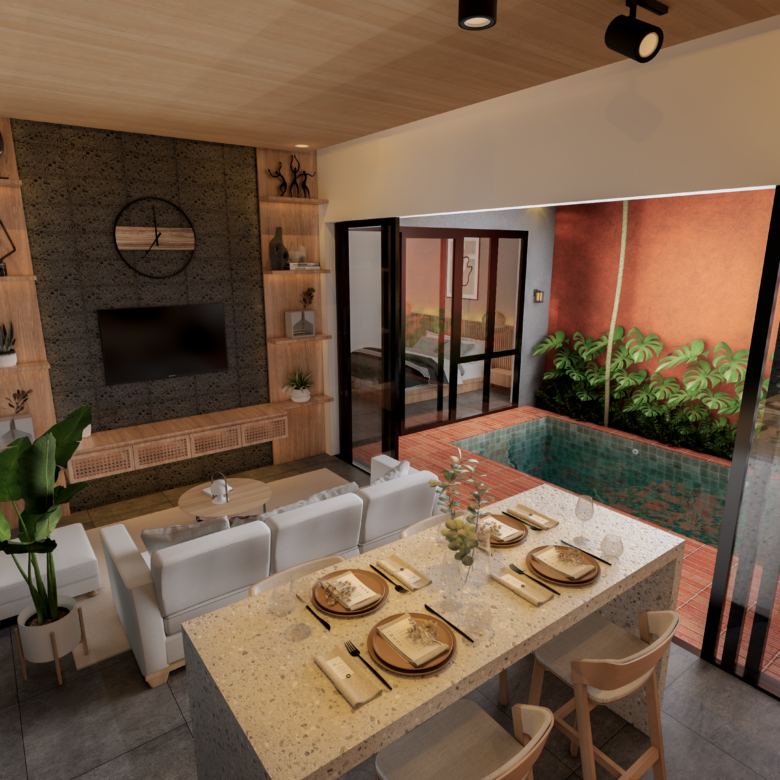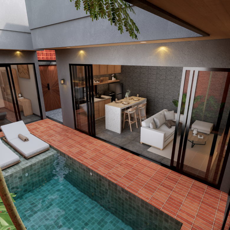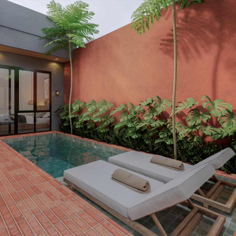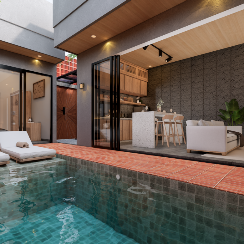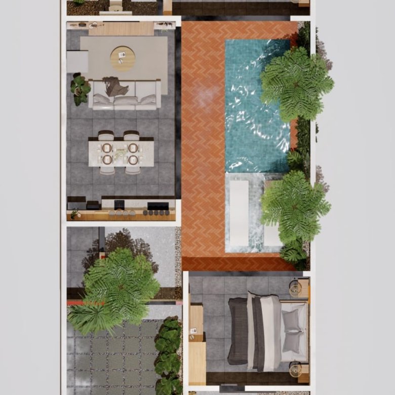 Located in the sought-after Kedonganan area, this stunning tropical modern villa is currently under construction and scheduled for completion in May 2026. This leasehold property comes fully furnished with high-end amenities, including two queen-sized beds, a stylish kitchen island with four bar chairs, a complete kitchen set with an induction cooker, and a cozy living area equipped with a smart TV and climate control. The design emphasizes comfort and luxury, featuring a private pool view, sunbeds, and a primary bathroom complete with a bathtub and water heater. Situated in a strategic yellow zone, the villa offers incredible proximity to key destinations, being just five minutes from Jimbaran Beach and ten minutes from the international airport, while remaining within a short drive of Canggu, Uluwatu, and Nusa Dua. With PBG and SLF permits already included, this turnkey investment represents a seamless opportunity for those seeking a contemporary island lifestyle or a high-potential rental property.