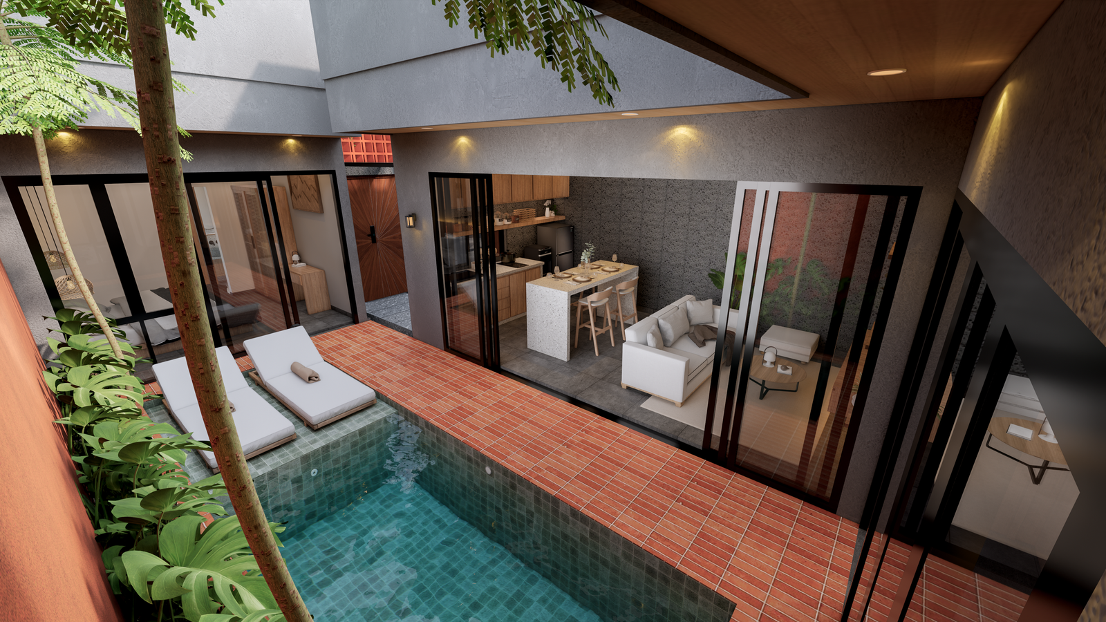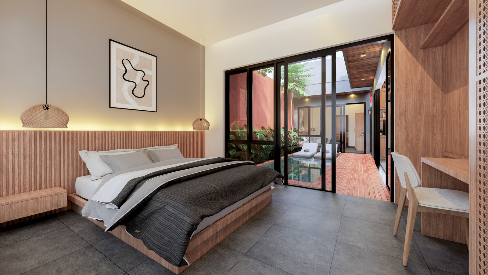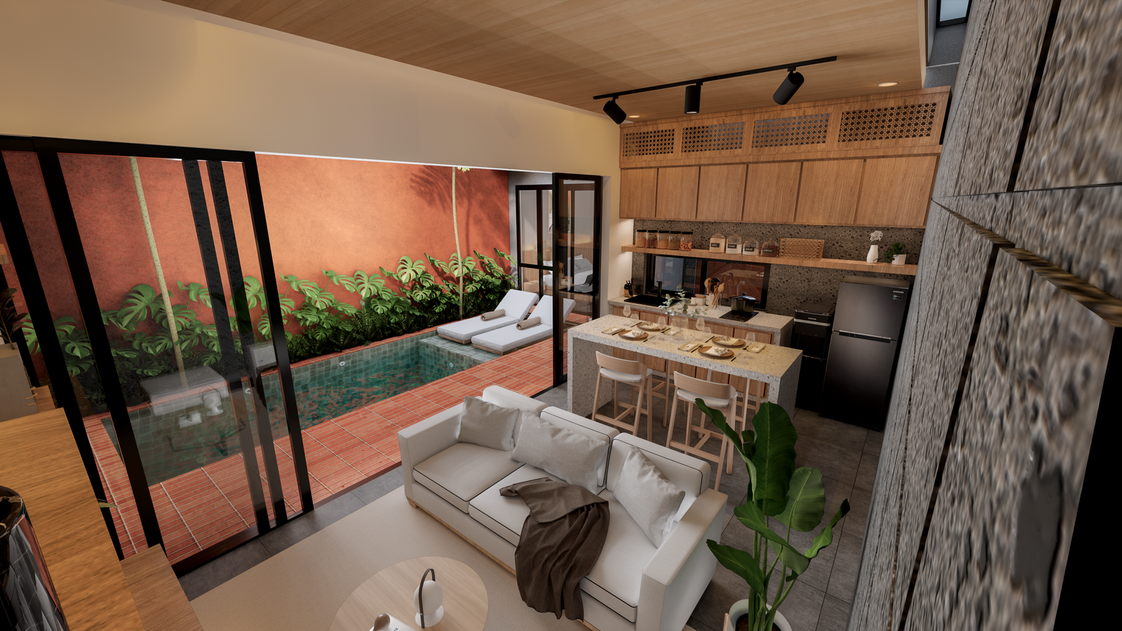 Located in the sought-after Kedonganan area, this stunning tropical modern villa is currently under construction and scheduled for completion in May 2026. This leasehold property comes fully furnished with high-end amenities, including two queen-sized beds, a stylish kitchen island with four bar chairs, a complete kitchen set with an induction cooker, and a cozy living area equipped with a smart TV and climate control. The design emphasizes comfort and luxury, featuring a private pool view, sunbeds, and a primary bathroom complete with a bathtub and water heater. Situated in a strategic yellow zone, the villa offers incredible proximity to key destinations, being just five minutes from Jimbaran Beach and ten minutes from the international airport, while remaining within a short drive of Canggu, Uluwatu, and Nusa Dua. With PBG and SLF permits already included, this turnkey investment represents a seamless opportunity for those seeking a contemporary island lifestyle or a high-potential rental property.