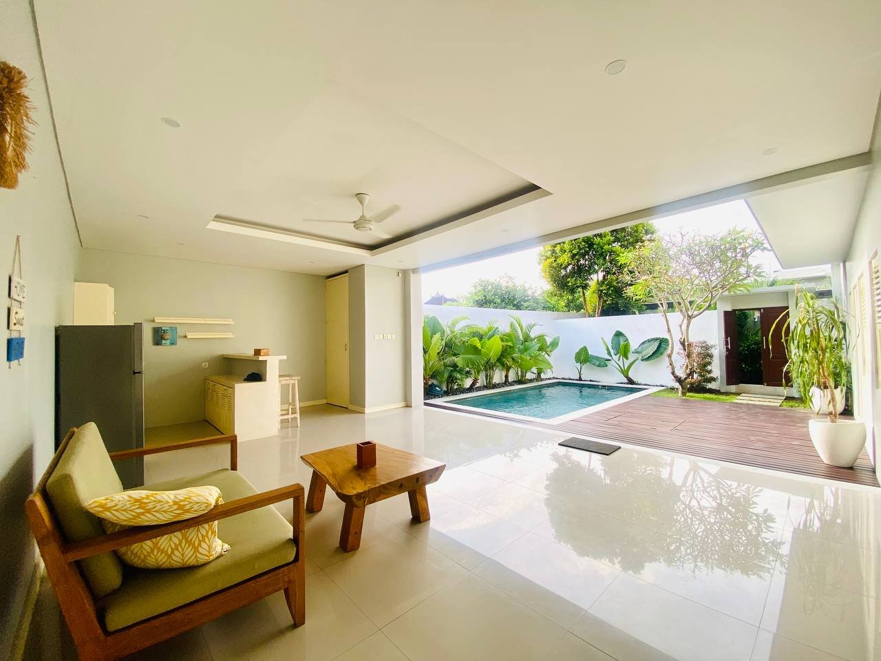 This modern villa, located in the Kerobokan Seminyak area (a Zone Orange property), is available for a 10-year leasehold rent and is ready for immediate occupancy. It offers a pleasant pool view and the option for sublease. The location is convenient, being close to Ingka Resto and just a 9-minute drive to Seminyak Beach.