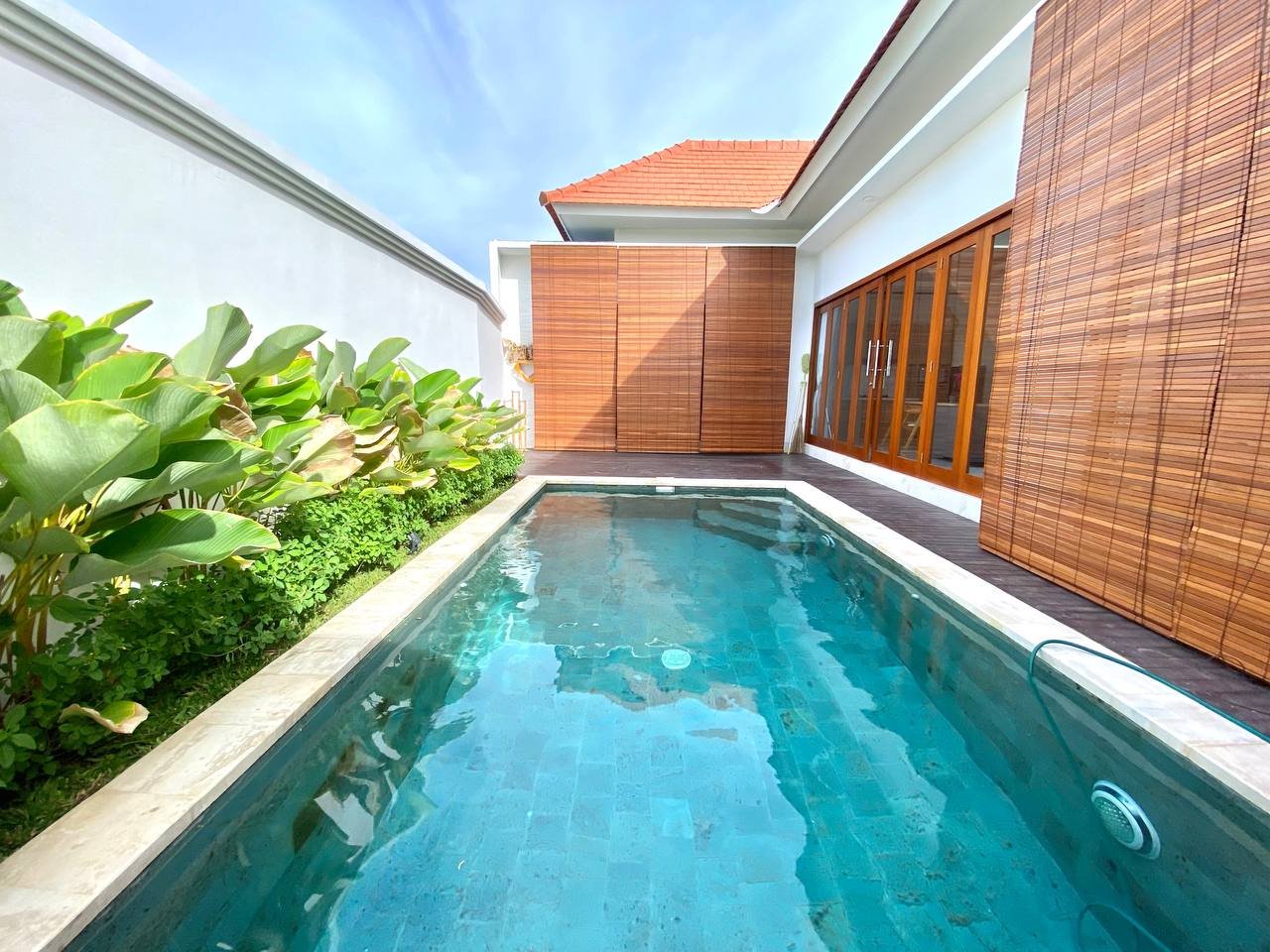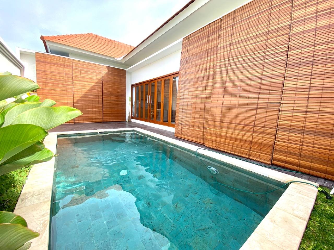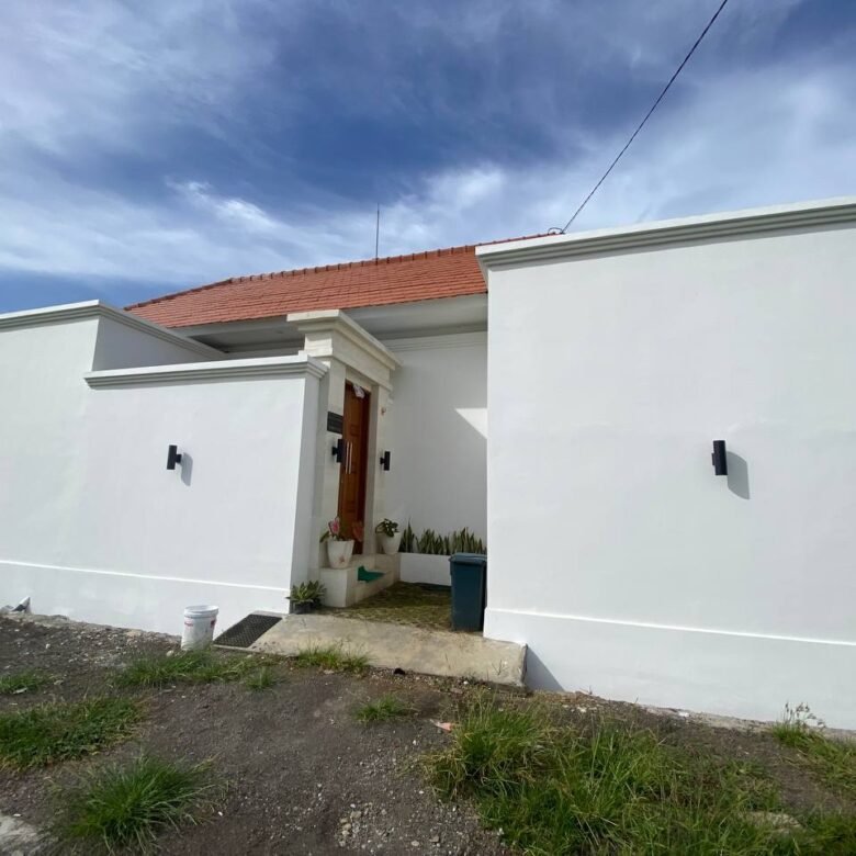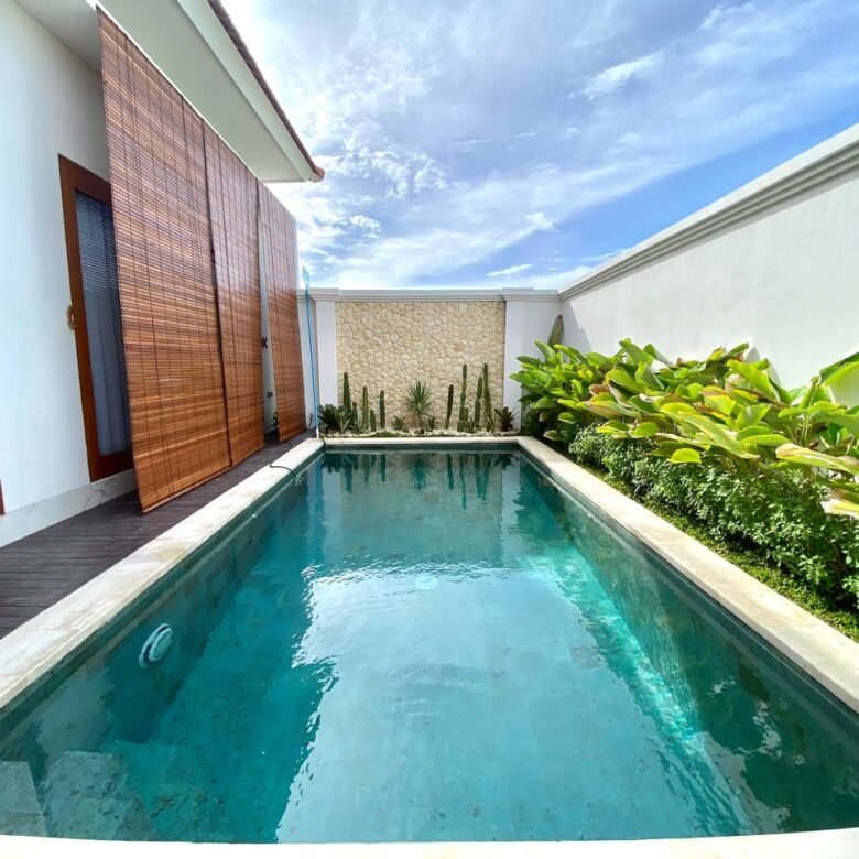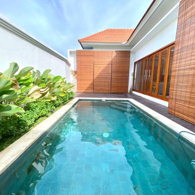 Additional amenities include a storage room, a 3×6 meter swimming pool, and a parking area for both motorbikes and cars. The villa is equipped with 2 AC units, a 3300 Watt electricity supply, and a drilled well water source. The property also has the necessary IMB/PBG permits.