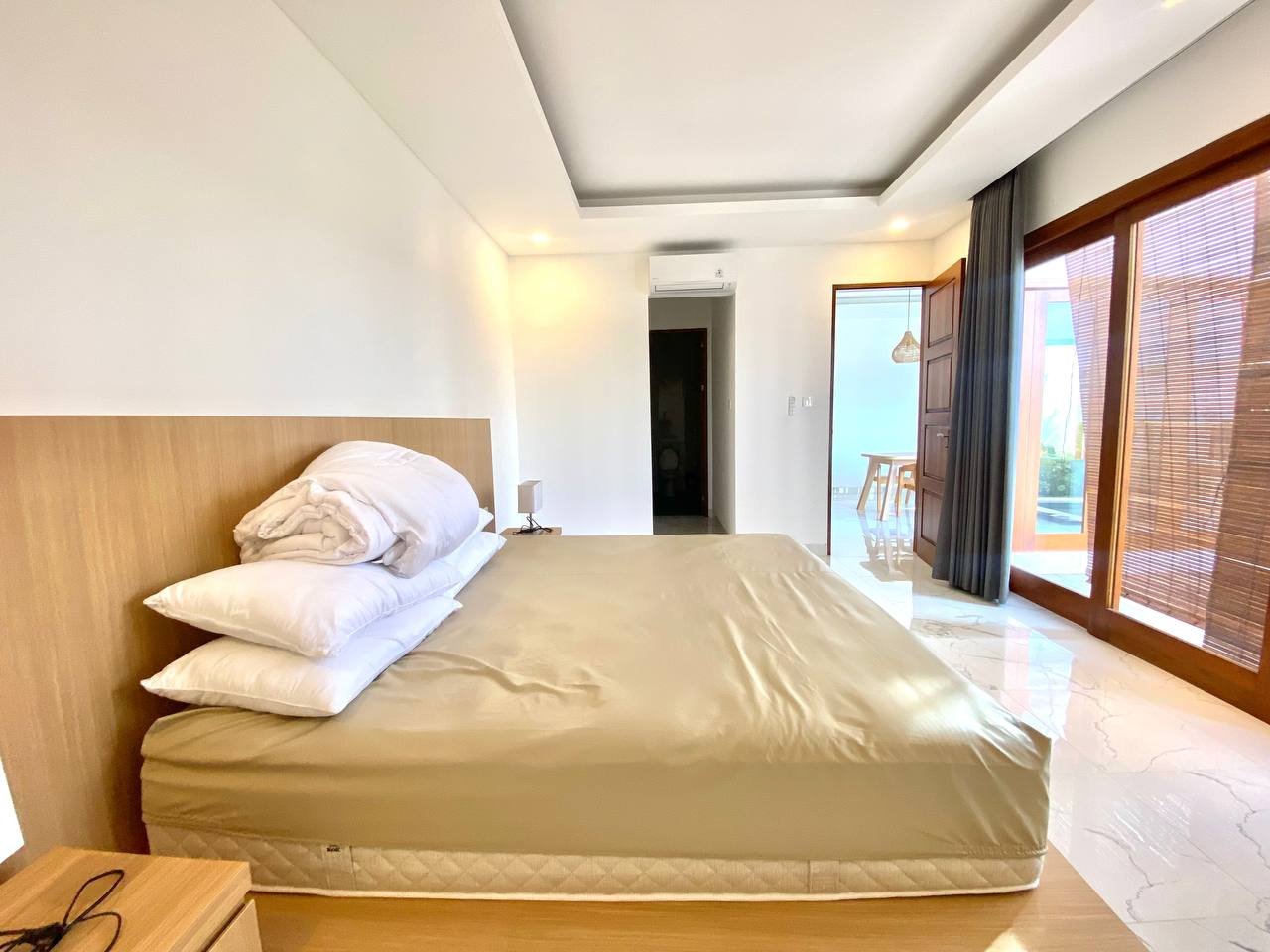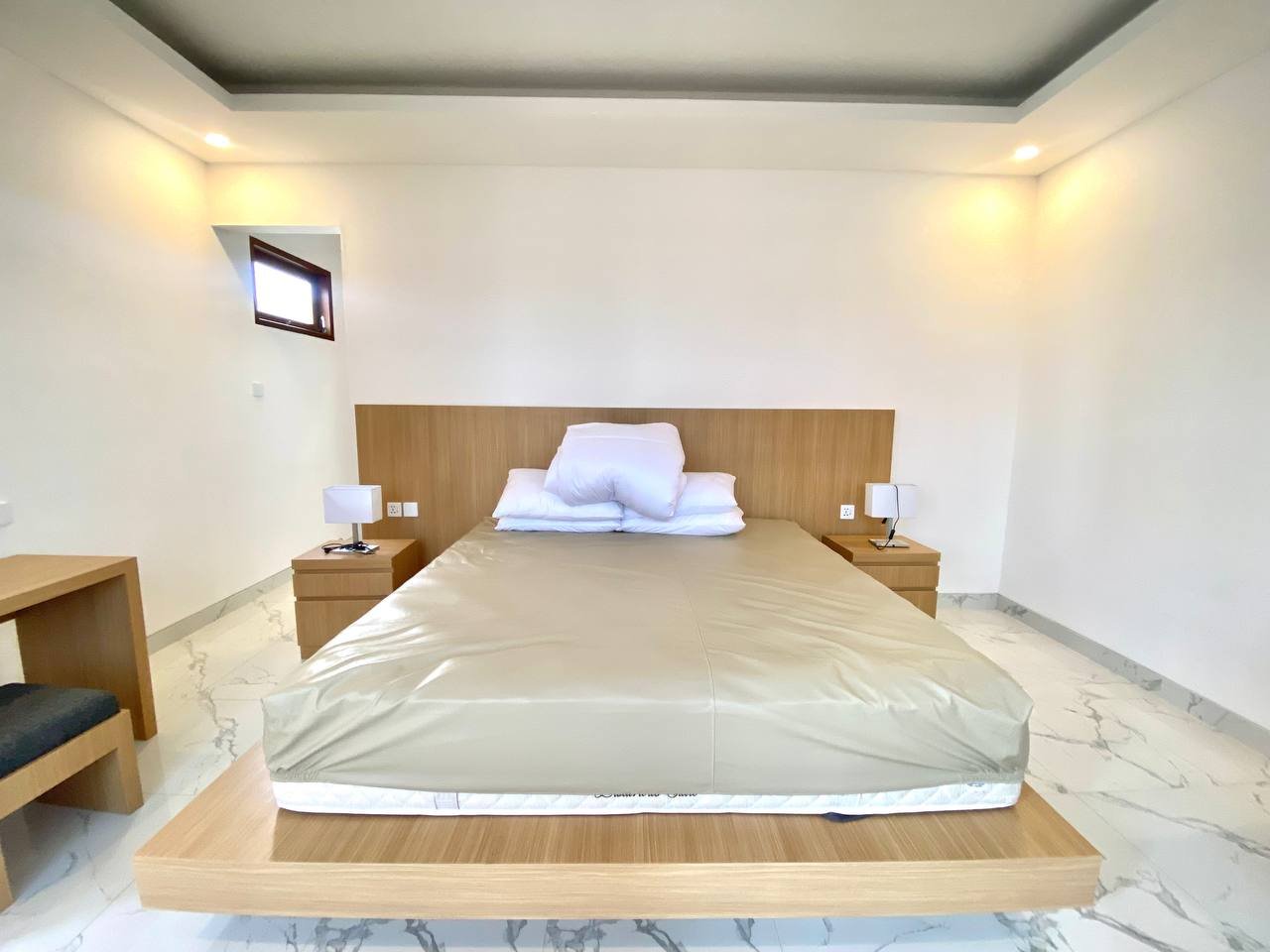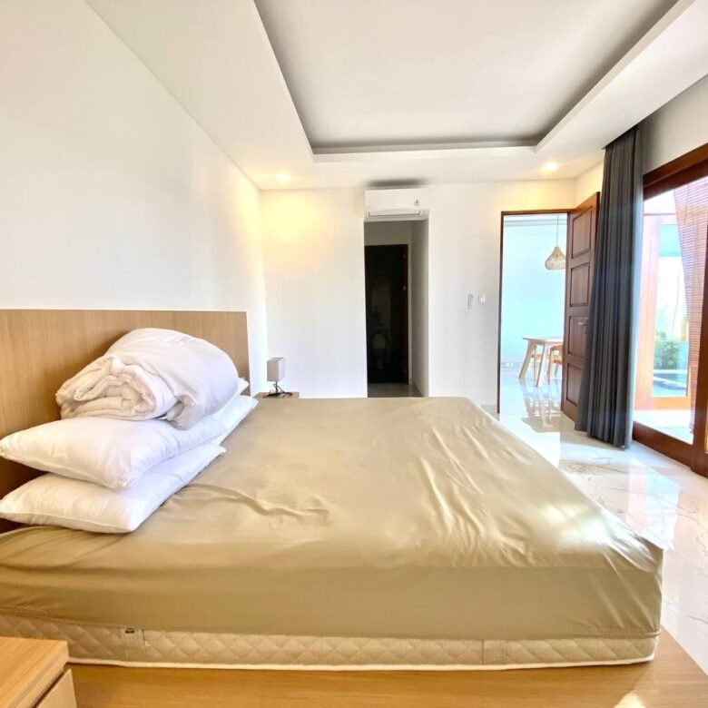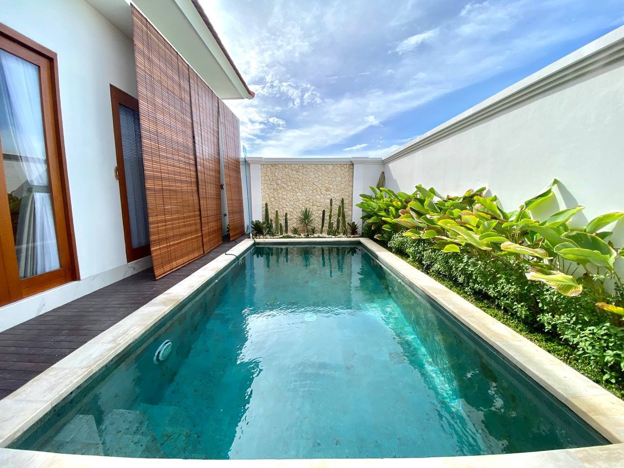 Additional amenities include a storage room, a 3×6 meter swimming pool, and a parking area for both motorbikes and cars. The villa is equipped with 2 AC units, a 3300 Watt electricity supply, and a drilled well water source. The property also has the necessary IMB/PBG permits.