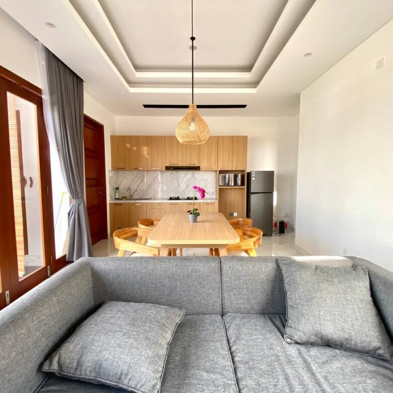 This newly built villa, completed in 2023, is ready for occupancy in the serene area of Munggu. Located near Seseh Beach, this villa is perfect for those seeking a tranquil yet convenient lifestyle. This property spans 180 sqm of land with a 110 sqm building, featuring 2 bedrooms, 2 bathrooms, and an additional toilet. The villa is fully furnished and designed in a minimalist modern style, with enclosed living and dining rooms, offering garden and ricefield views.