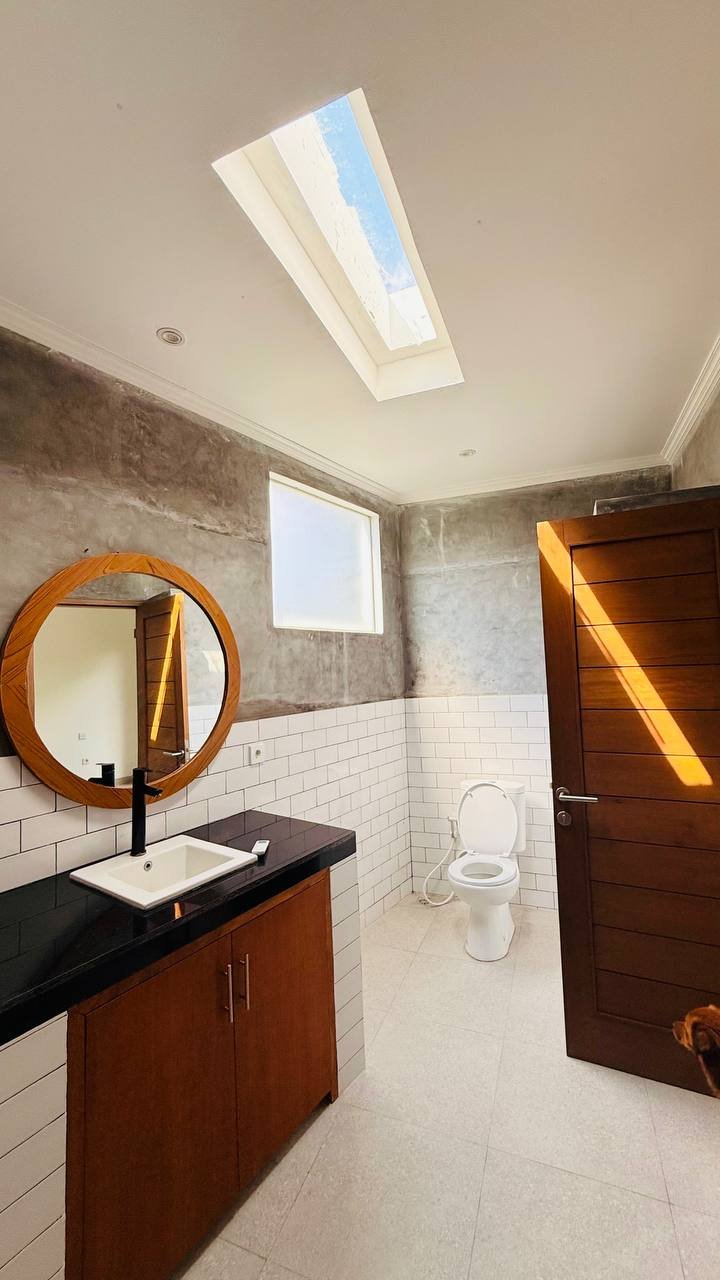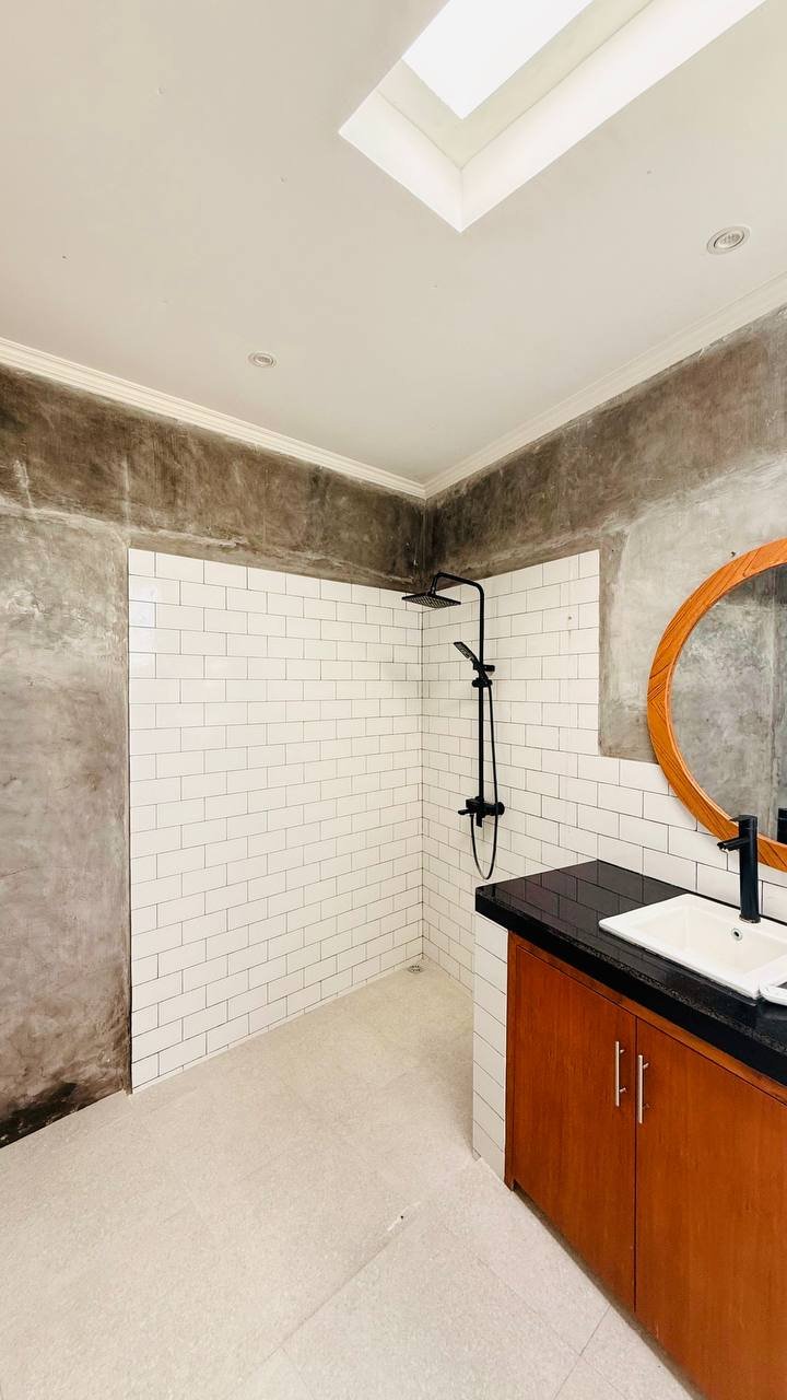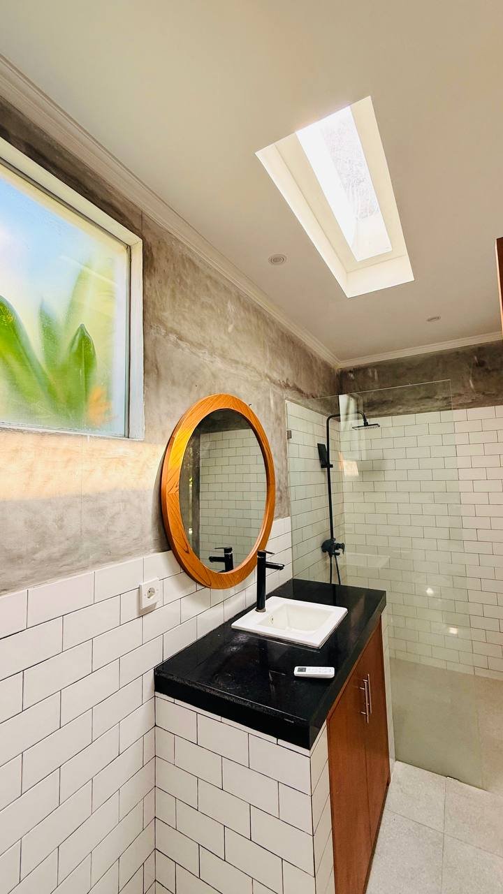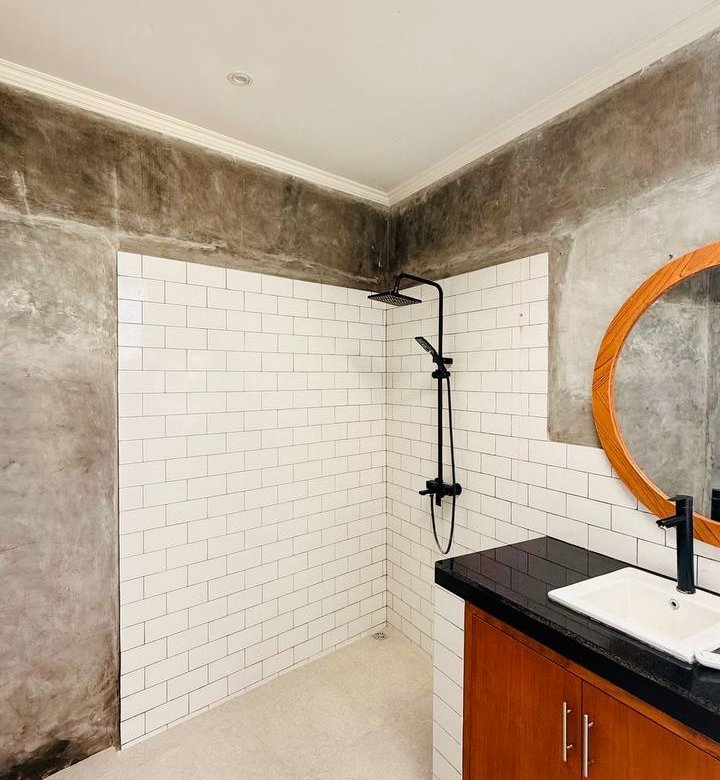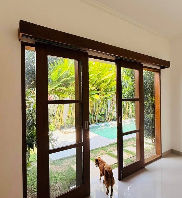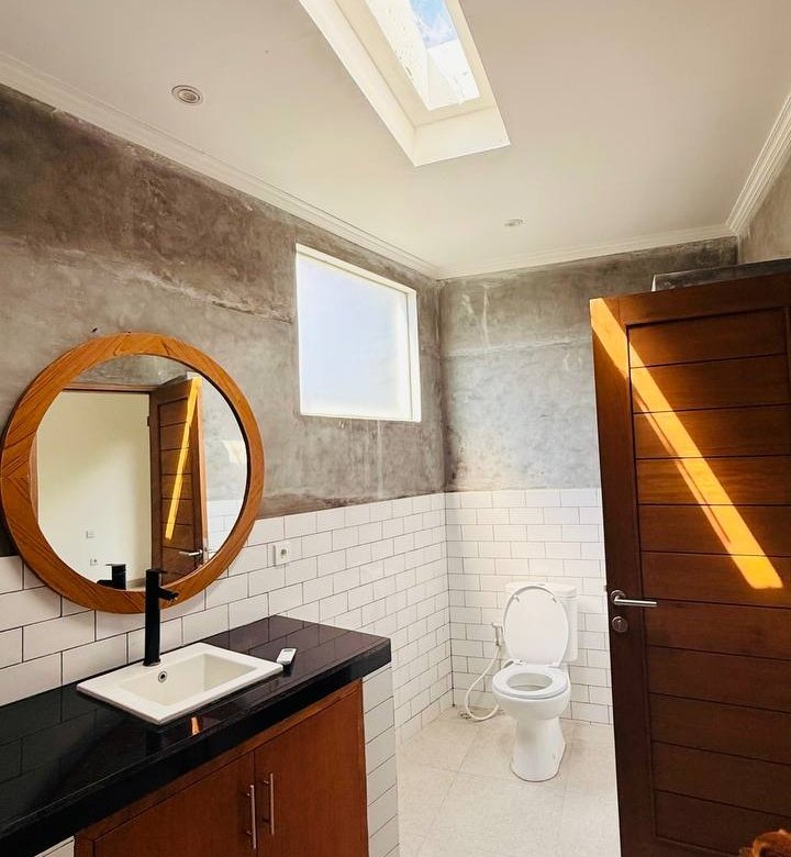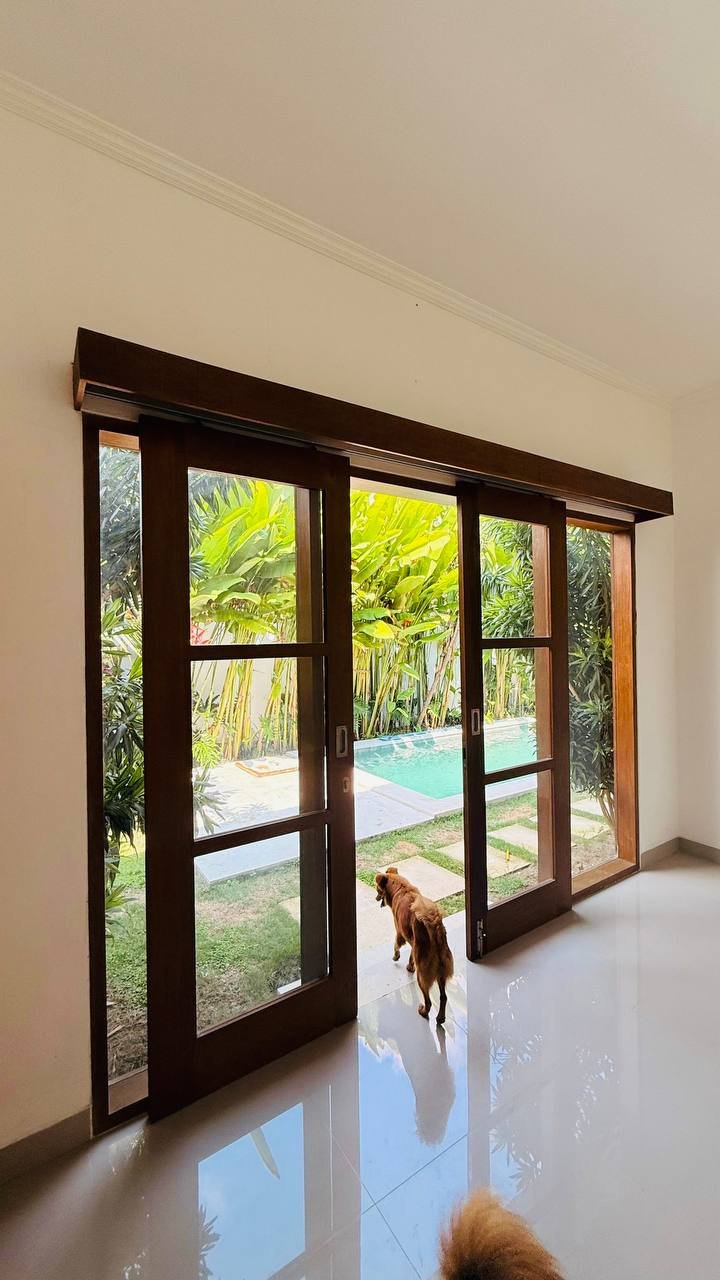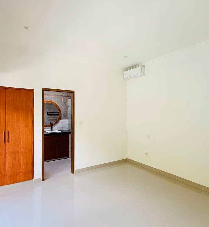 This modern villa in the Pererenan Tiying Tutul area is available for yearly rent and is ready for immediate occupancy. It features a pleasant pool view and is conveniently located near Nude Caffe, just a 9-minute drive to Pererenan Beach.