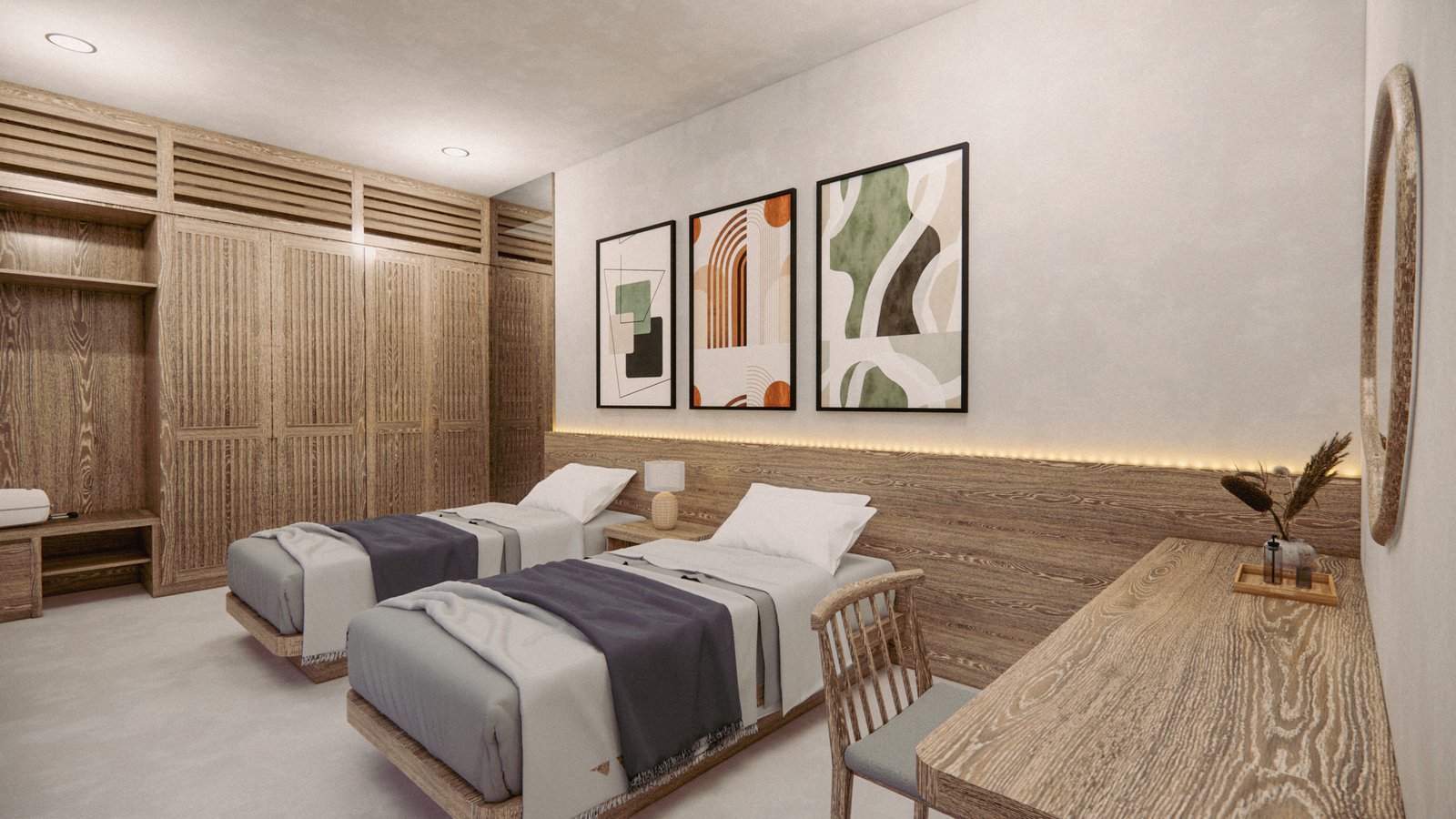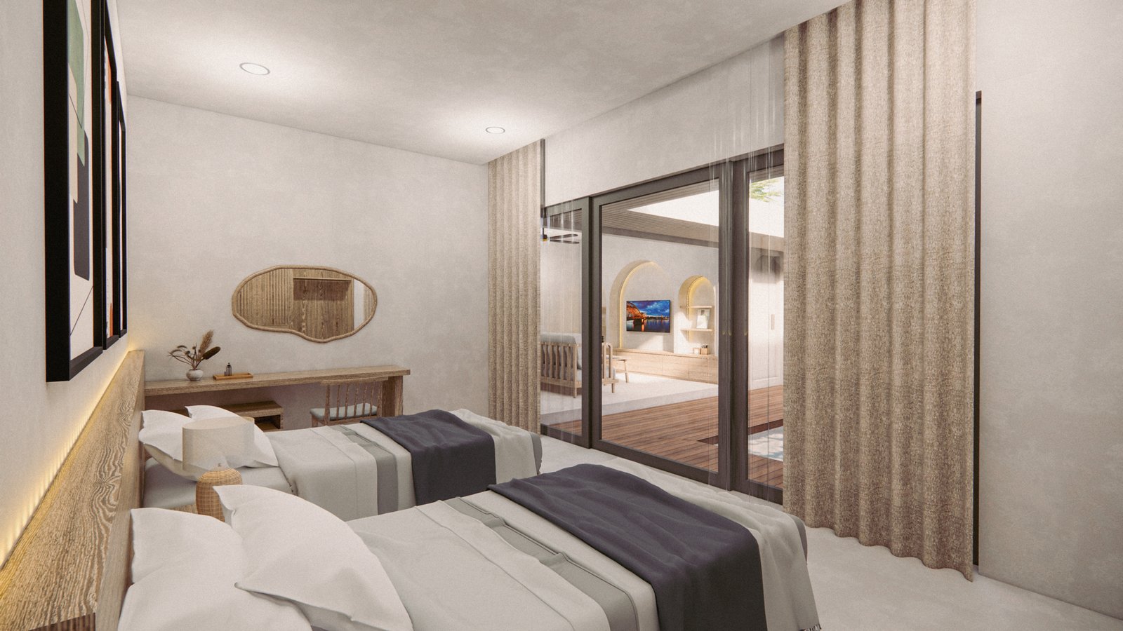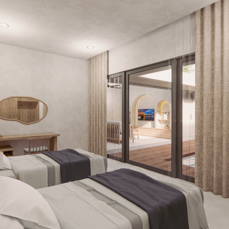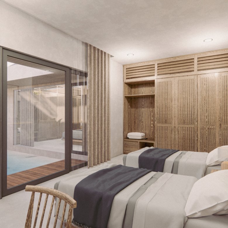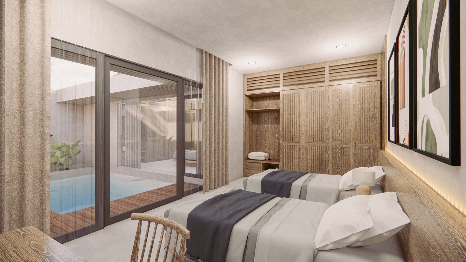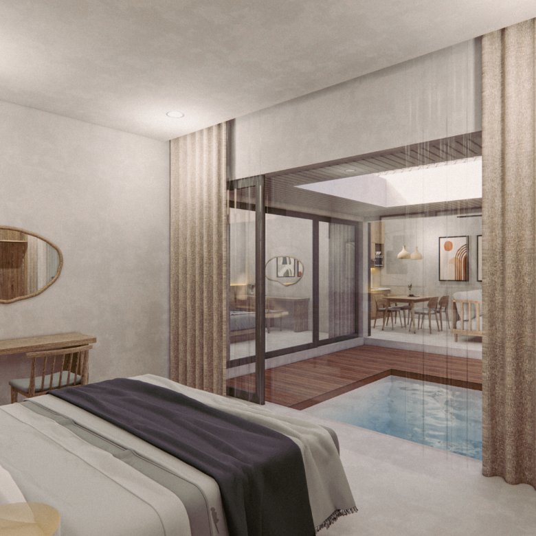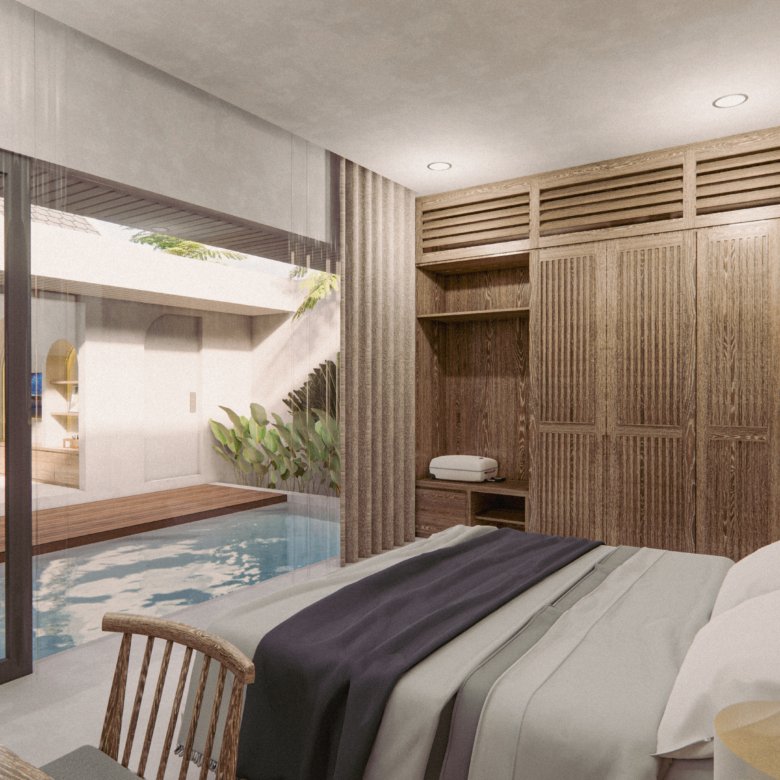Located in the highly sought-after area of Jimbaran, this villa complex offers 9 identical units (Villa A to Villa I) available for freehold or leasehold purchase. Designed with minimalist elegance and tropical serenity, each 2-bedroom villa features a private pool and bedrooms, along with access to shared facilities such as a stylish lobby, a gym, and spacious shared parking. Set in a yellow zoning area surrounded by villas, hotels, and local residences, this is Villa A—currently under construction (Phase 1) and guaranteed to be ready on time by October 1, 2026.