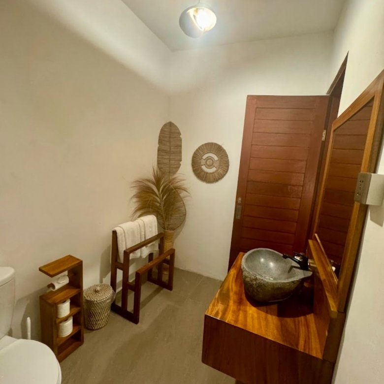 This modern Balinese-style villa (Villa A) is available for leasehold in the peaceful area of Seseh. The property is part of a twin villa concept, with Villa A and Villa B located directly opposite each other—ideal for investment or dual-living setups. Featuring a private pool and situated in a pink zone (residential/tourism zoning), the villa offers both comfort and development potential. Just a 2-minute bike ride to Seseh Beach and close to local favorites like R Coffee Seseh, this villa is ready for immediate handover.