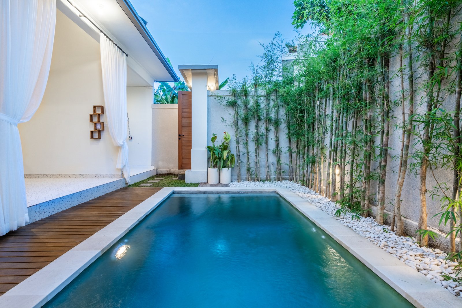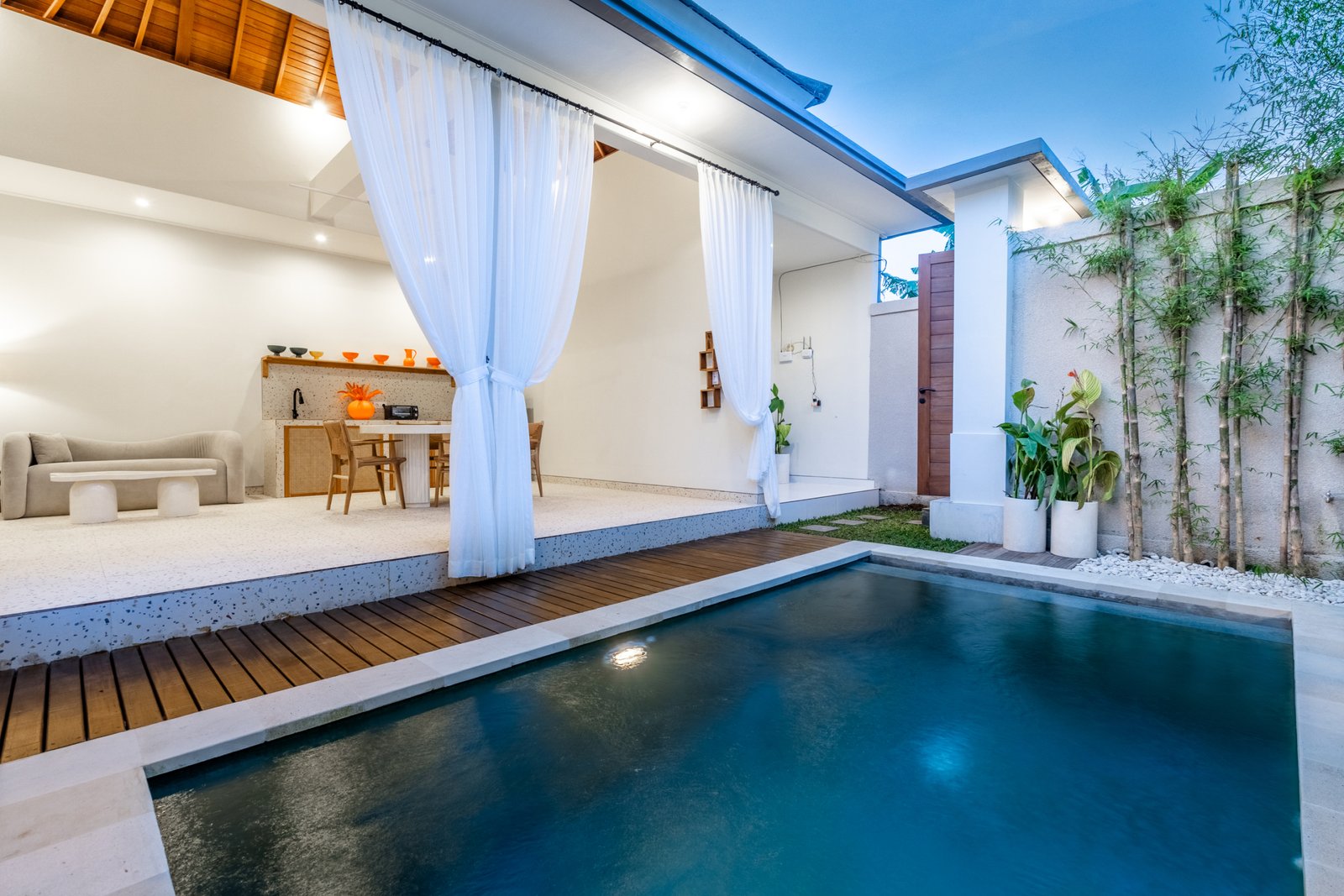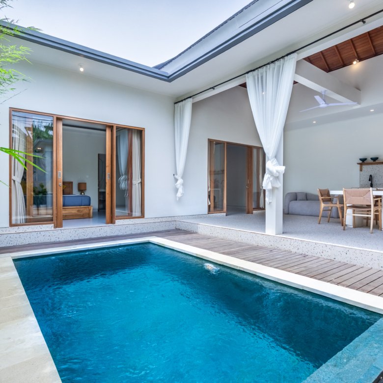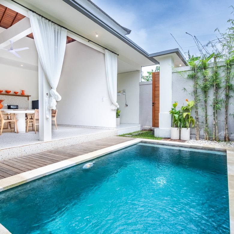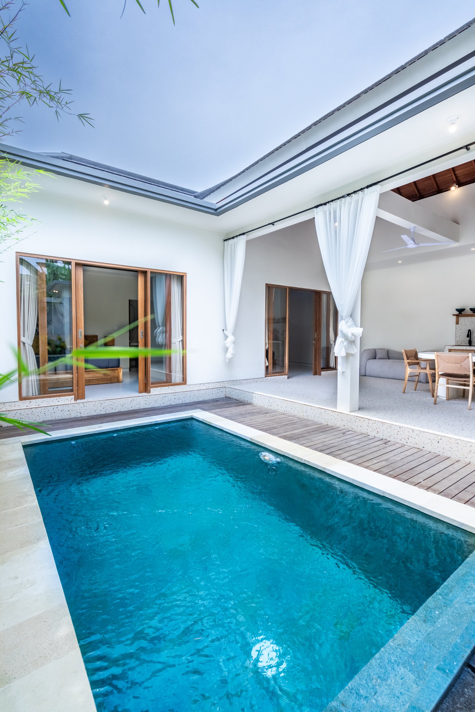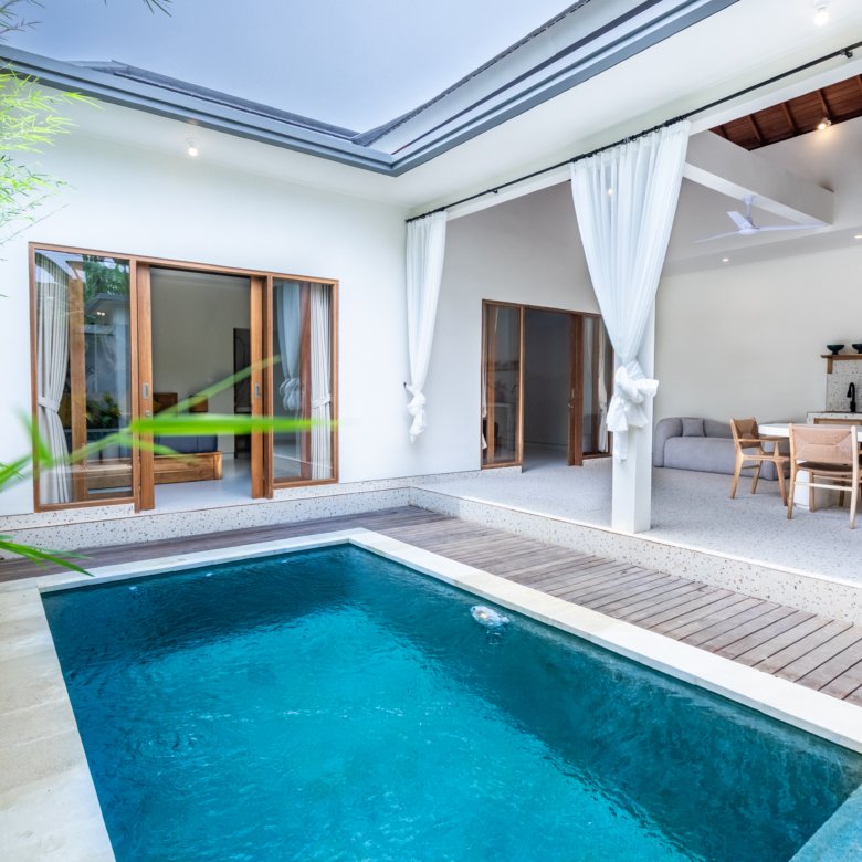 This stunning 2 bedroom villa in heart of Canggu – Padang Linjong is currently available for monthly or yearly rentals, just a 3-minutes’ drive to Echo Beach and Labrisa, this distinguished offering a minimalist living space with a refreshing pool view. Situated in a prime location which is walking to many famous spot restaurant/cafe such as Shary Shary, Copenghagen café canggu