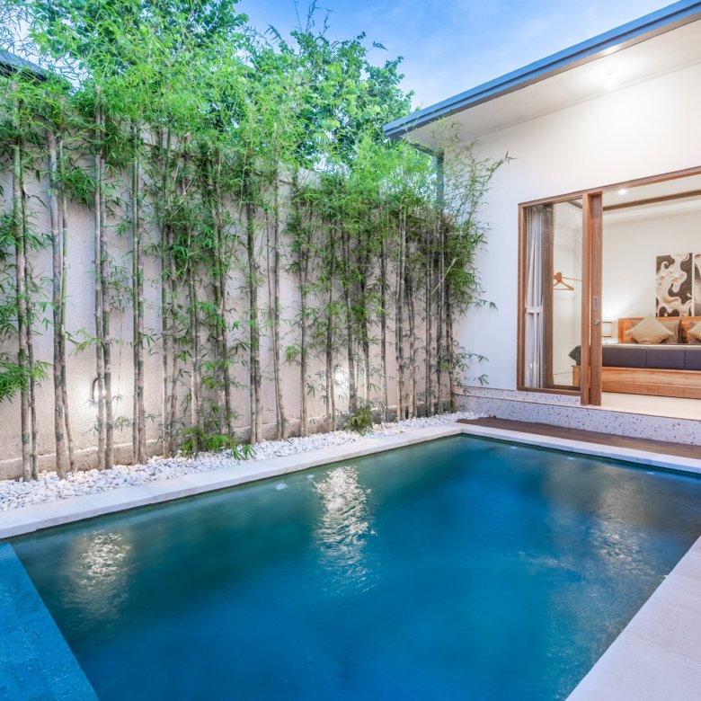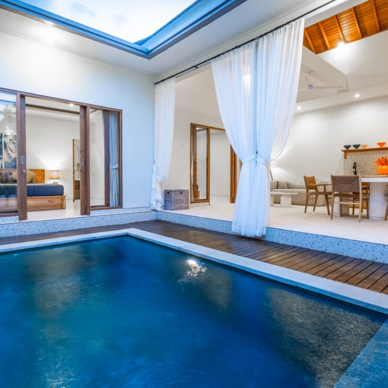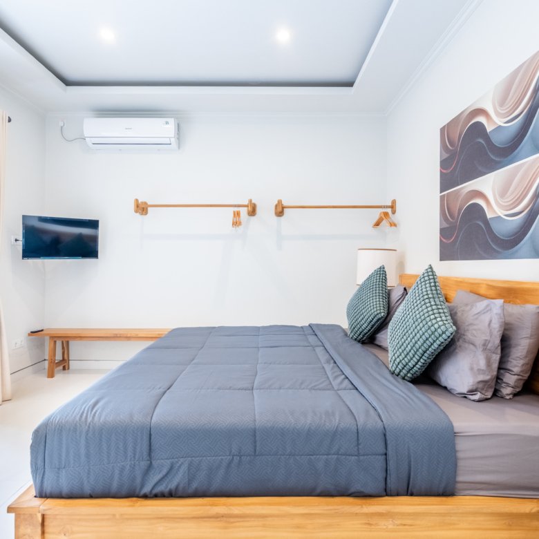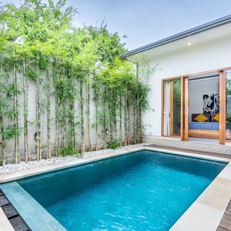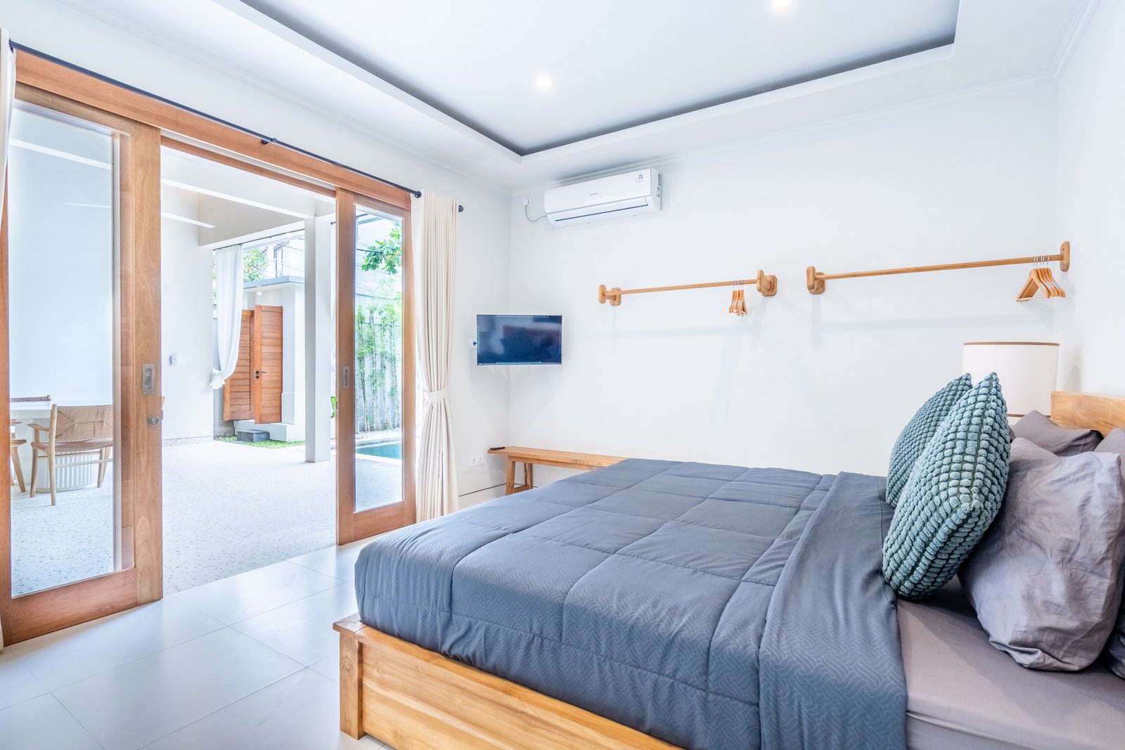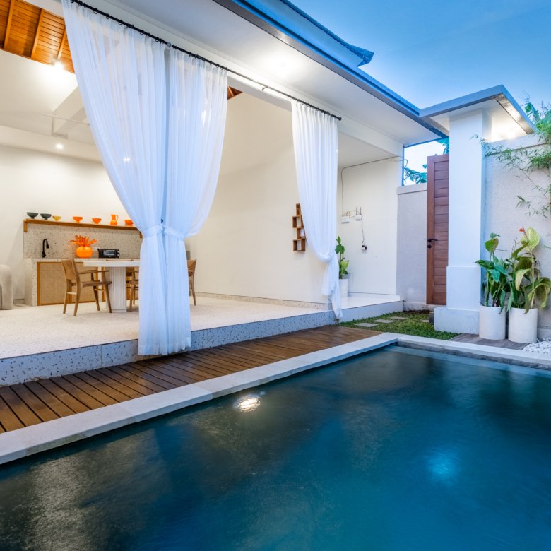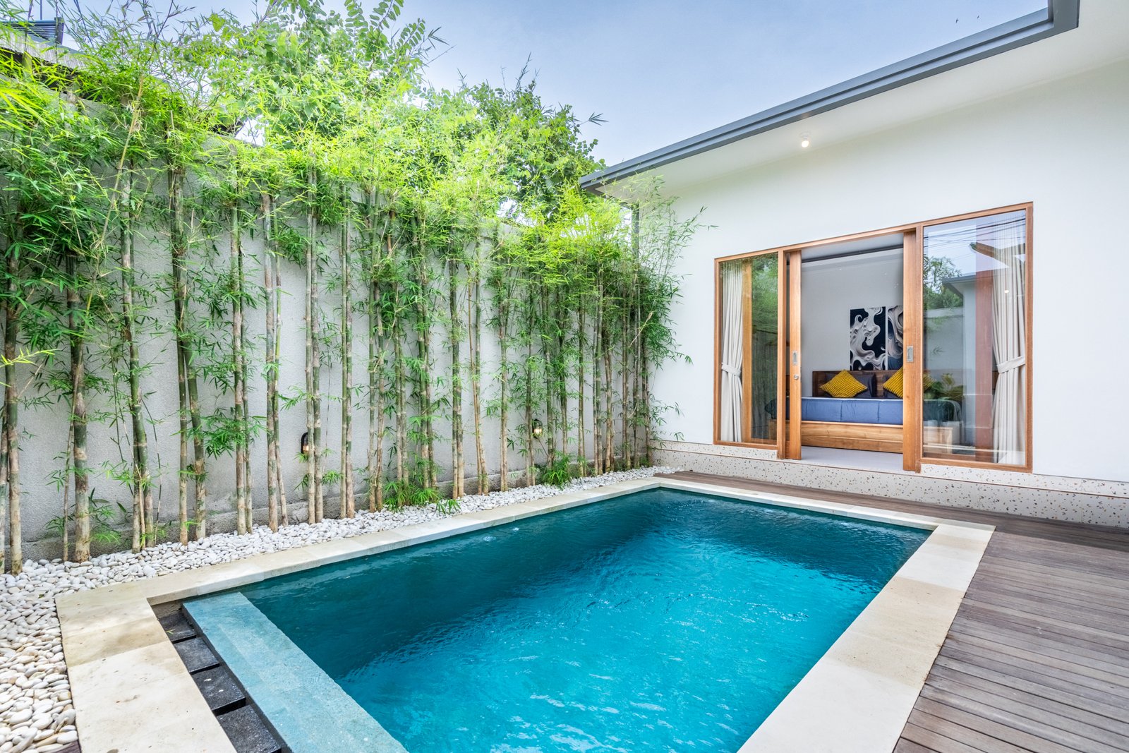 This stunning 2 bedroom villa in heart of Canggu – Padang Linjong is currently available for monthly or yearly rentals, just a 3-minutes’ drive to Echo Beach and Labrisa, this distinguished offering a minimalist living space with a refreshing pool view. Situated in a prime location which is walking to many famous spot restaurant/cafe such as Shary Shary, Copenghagen café canggu