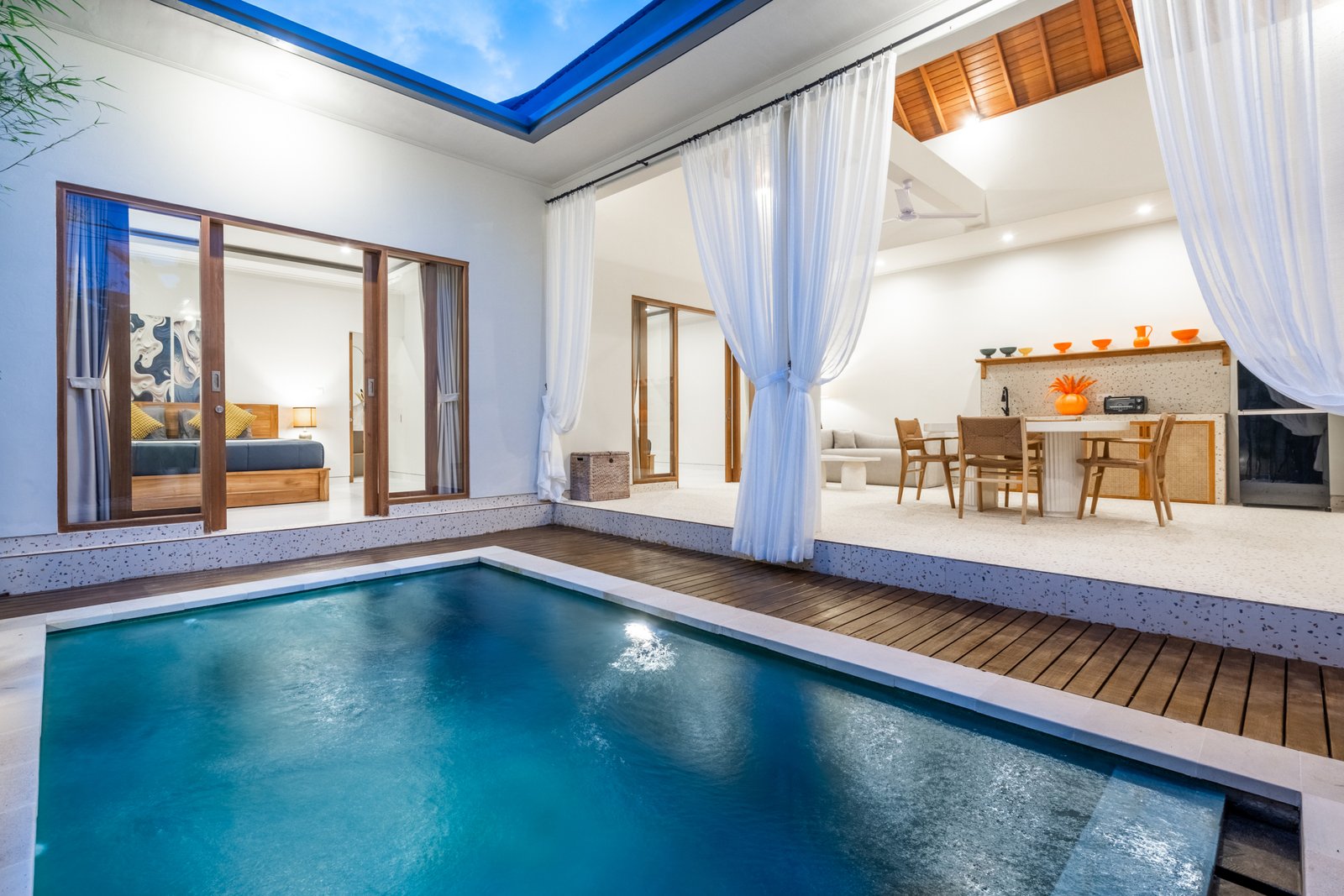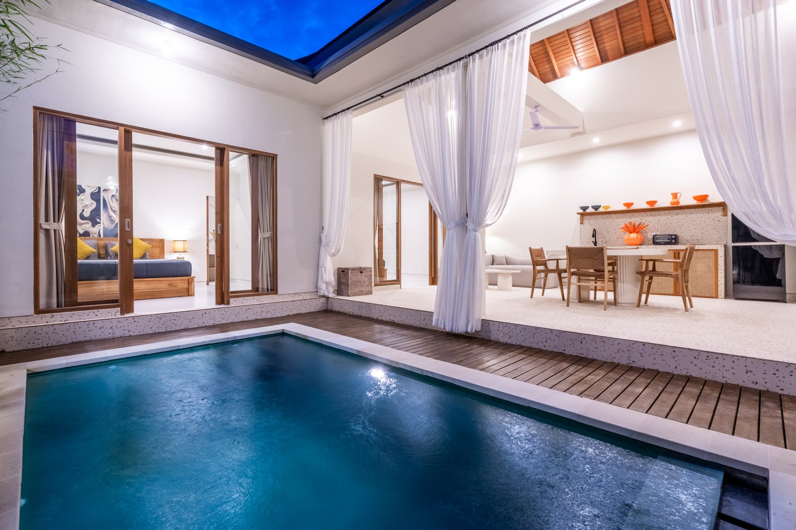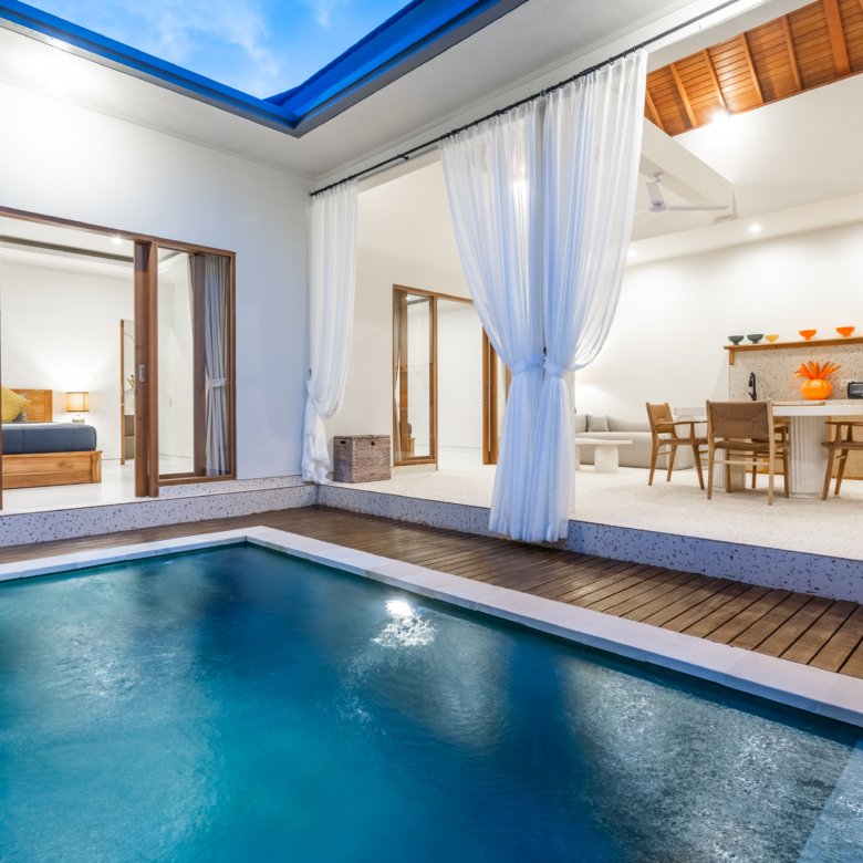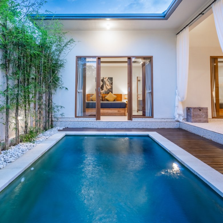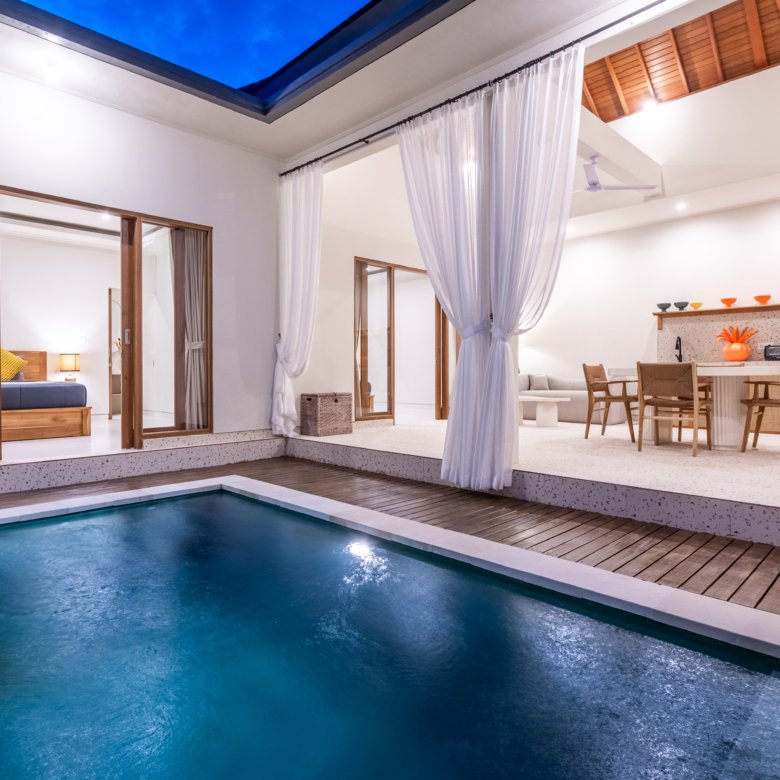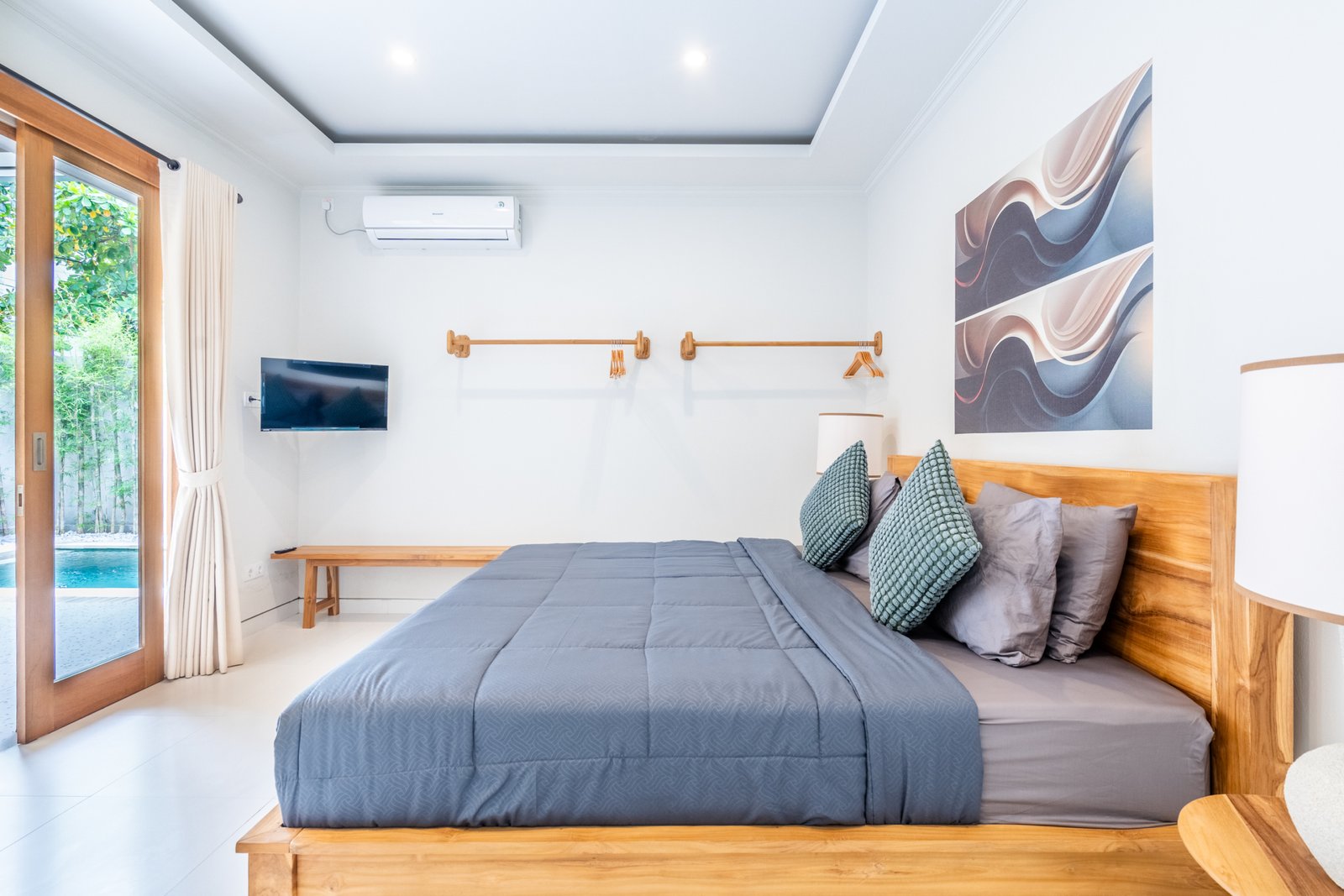This stunning 2 bedroom villa in heart of Canggu – Padang Linjong is currently available for monthly or yearly rentals, just a 3-minutes’ drive to Echo Beach and Labrisa, this distinguished offering a minimalist living space with a refreshing pool view. Situated in a prime location which is walking to many famous spot restaurant/cafe such as Shary Shary, Copenghagen café canggu