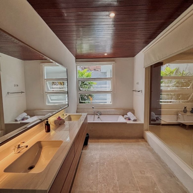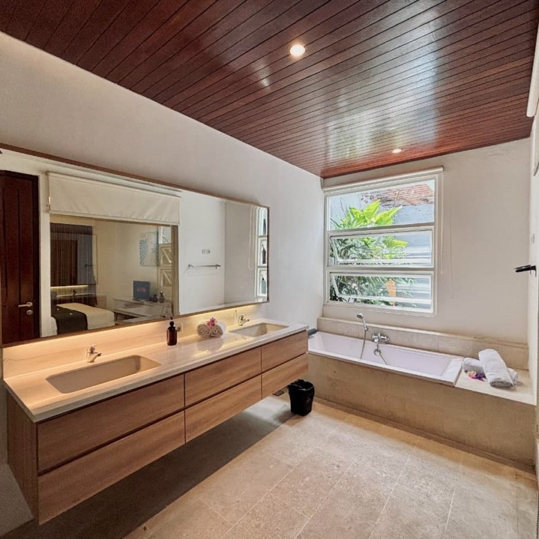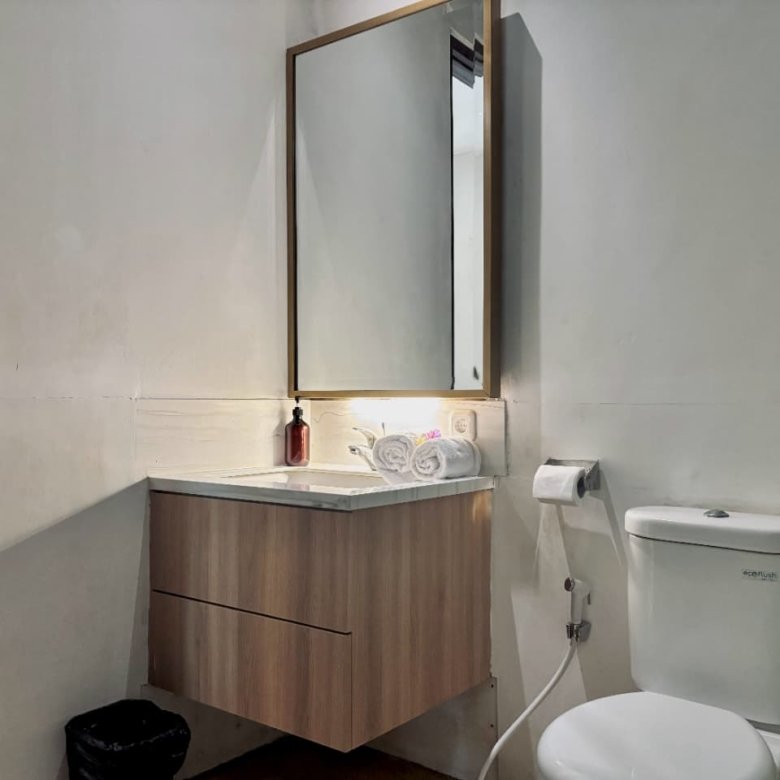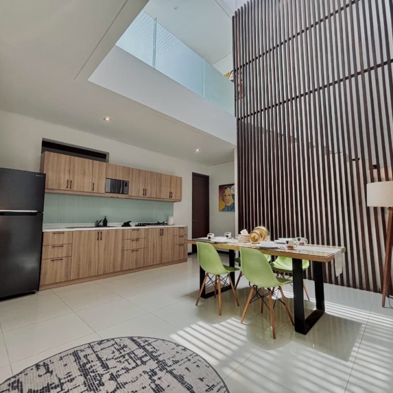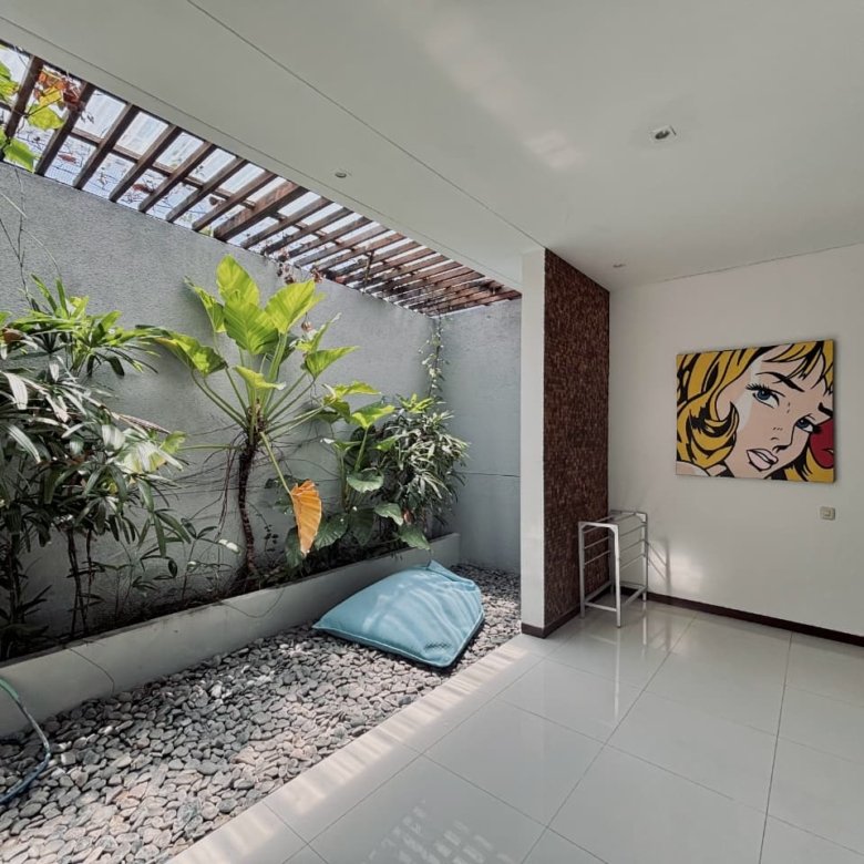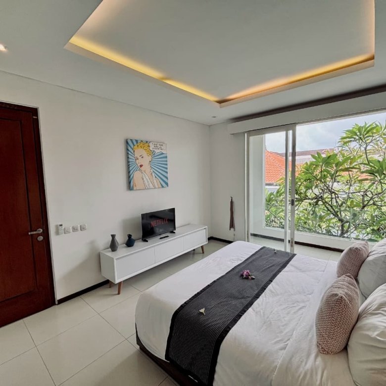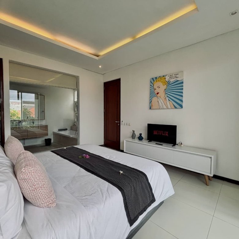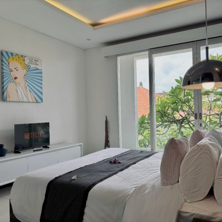 Enjoy the beauty of your vacation on the stunning island of Bali by relaxing in our cozy and elegant villa, located in the heart of Canggu – Berawa. The villa features a modern minimalist design with a spacious, enclosed living room. You can also enjoy cooking your favorite meals in the fully equipped kitchen. This villa offers two bedrooms, Upstairs room with its own TV and ensuite bathroom. It’s perfect for a getaway with your family or your beloved partner.