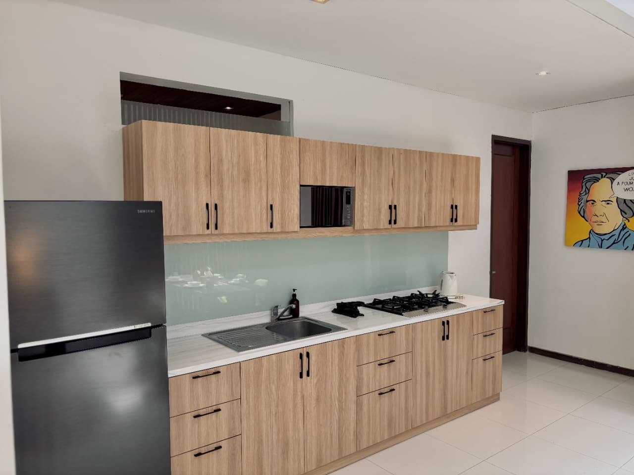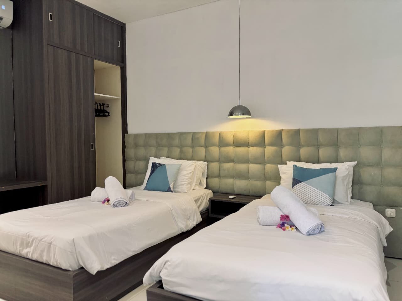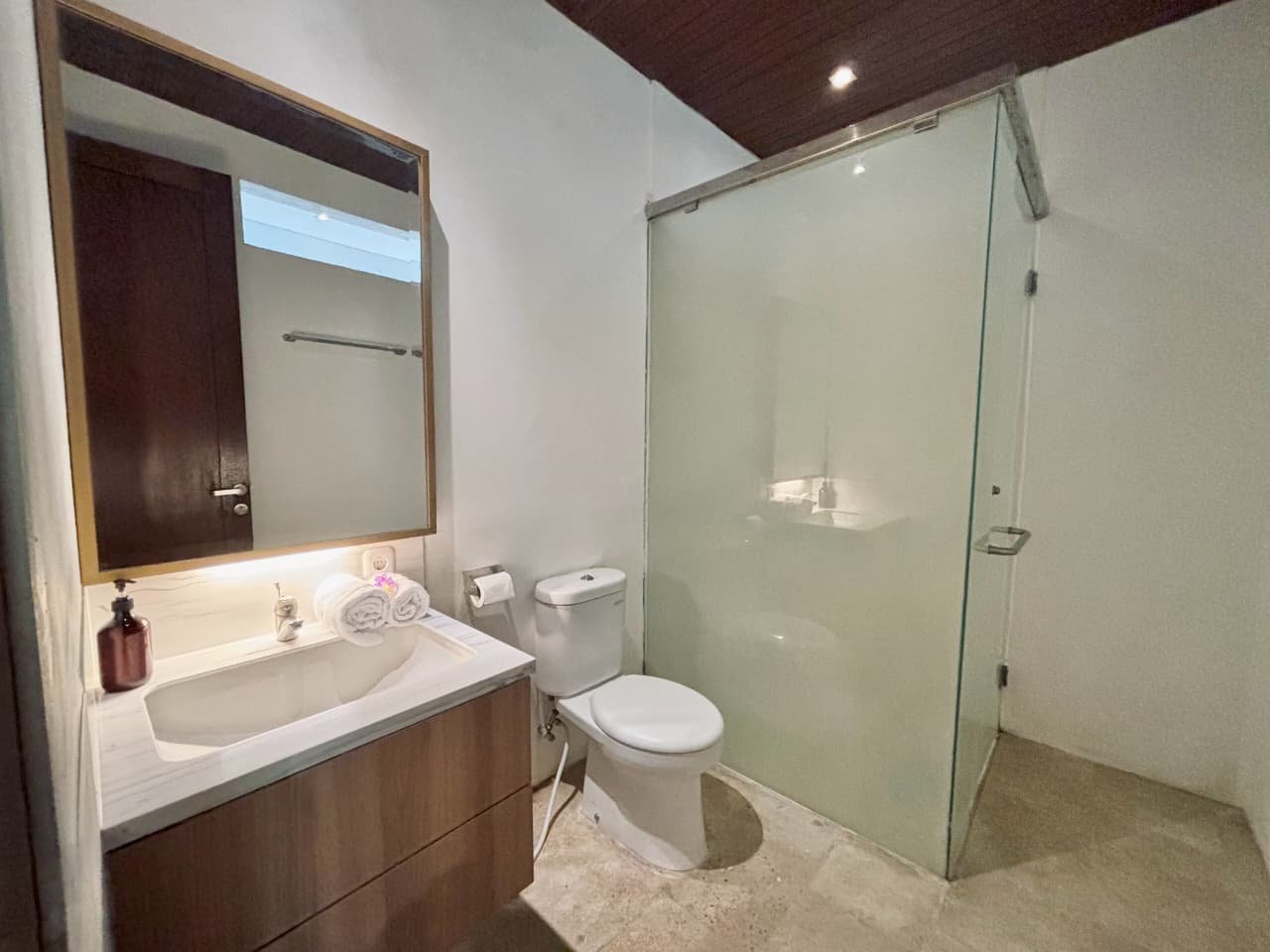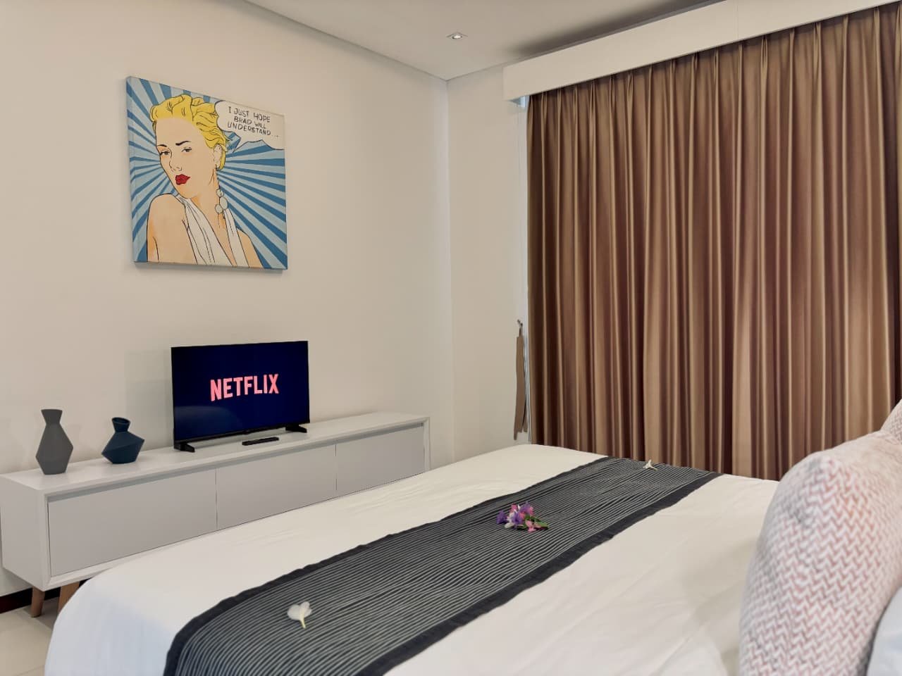 Enjoy the beauty of your vacation on the stunning island of Bali by relaxing in our cozy and elegant villa, located in the heart of Canggu – Berawa. The villa features a modern minimalist design with a spacious, enclosed living room. You can also enjoy cooking your favorite meals in the fully equipped kitchen. This villa offers two bedrooms, Upstairs room with its own TV and ensuite bathroom. It’s perfect for a getaway with your family or your beloved partner.