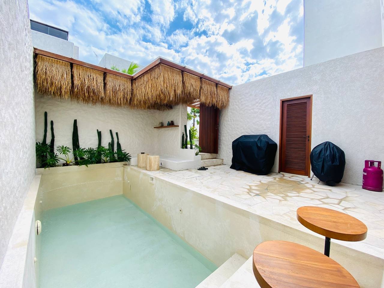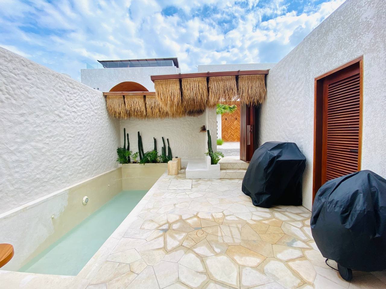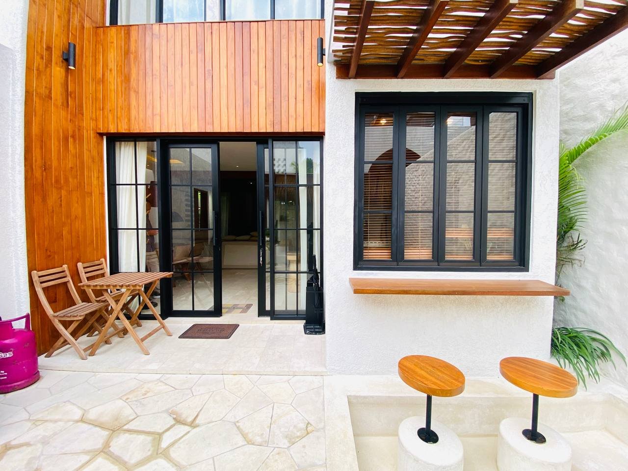This luxury Mediterranean-style villa (Villa No. 2) is one of two identical units available for both monthly and yearly rent in the prime area of Berawa. Villa No. 2 will be available for monthly rent starting from July 16, 2025, and for yearly rent starting January 2026. It features a beautiful pool view and is surrounded by popular spots such as Hubble Ukrainian, Finns Beach Club, and Atlas Beach Club. Berawa Beach is just a 6-minute bike ride away, offering the perfect balance of comfort and convenience in one of Bali’s most sought-after neighborhoods.