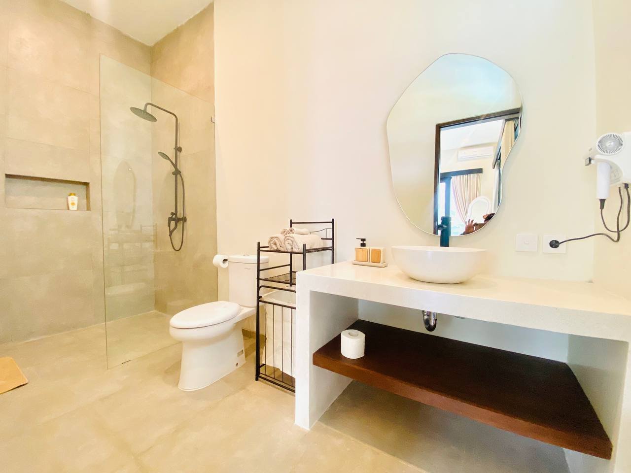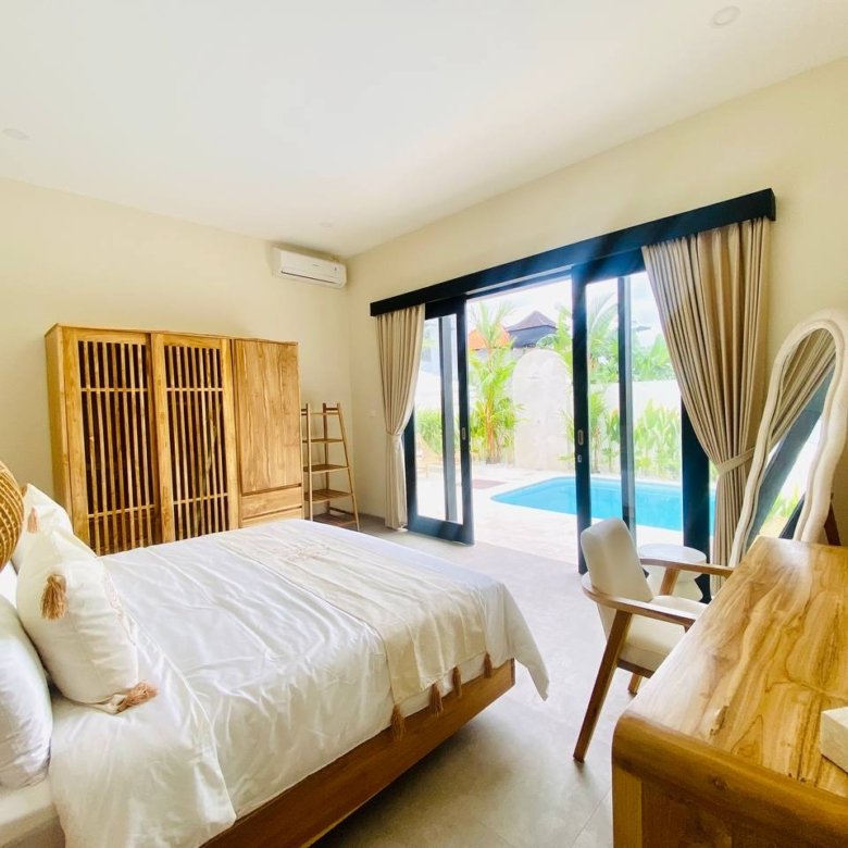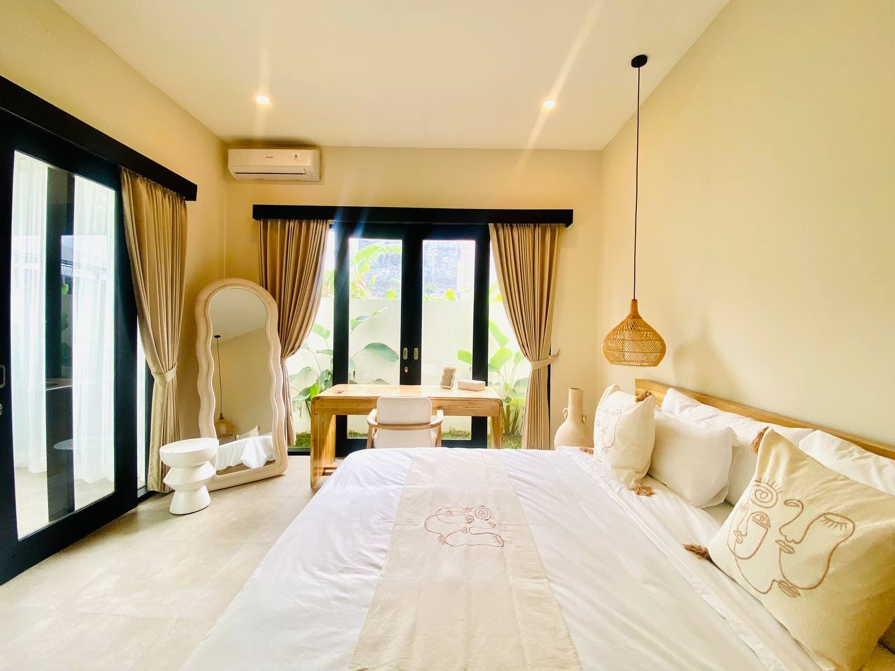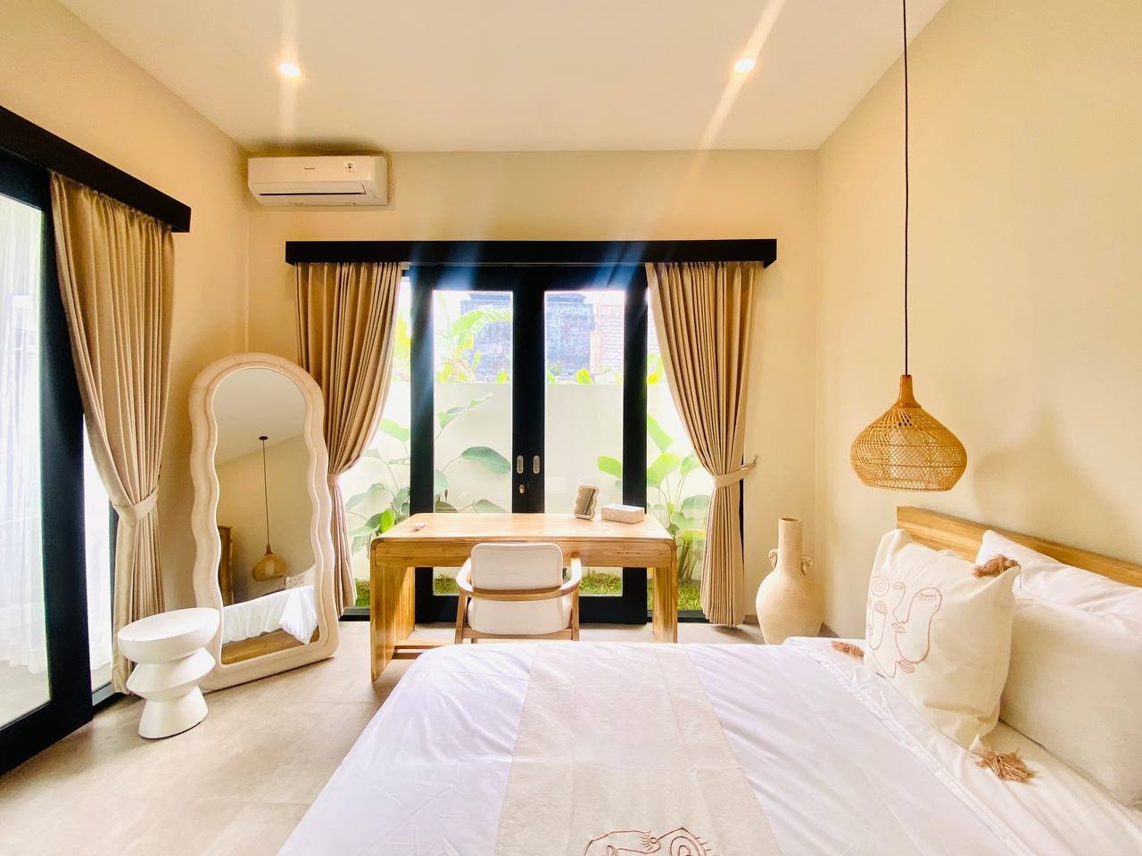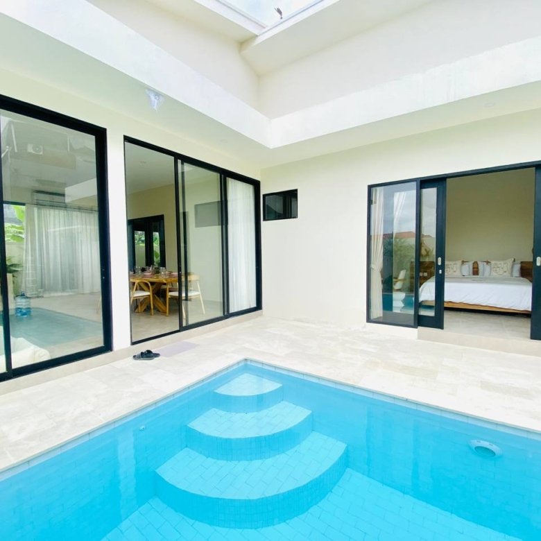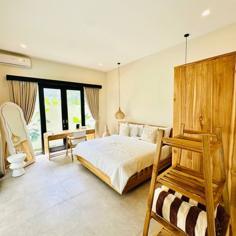 This is Villa B, one of two twin units available for yearly rental and leasehold, located in the sought-after area of Canggu Subak Daksina. Featuring a modern design and a private pool, the villa offers a comfortable and stylish living space. It’s conveniently surrounded by local favorites like Klasika Food & Beverage and Pizzagasm, and just a 10-minute bike ride to Echo Beach. Situated in a yellow zoning area, it’s ideal for sublease opportunities or as a peaceful private residence. Ready for immediate move-in.