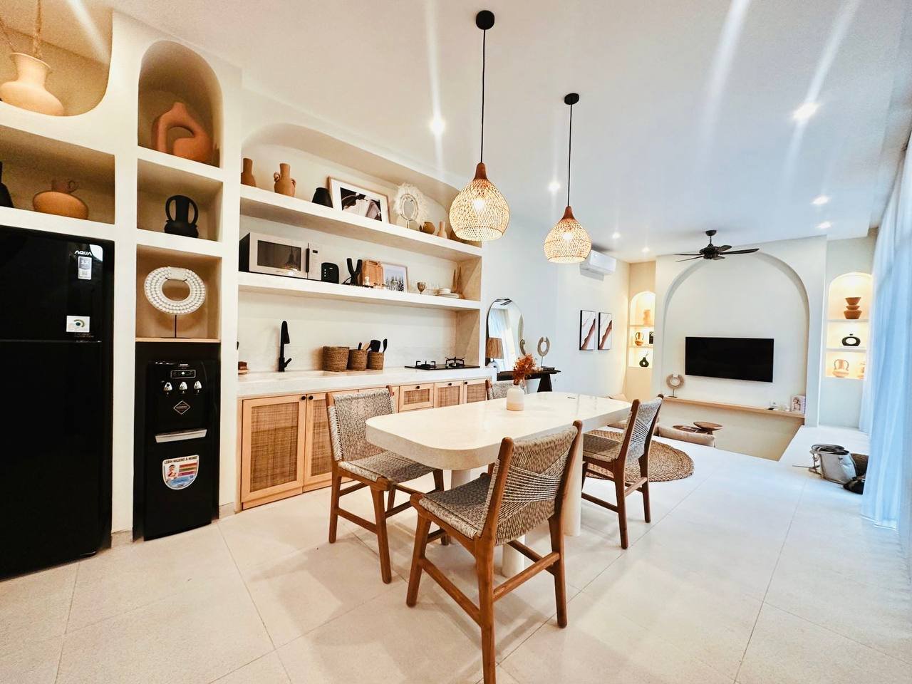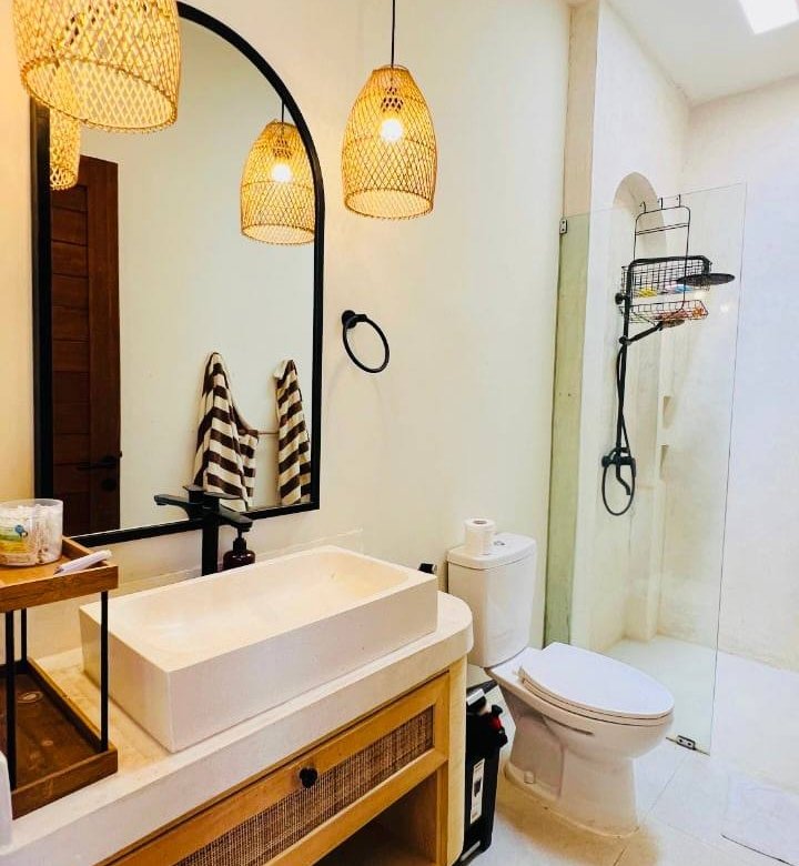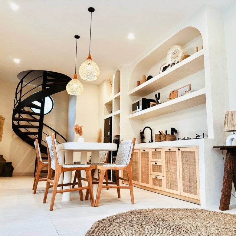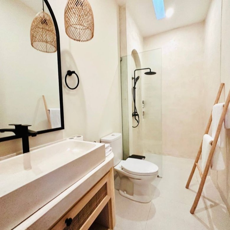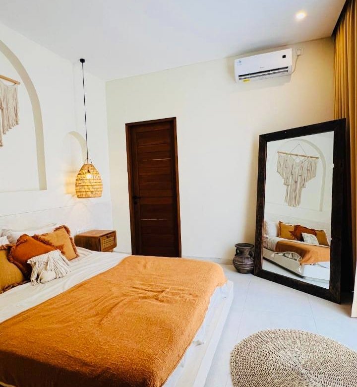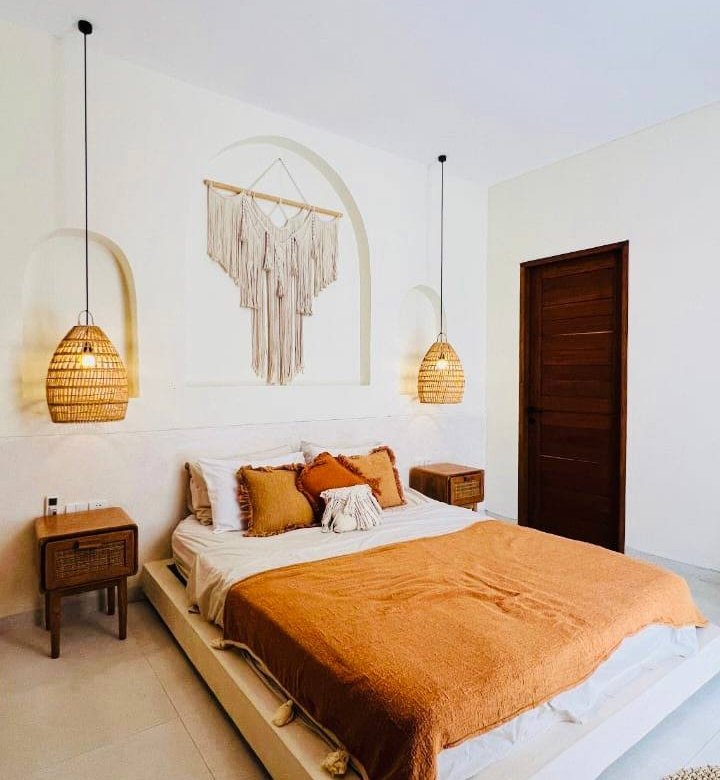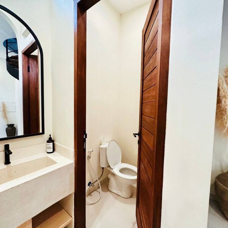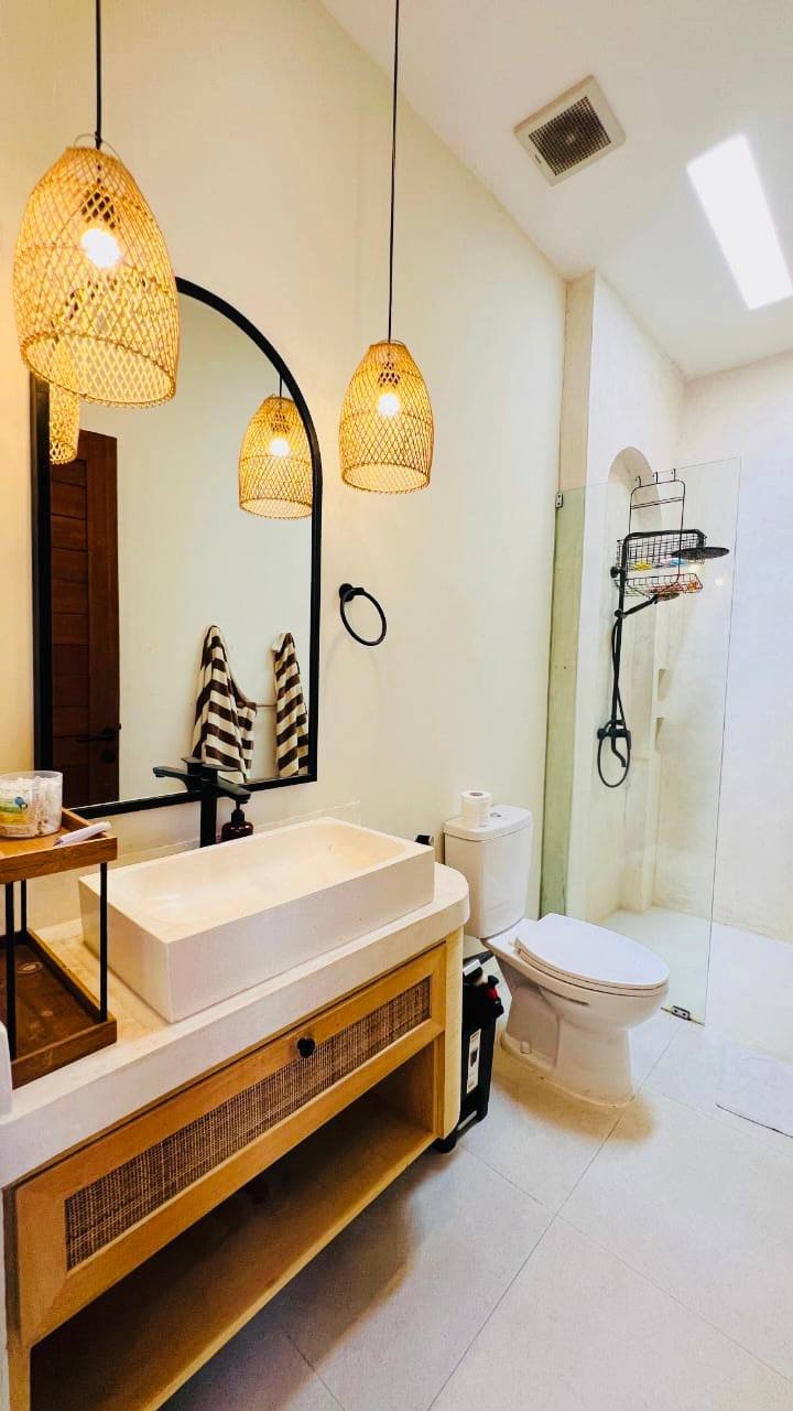 This modern Mediterranean-style villa is available April 2026 for yearly rent in Cemagi. It features a pool and residential views, with the surrounding area offering easy access to Mangening Beach and Cemagi Beach. A sublease is possible with a minimum three-year commitment.