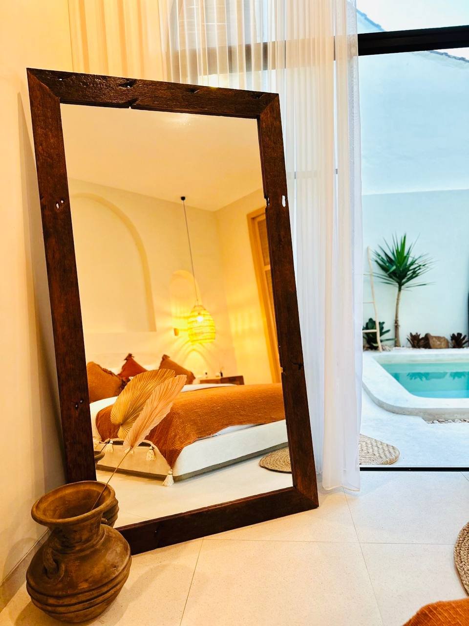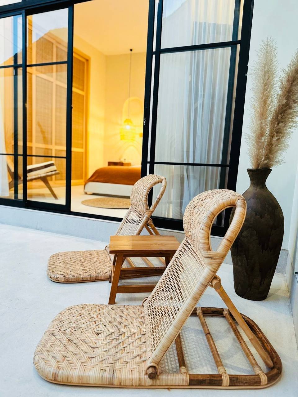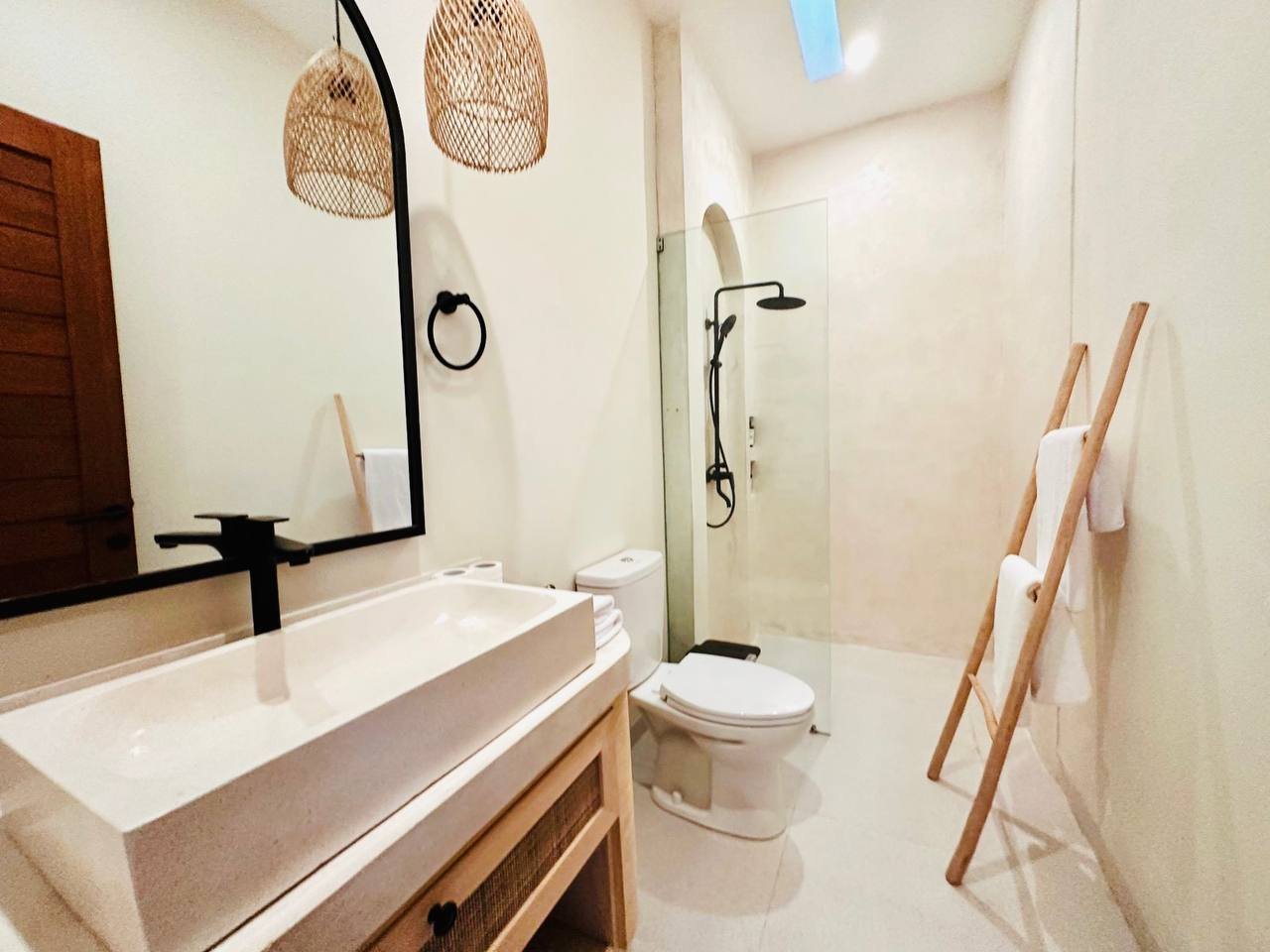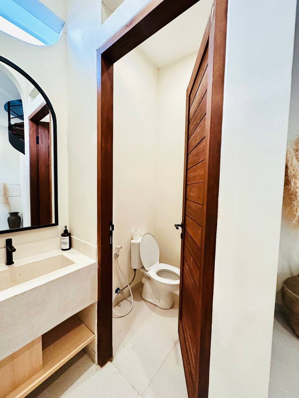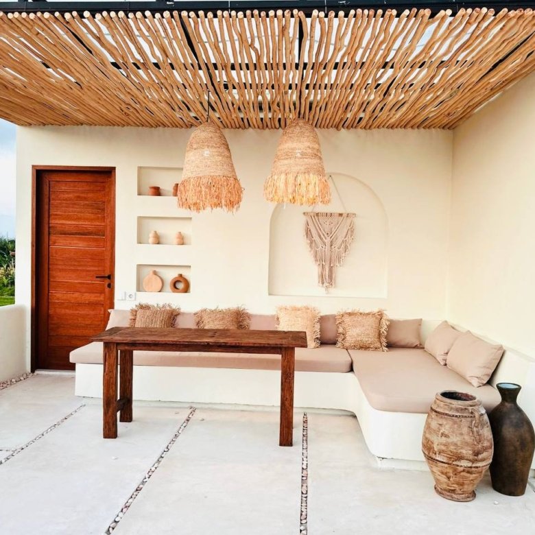 This modern Mediterranean-style villa is available April 2026 for yearly rent in Cemagi. It features a pool and residential views, with the surrounding area offering easy access to Mangening Beach and Cemagi Beach. A sublease is possible with a minimum three-year commitment.
