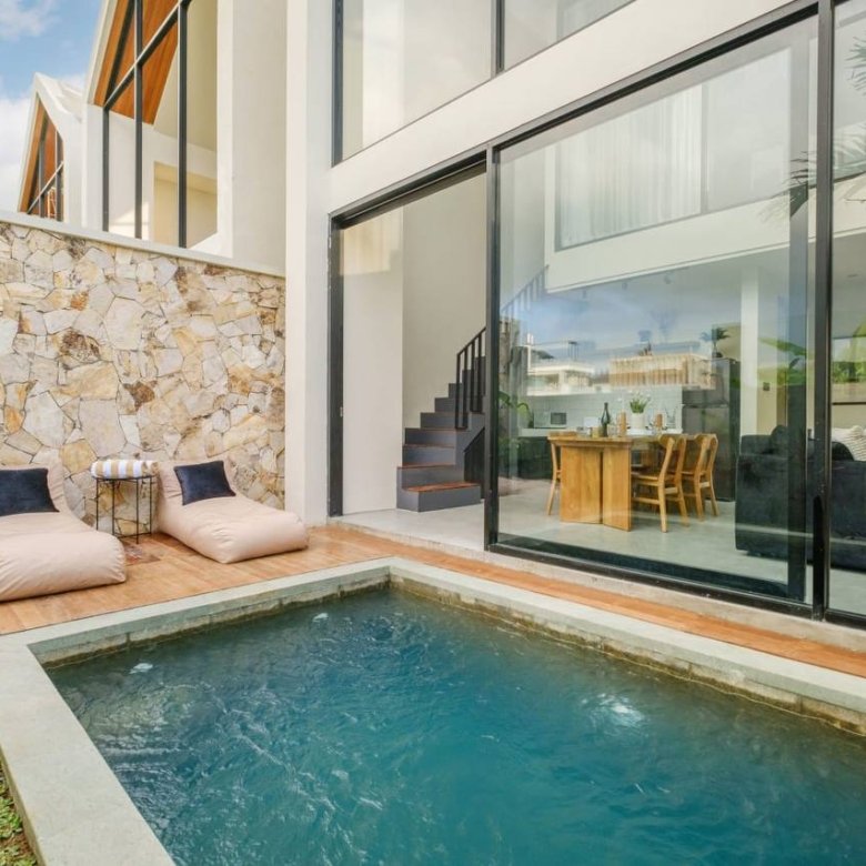 This modern villa, ready for immediate occupancy in the Pererenan Tumbak Bayuh area, is available for both monthly and yearly rent. It features a pool view and is situated in a highly strategic and comfortable location, making it a cozy place to live. The area is close to Undefeated Gym | Athlete Training Facility and Village Cafe Bali, and is just an 11-minute drive to Pererenan Beach.