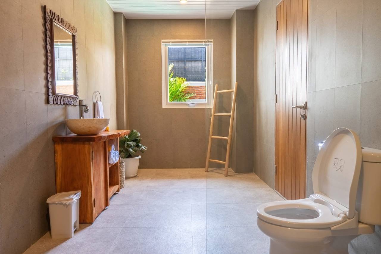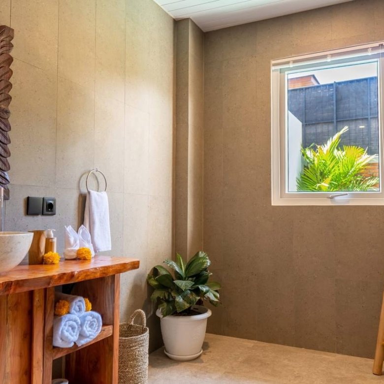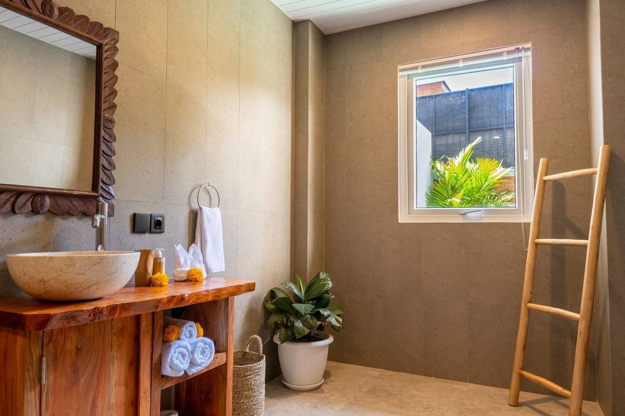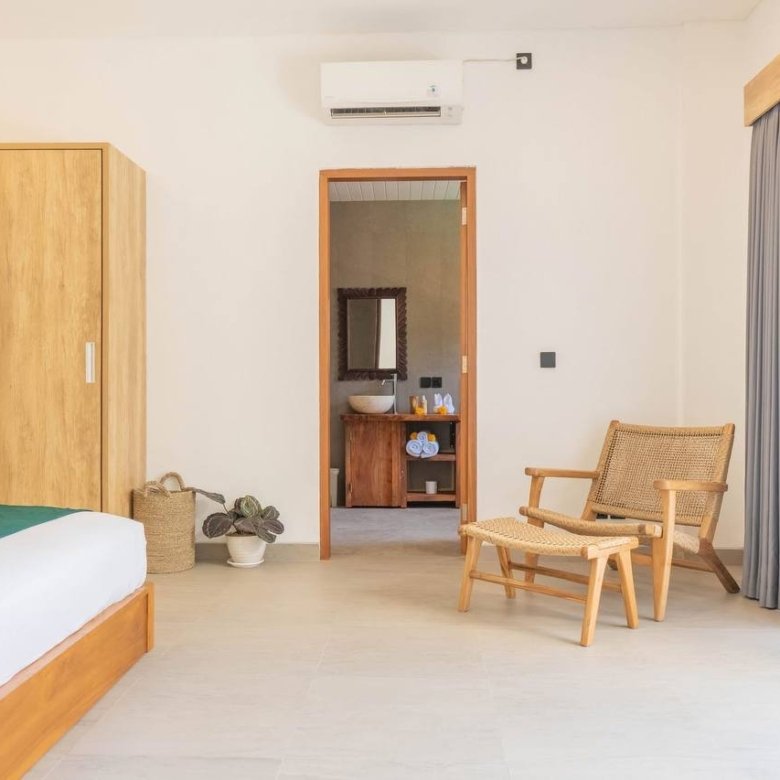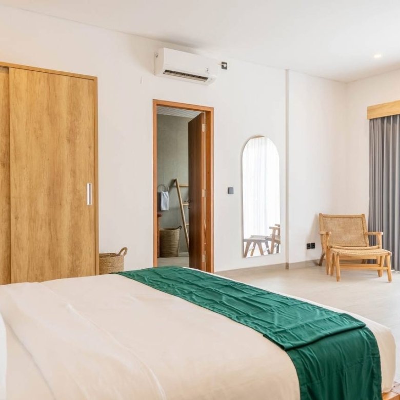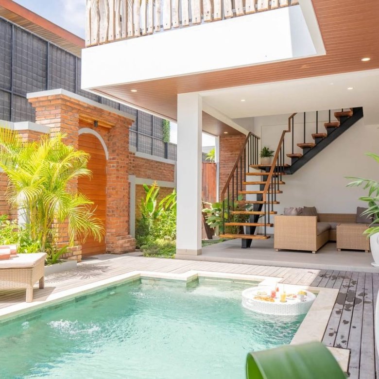 This modern Balinese-style villa in Tumbak Bayuh is available for monthly and yearly rent. It offers a private pool view and is located in a peaceful yet strategic area, surrounded by popular cafés such as Torst Coffee and Green Leaf Coffee. The villa is just a 10-minute bike ride to Pererenan Beach, making it a perfect blend of comfort and convenience for your Bali lifestyle.