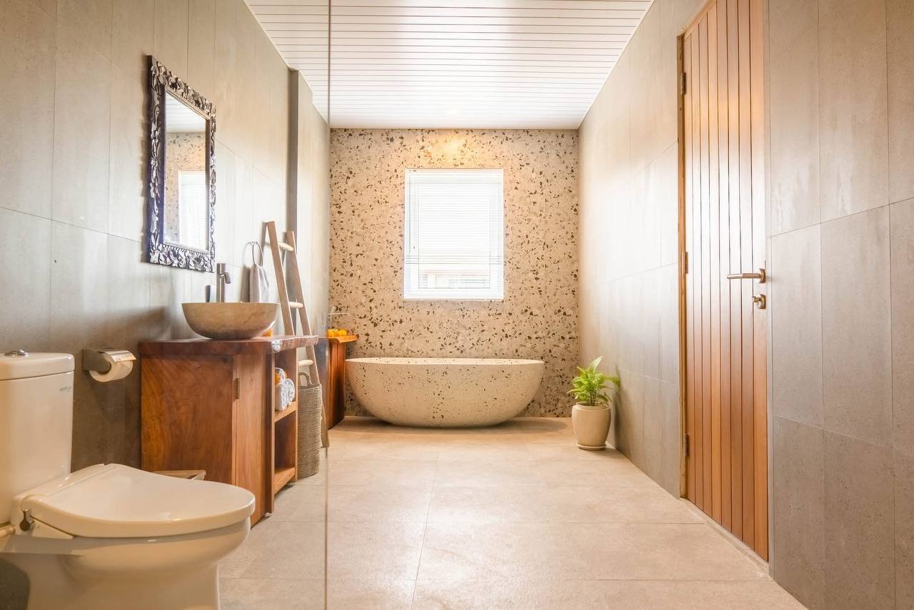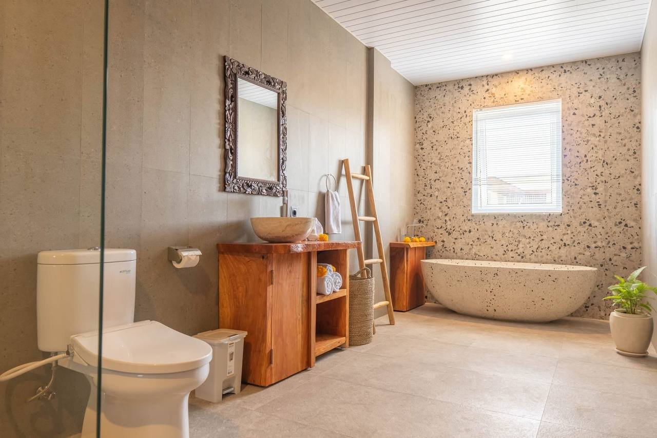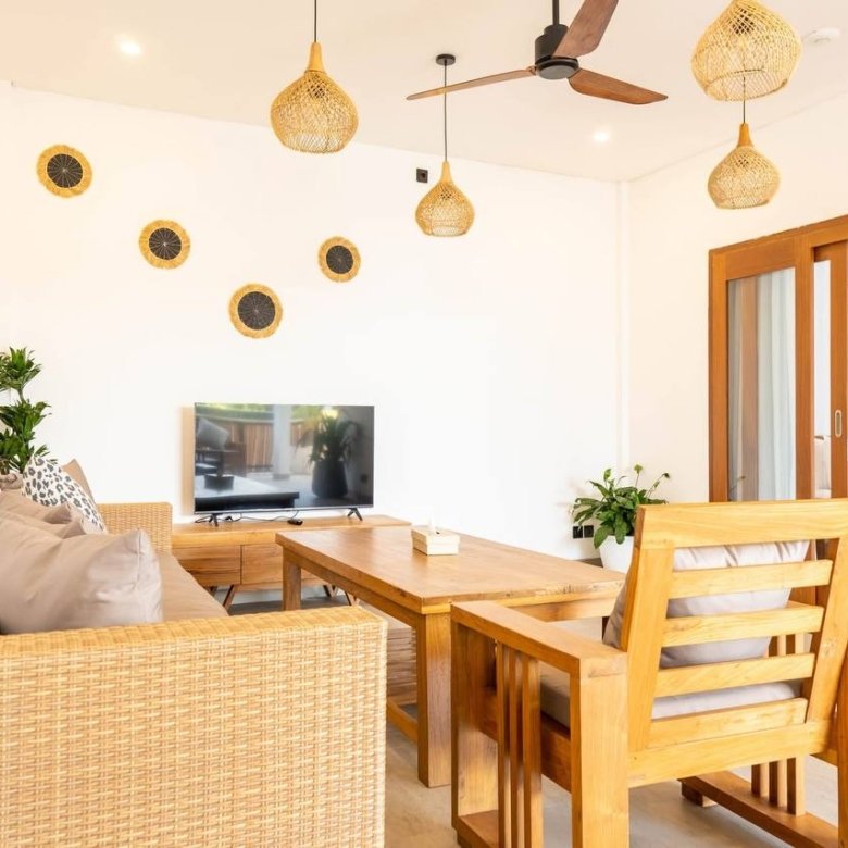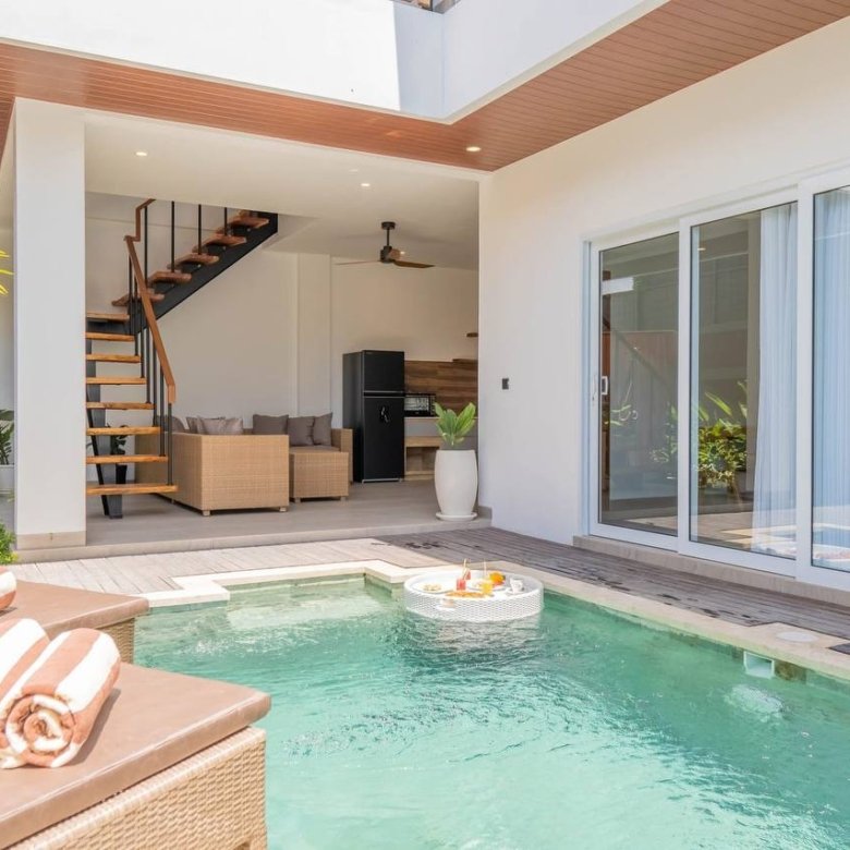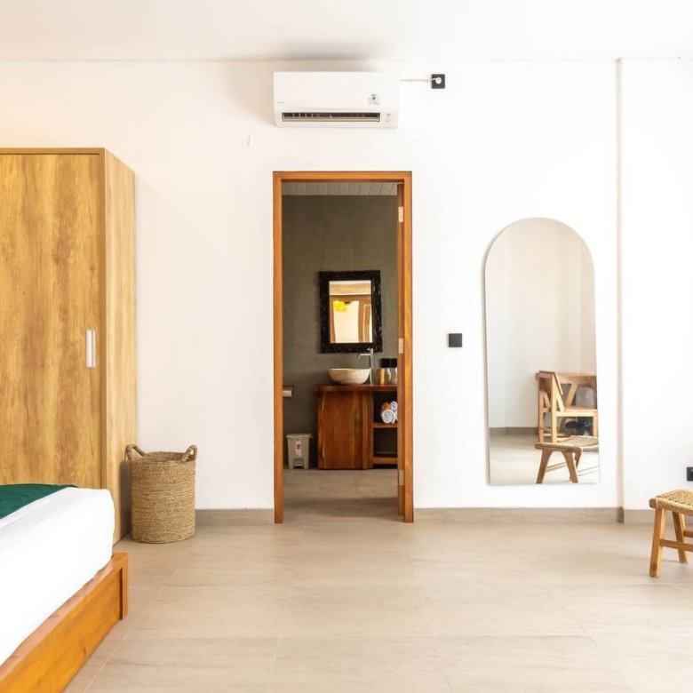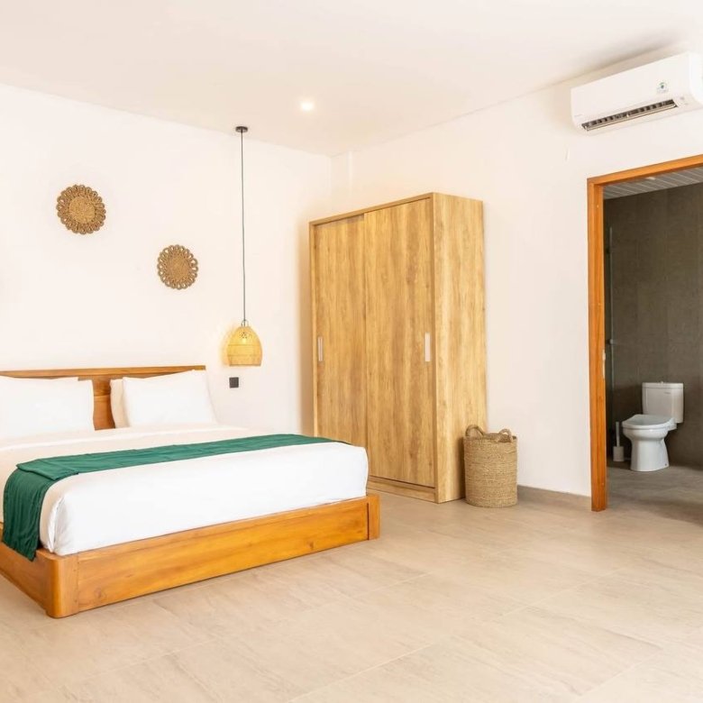 This modern Balinese-style villa in Tumbak Bayuh is available for monthly and yearly rent. It offers a private pool view and is located in a peaceful yet strategic area, surrounded by popular cafés such as Torst Coffee and Green Leaf Coffee. The villa is just a 10-minute bike ride to Pererenan Beach, making it a perfect blend of comfort and convenience for your Bali lifestyle.