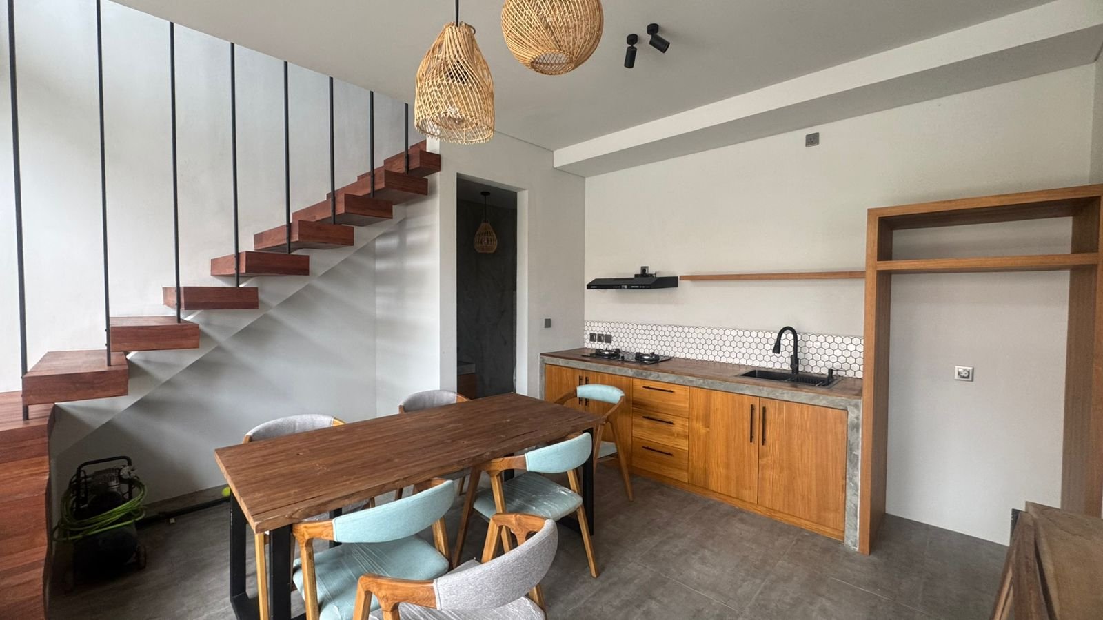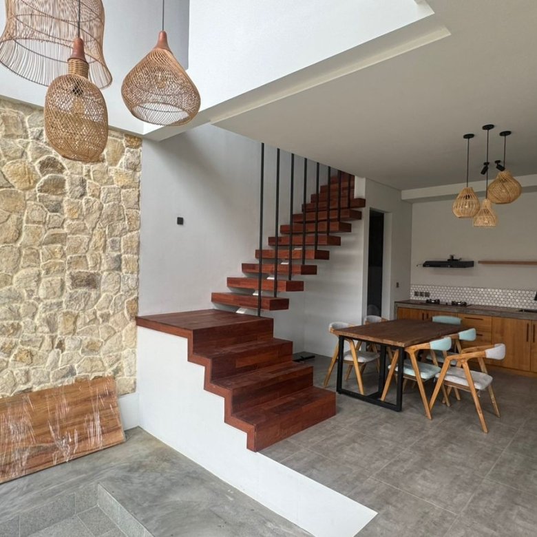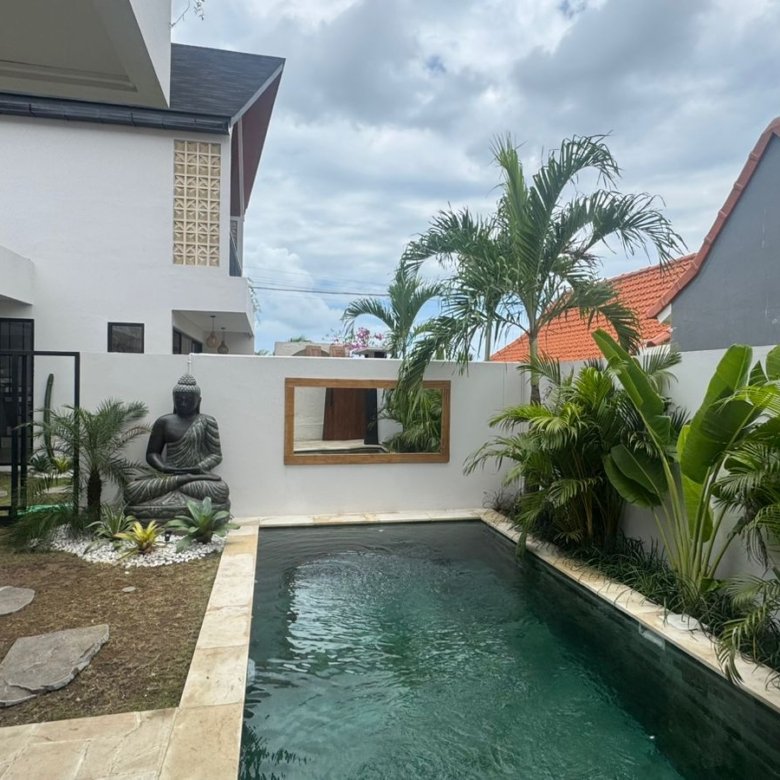 This twin villa newly built, two-bedroom enclosed villa features a minimalist design. It’s a cozy home perfect for working remotely or creating your own private retreat. Ideally located, it’s just 12 minutes from central Canggu.