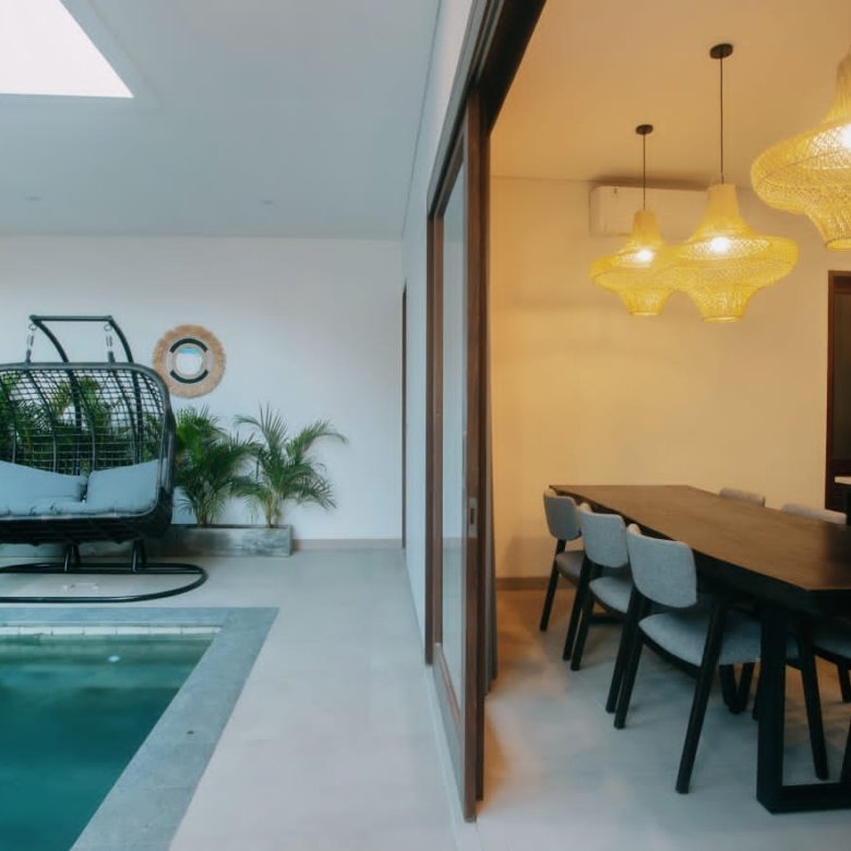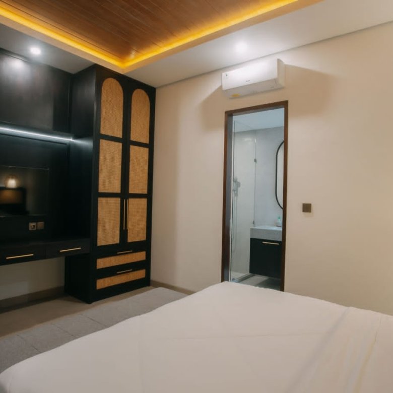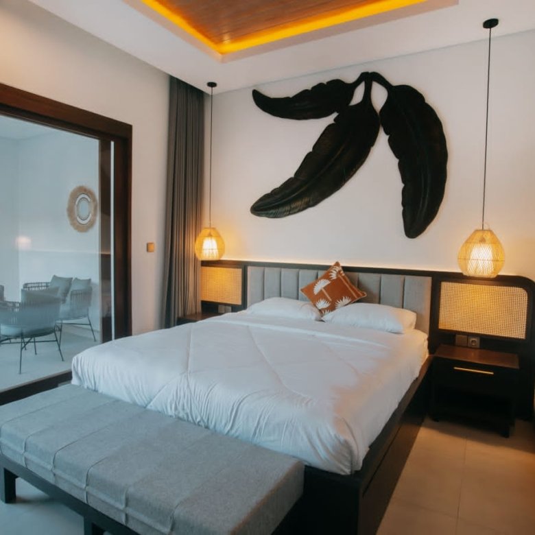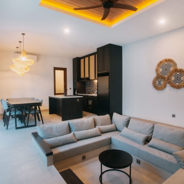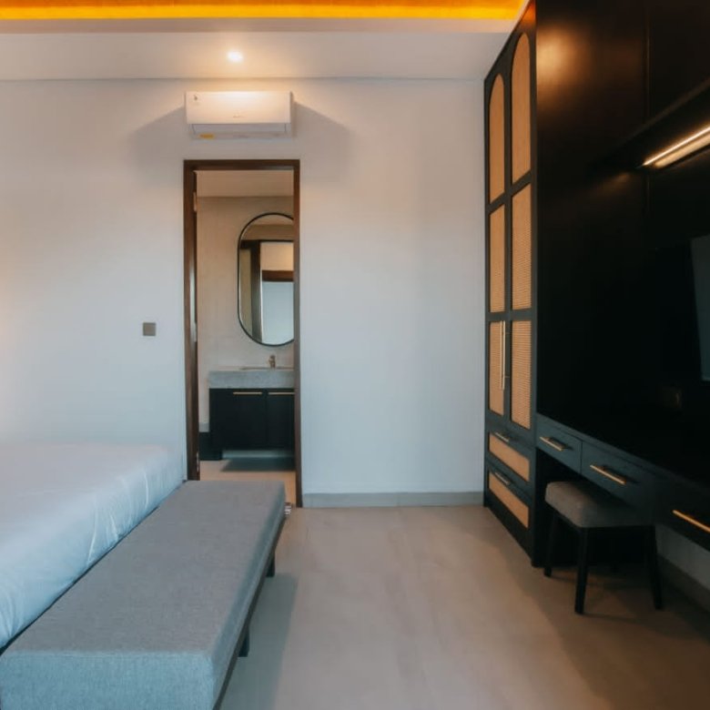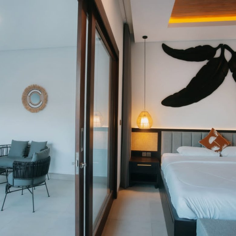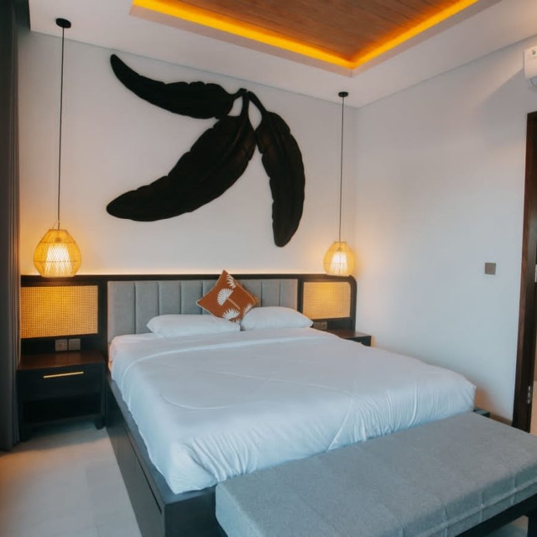 Experience Bali living in this homey, two-bedroom ensuite villa designed with a modern minimalist aesthetic. Located in Tumbak Bayuh, Pererenan, you’re just a short 10-minute bike ride from Pererenan Beach. Spend your days relaxing by the private swimming pool with your family or partner. The location is excellent—surrounded by other villas and only a short walk to Morigana Restaurant. It’s the perfect place to stay and enjoy life in Bali.