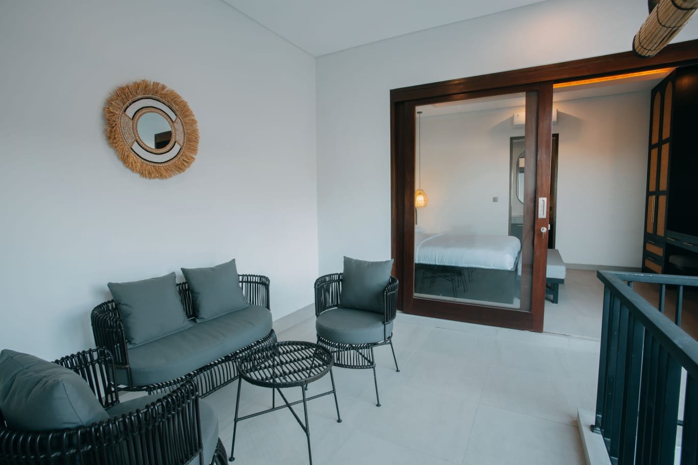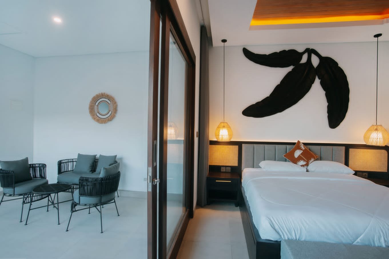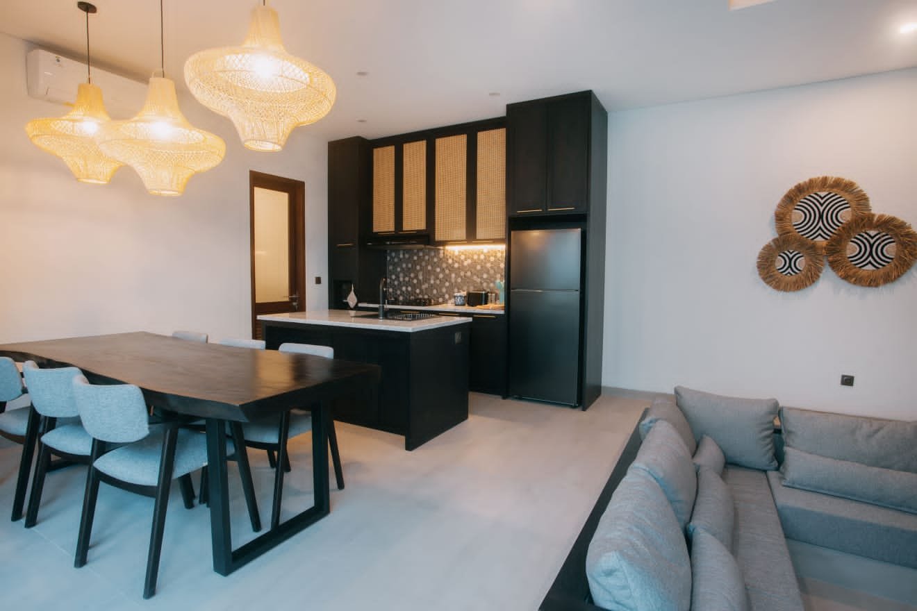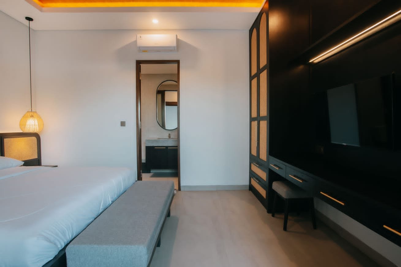 Experience Bali living in this homey, two-bedroom ensuite villa designed with a modern minimalist aesthetic. Located in Tumbak Bayuh, Pererenan, you’re just a short 10-minute bike ride from Pererenan Beach. Spend your days relaxing by the private swimming pool with your family or partner. The location is excellent—surrounded by other villas and only a short walk to Morigana Restaurant. It’s the perfect place to stay and enjoy life in Bali.