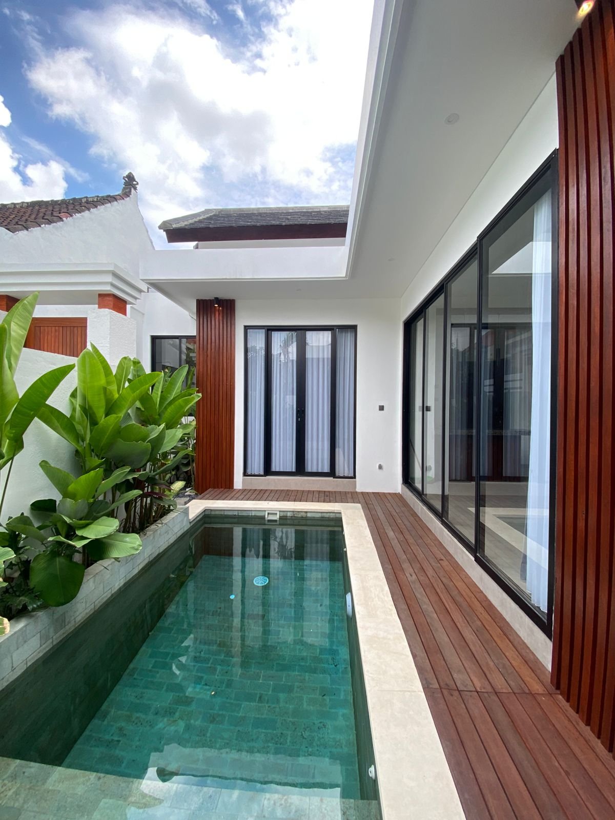 This newly built, fully furnished villa features an enclosed living room and kitchen, and is now available for long-term rental. Designed with a minimalist and modern aesthetic, it offers a warm, homely atmosphere—perfect for families or couples seeking comfort and style. Conveniently located just 10 minutes from Seseh Beach and 15 minutes from Pererenan Beach by bike, the villa sits in a peaceful area that’s still close to vibrant beach spots and bustling neighborhoods. Discover your ideal retreat where tranquility meets accessibility.