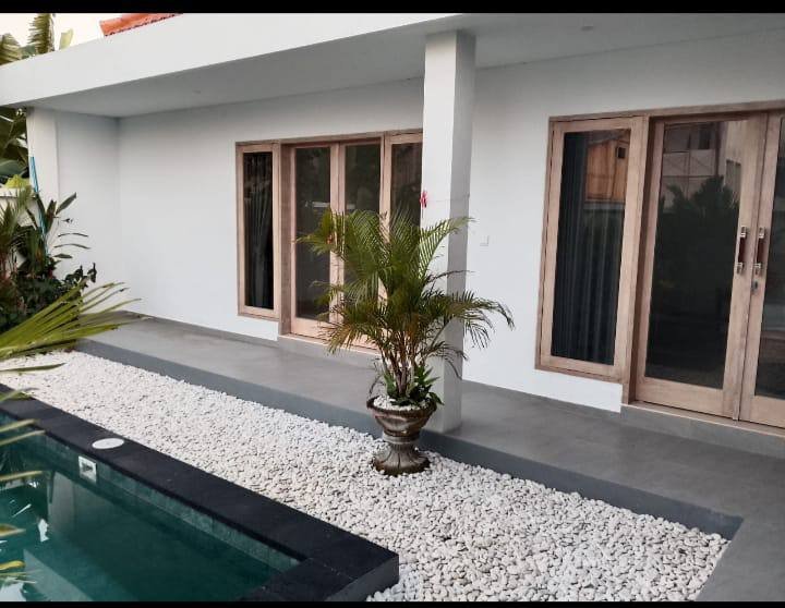 This modern villa in Buwit is ready now for yearly rent. It features a pool view and is situated in a strategic location: just 3 minutes to Pepito, 10 minutes to Seseh Beach, and 10 minutes to Luna Beach Club Nyanyi.