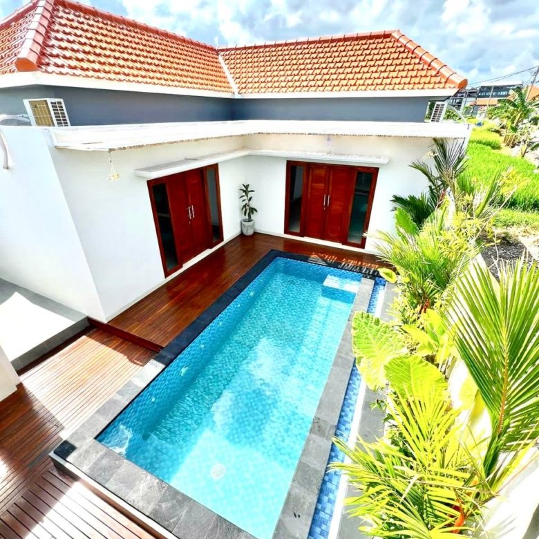 This stylish modern villa in Pererenan is now available for a minimum two-year yearly rental. The property offers stunning views of a private pool and a lush rice field, providing a serene and relaxing atmosphere. Situated in a convenient location, it’s just a 10-minute drive to Pererenan Beach and is surrounded by popular spots like Paon Tuna, Surya Gym, and Obsidian Gym. This villa also offers the possibility of subleasing, making it a flexible and attractive option for tenants