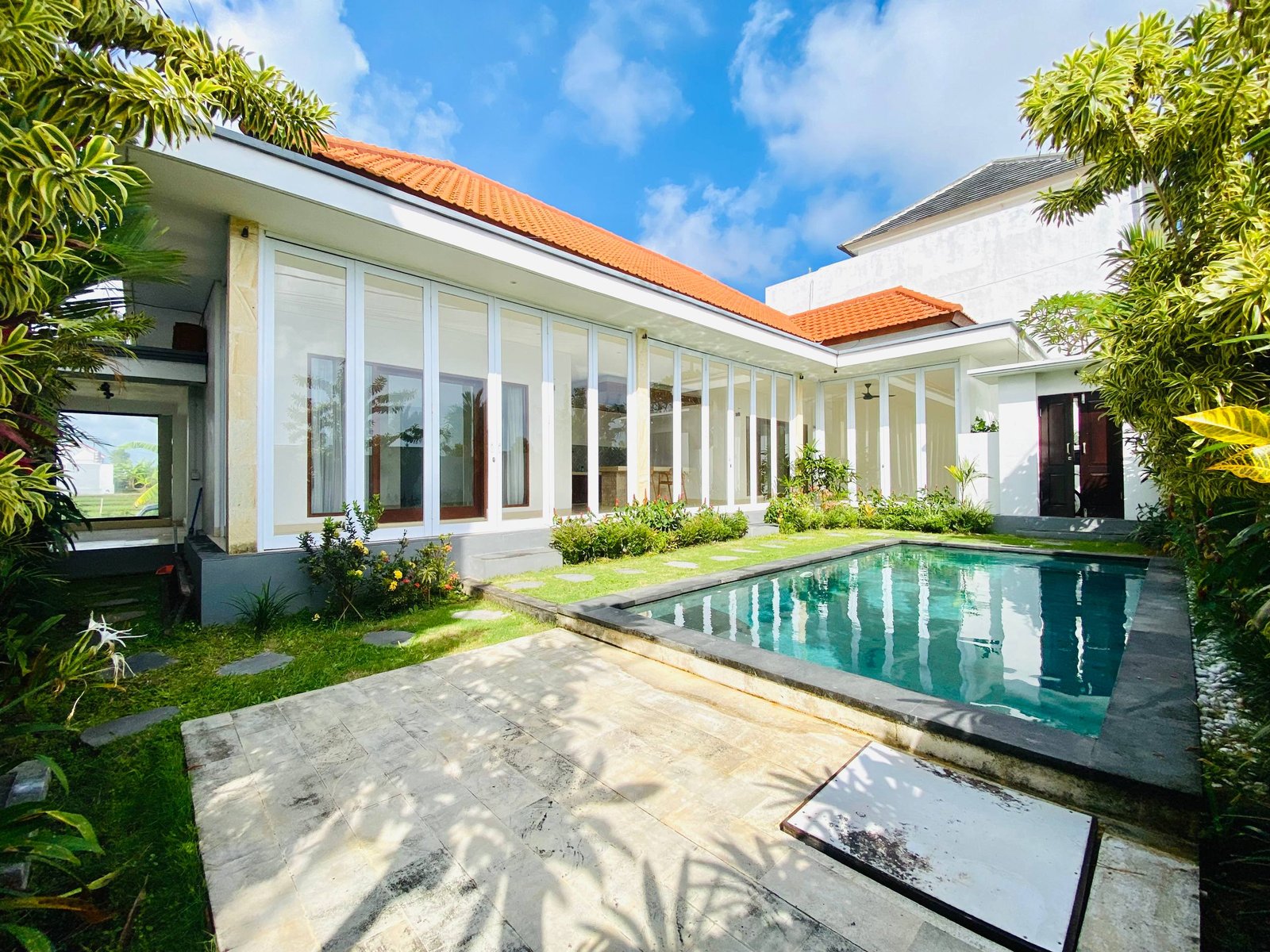 This modern villa in Pererenan is ready now for yearly rent. It offers a rice field view and is strategically located in the middle between Pererenan Beach and Lima Beach, making it one of the most popular areas for tourists and expats to live in. The area is close to many cafes and bars, just 5 minutes to Pererenan Beach, and 3 minutes to Lima Beach. Subleasing is possible.