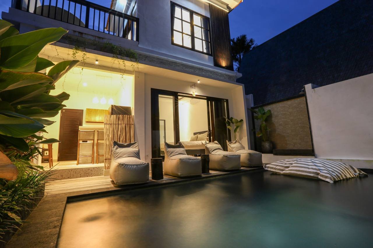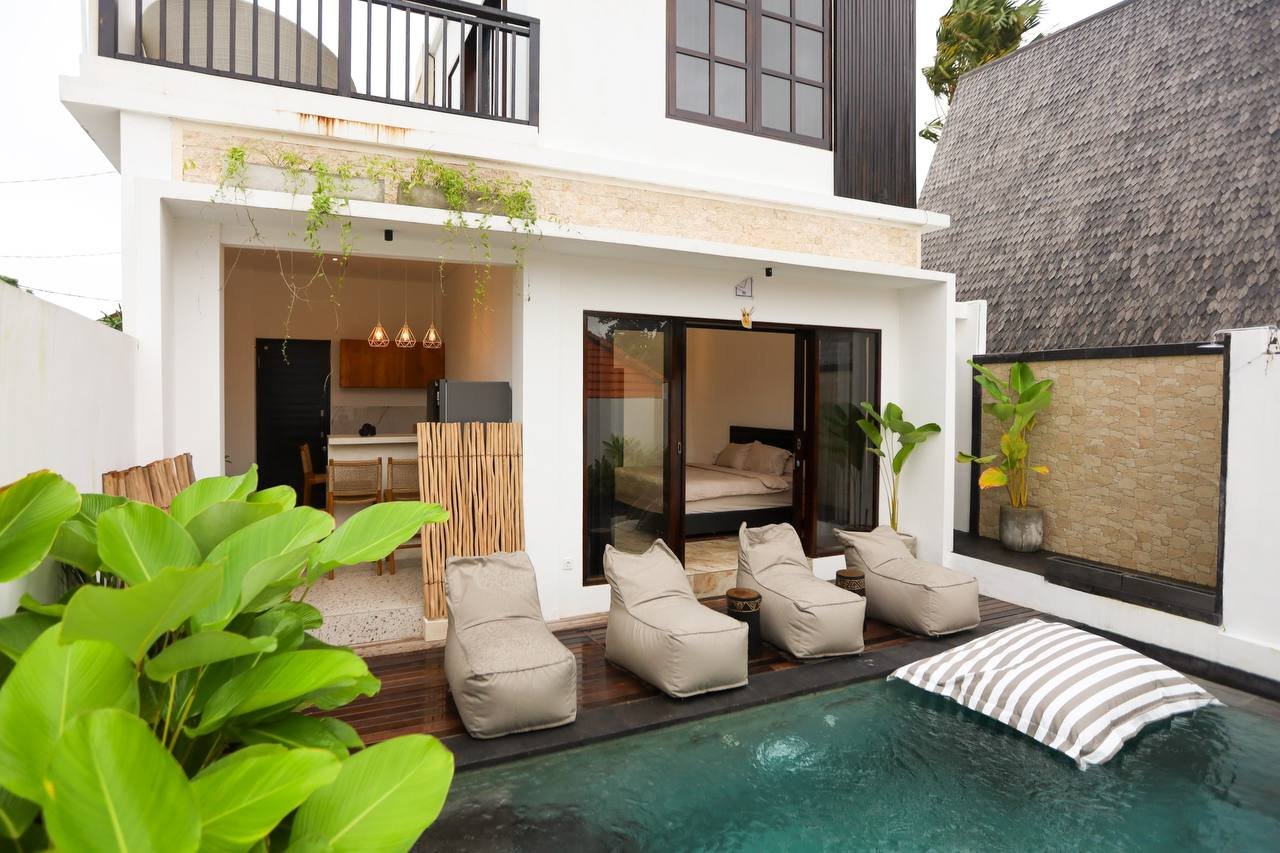 This modern villa in the Pererenan area is ready for immediate yearly rent, with a leasehold option also possible, and allows for subleasing. The property is ideally located near several major points of interest, including Pererenan Beach, Batu Bolong Beach, Echo Beach, Surya Gym, Wrong Gym, and Tanah Lot.