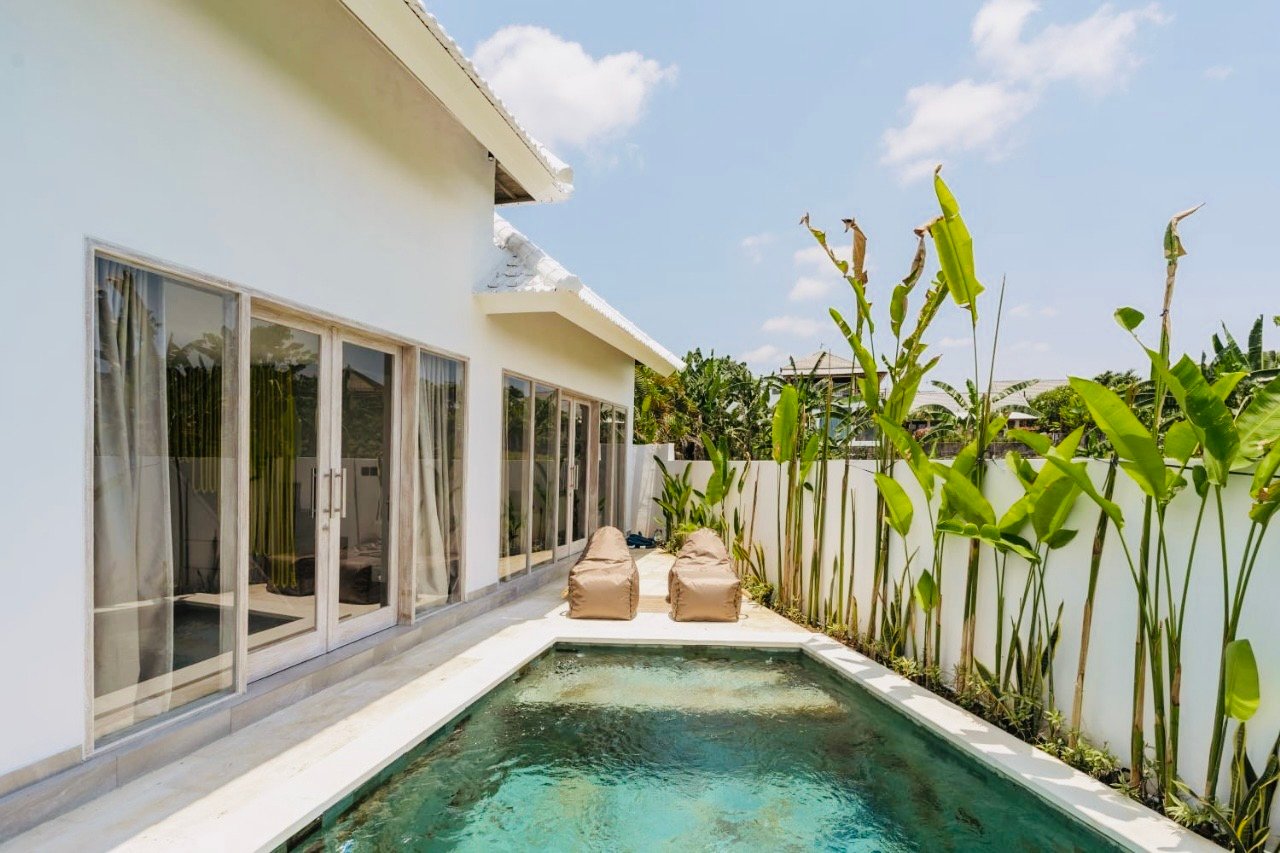 Located in a quiet gang on Jalan Bucu, Umalas, this beautifully designed villa offers a perfect blend of tropical charm and modern comfort ideal for both short and long stays only 3 minutes to Briocherie Bali & Billy Pilates while Berawa & Batu Belig Beach only 10 minutes away.