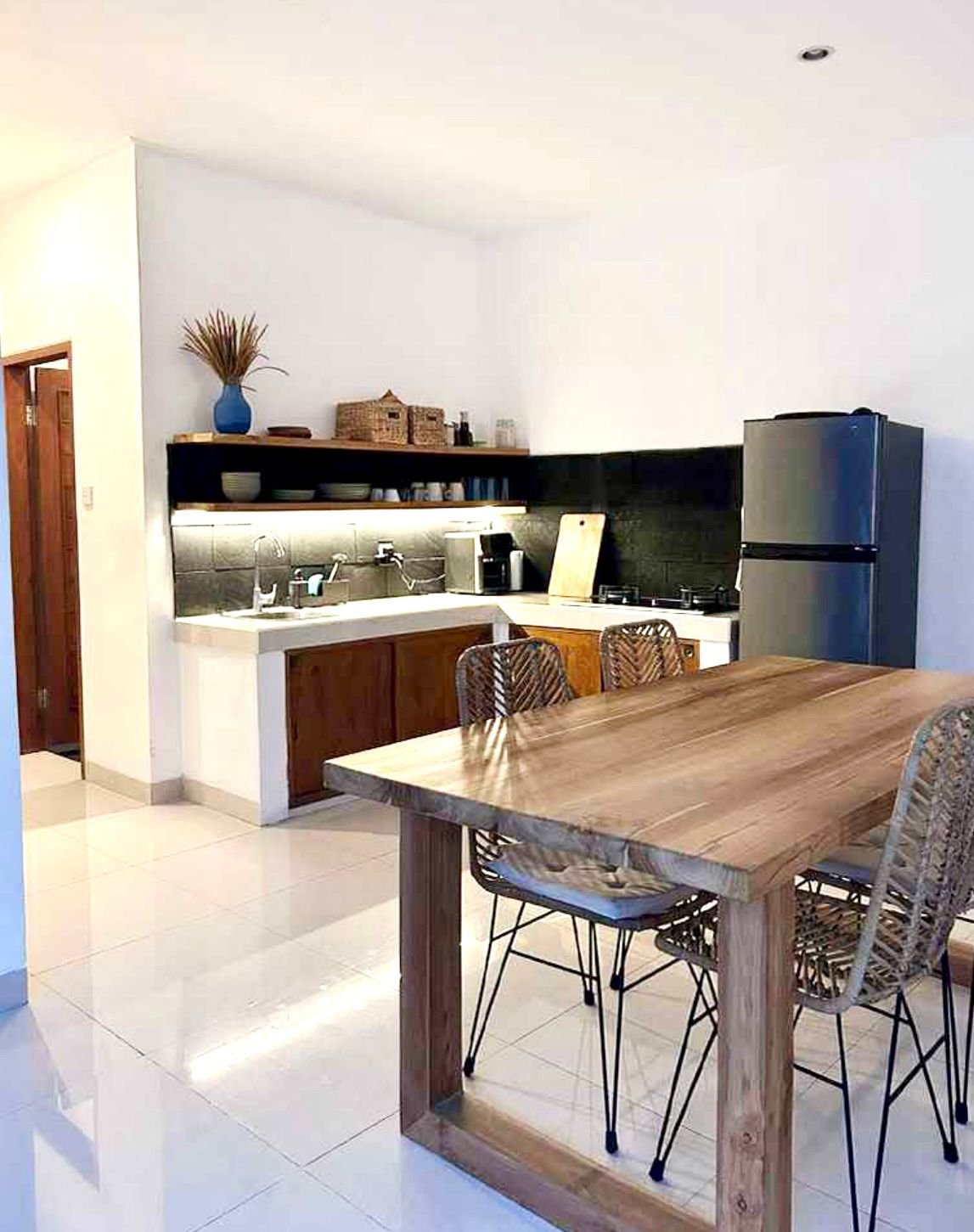 This charming modern tropical Balinese villa is tucked away in a quiet gang in the highly desirable Pererenan area, offering privacy while remaining close to everything.