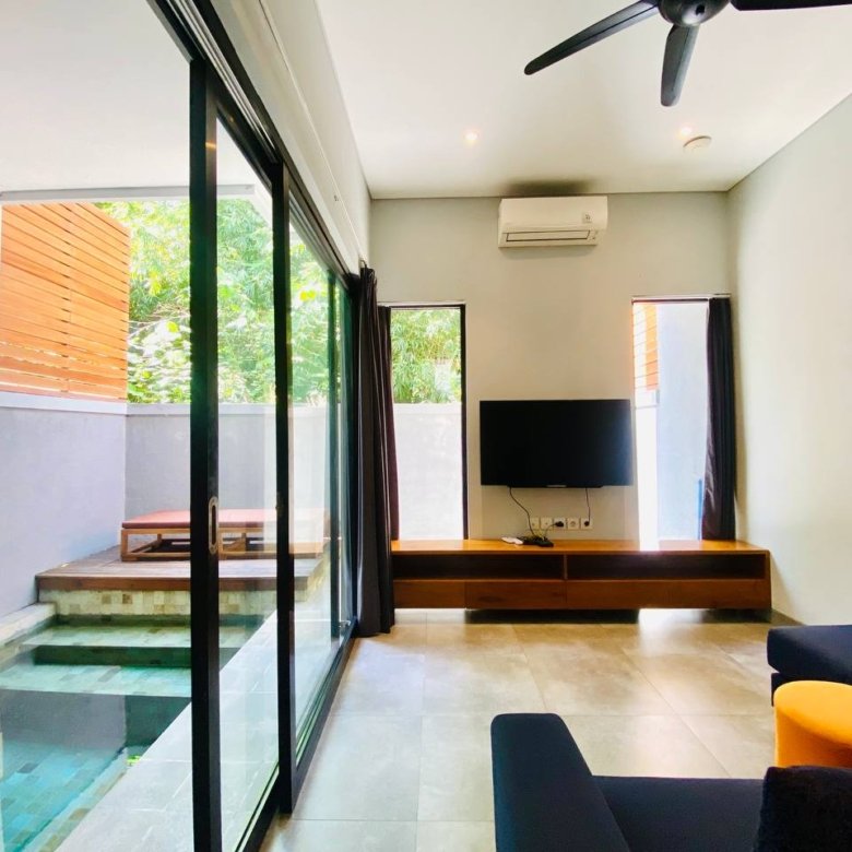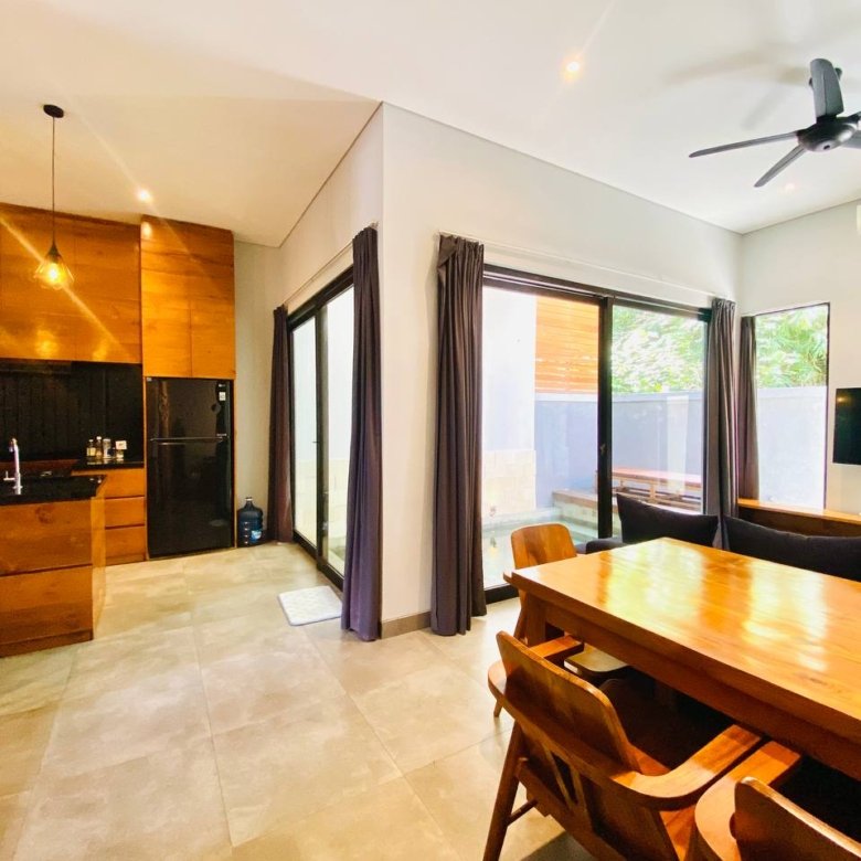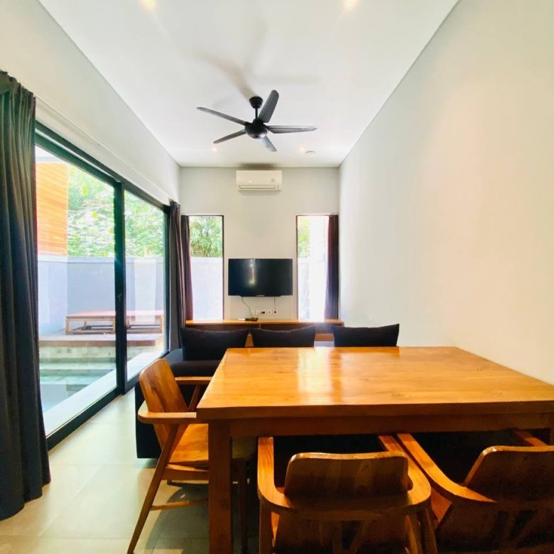 Located in the Umalas area, this property offers stunning river and jungle views, with easy access to nearby attractions such as Nook Restaurant and just a 9-minute bike ride to Berawa Beach. The rental includes WiFi, Indihome TV channels, Netflix, maid cleaning three times a week, pool maintenance once a week, a 12kg gas supply, drinking water refills, and weekly bed sheet changes. Electricity is excluded, and payment must be made upfront. Subleasing is not allowed