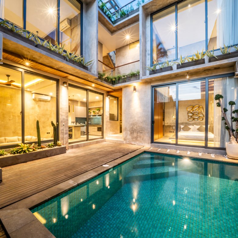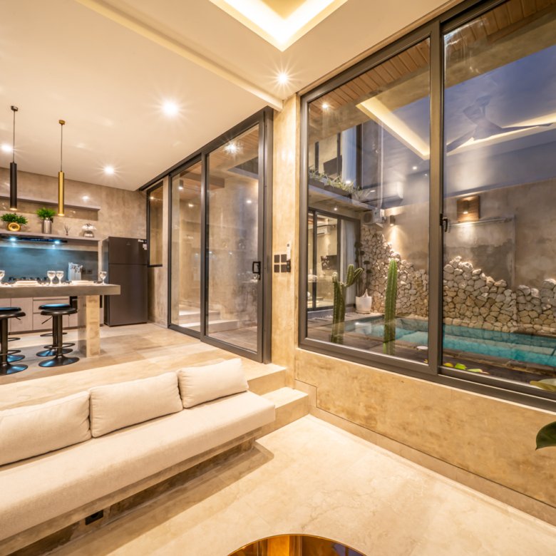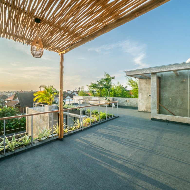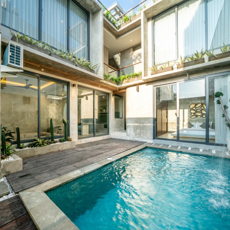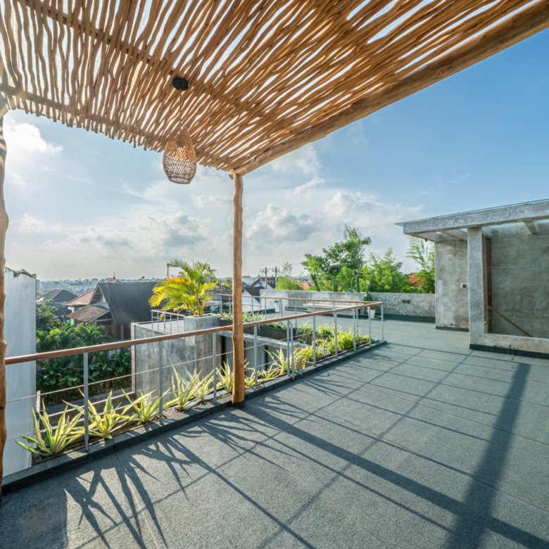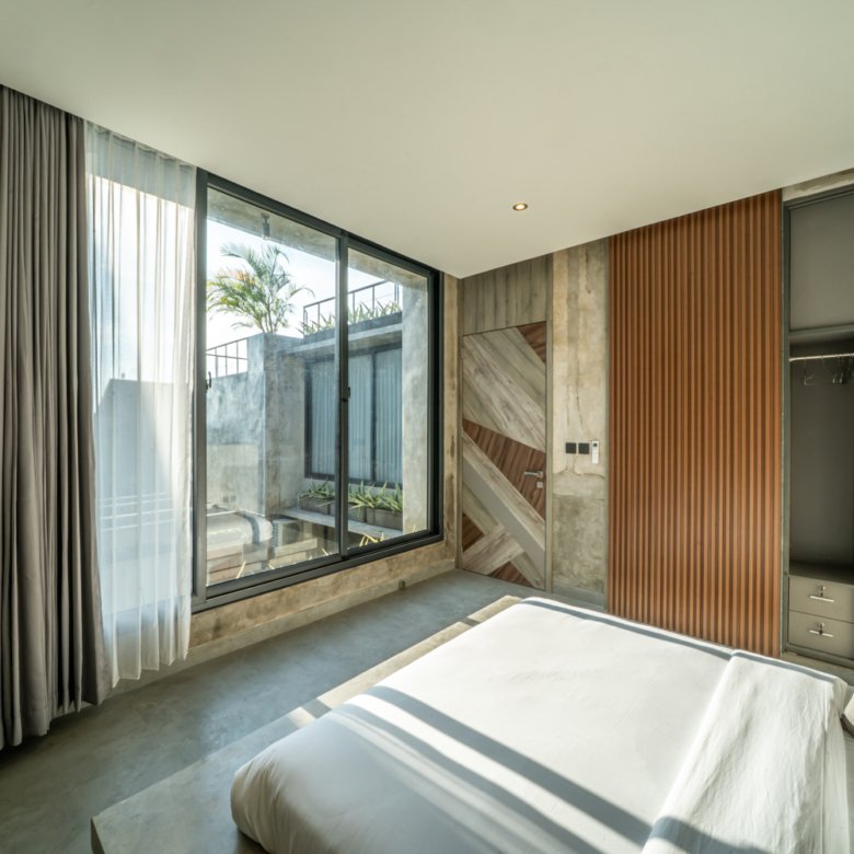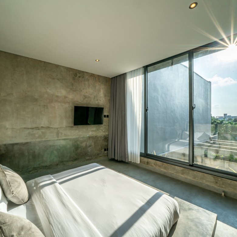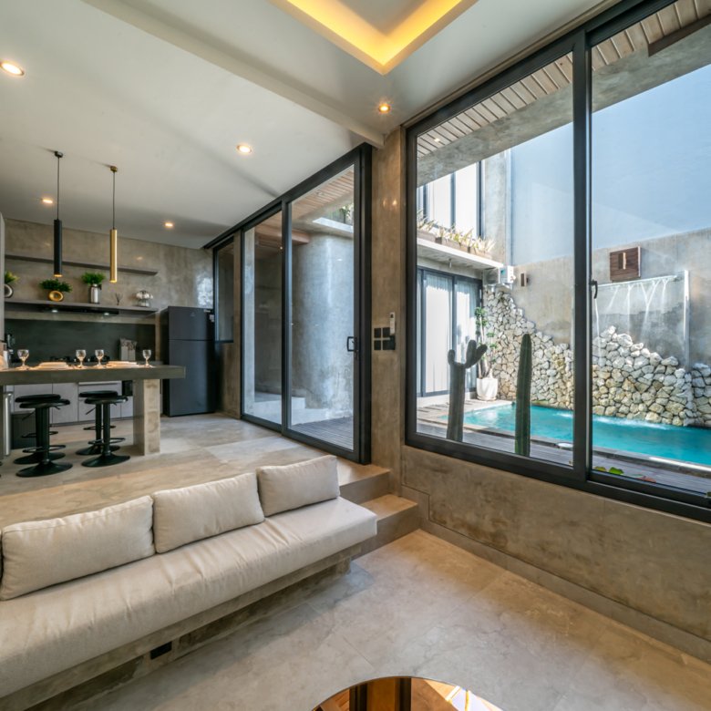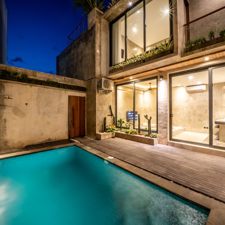 This modern industrial villa in Canggu Kayu Tulang is immediately available for yearly rent. The property features a two-story layout plus a rooftop area, offering views of the private pool and the surrounding residential neighborhood. Located in a prime spot, the villa is conveniently situated near popular places like Joomba Smoothies and Bali Social Club for Padel and Wellness, and is only a 5-minute bike ride to Echo Beach.