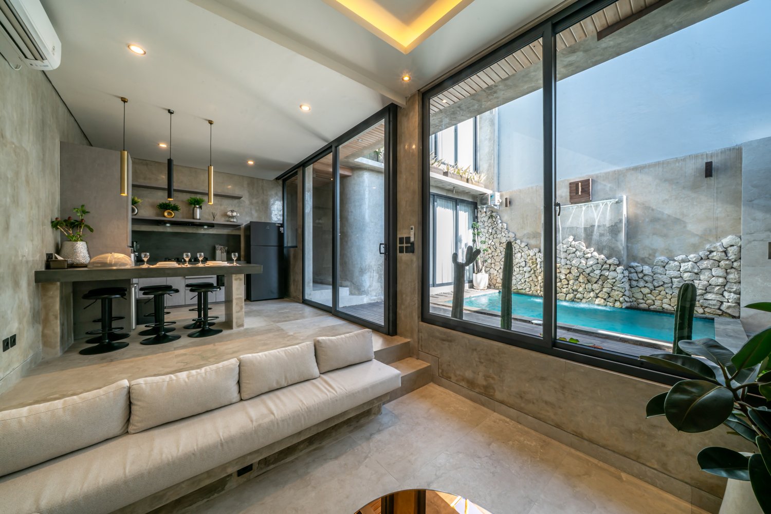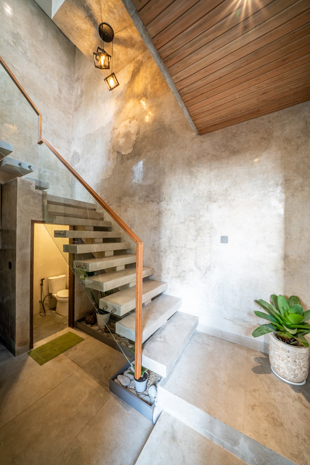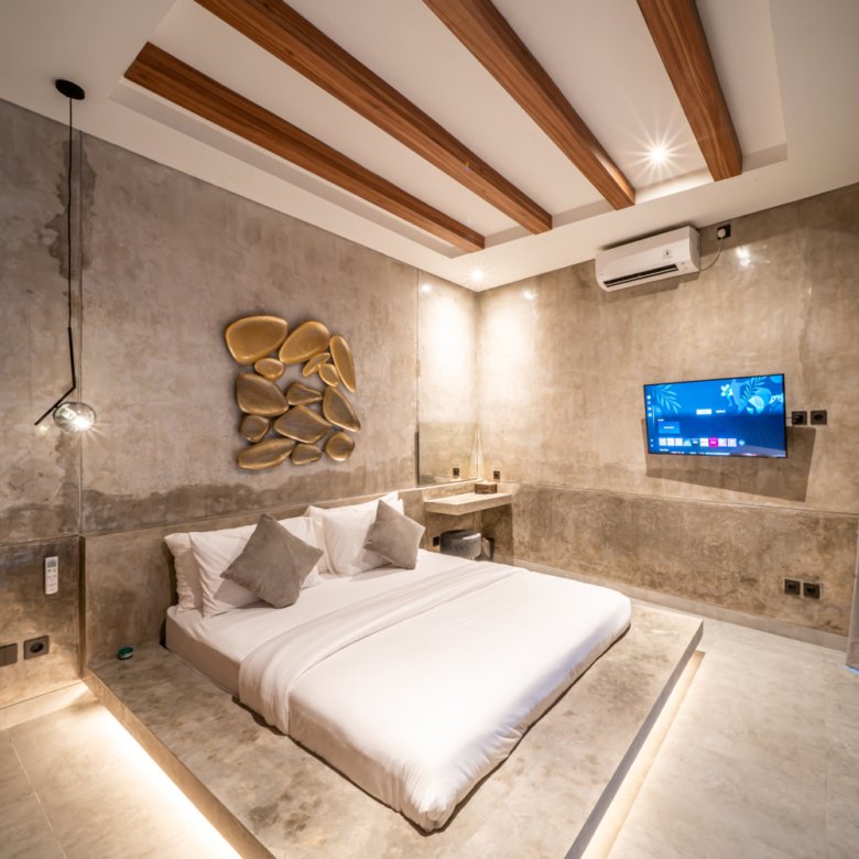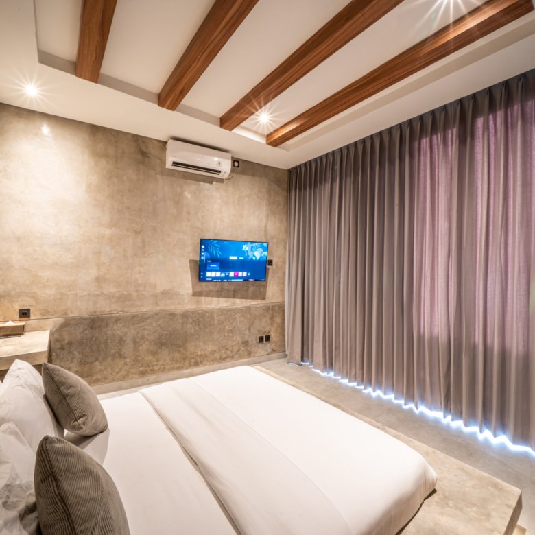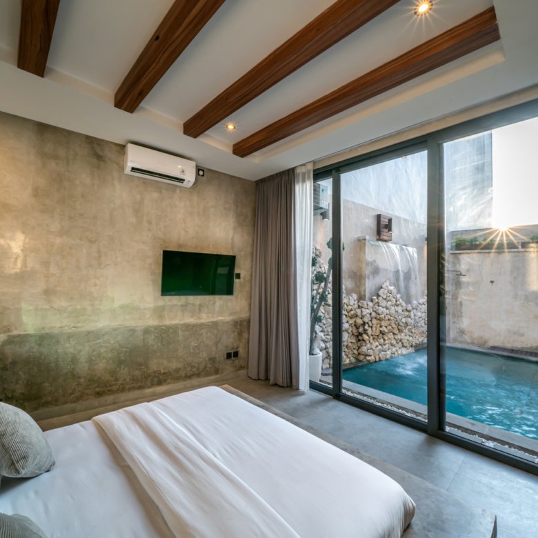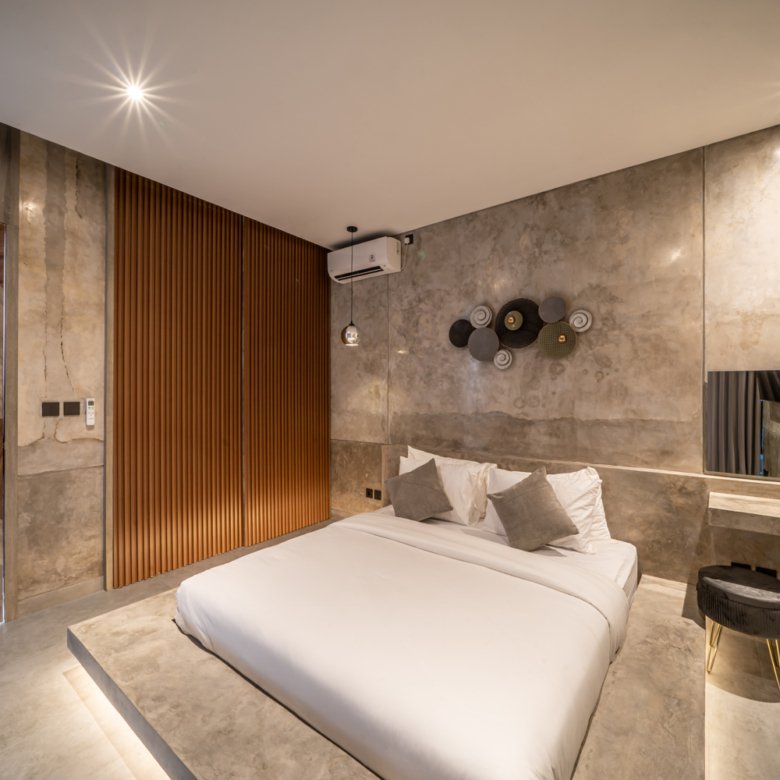 This modern industrial villa in Canggu Kayu Tulang is immediately available for yearly rent. The property features a two-story layout plus a rooftop area, offering views of the private pool and the surrounding residential neighborhood. Located in a prime spot, the villa is conveniently situated near popular places like Joomba Smoothies and Bali Social Club for Padel and Wellness, and is only a 5-minute bike ride to Echo Beach.
