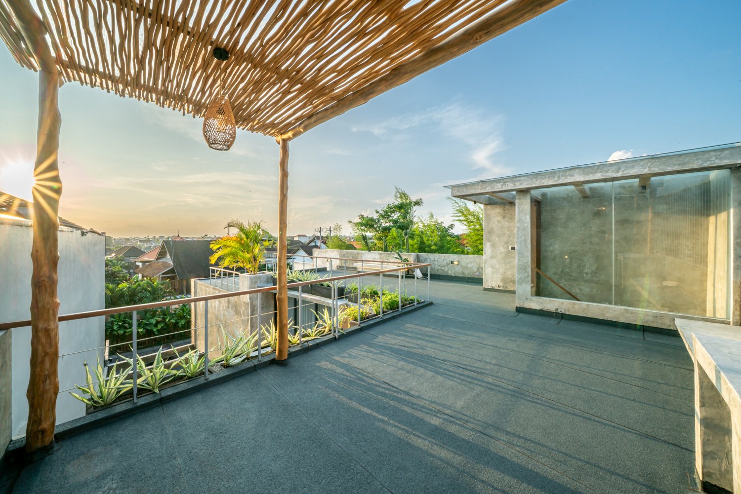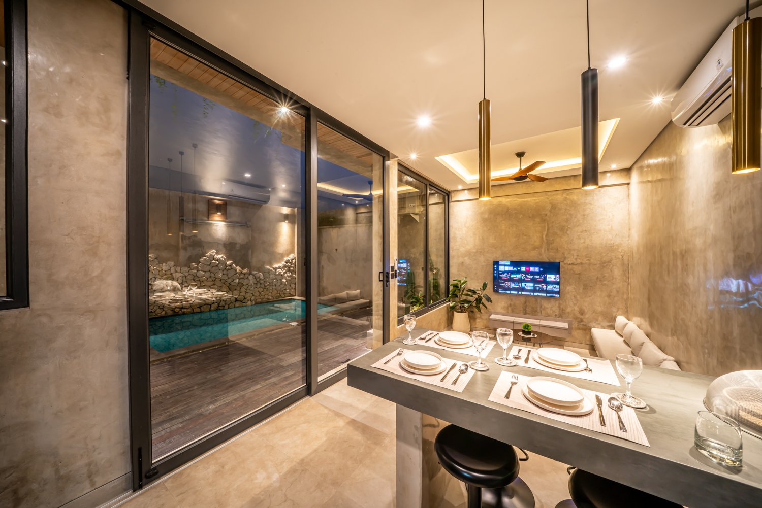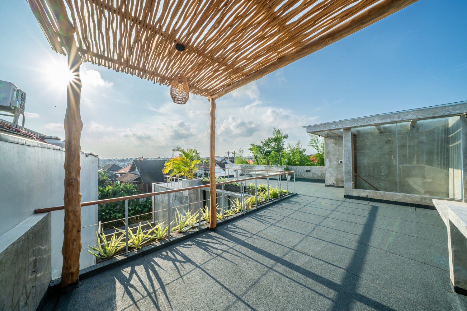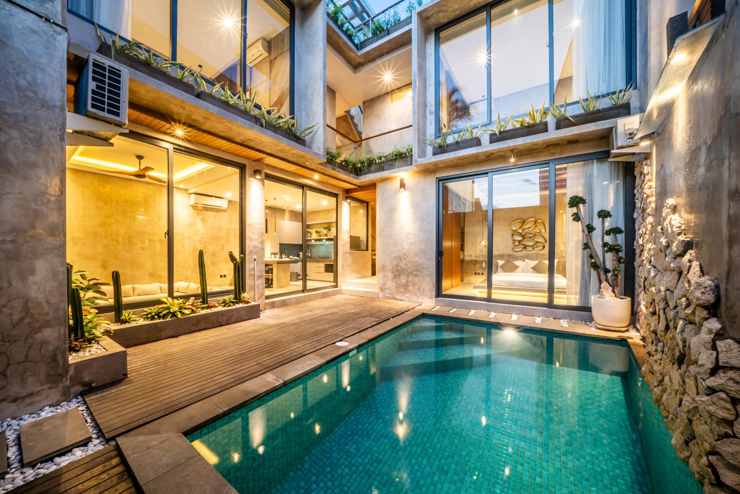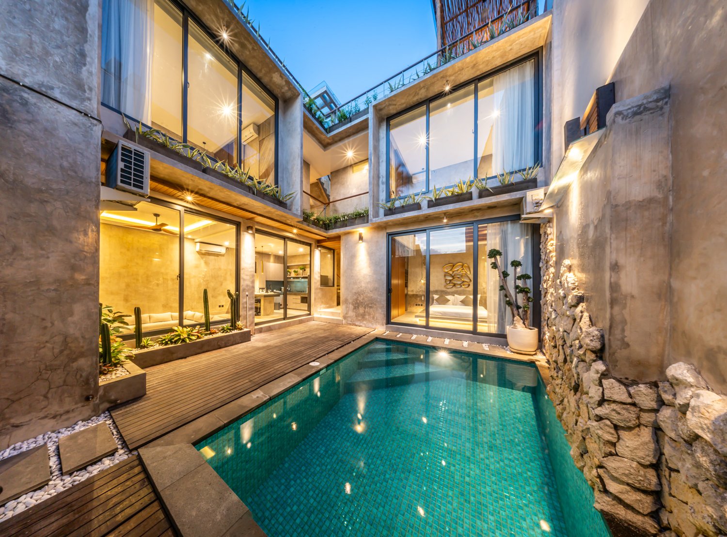 This modern industrial villa in Canggu Kayu Tulang is immediately available for yearly rent. The property features a two-story layout plus a rooftop area, offering views of the private pool and the surrounding residential neighborhood. Located in a prime spot, the villa is conveniently situated near popular places like Joomba Smoothies and Bali Social Club for Padel and Wellness, and is only a 5-minute bike ride to Echo Beach.
