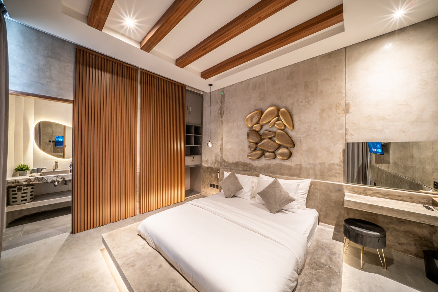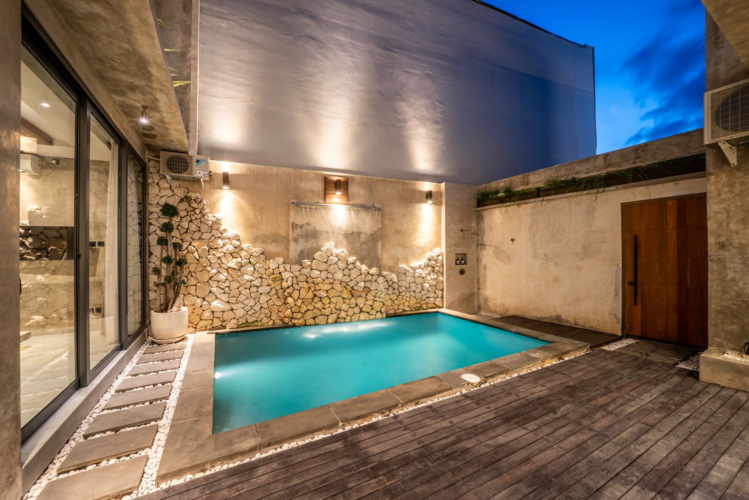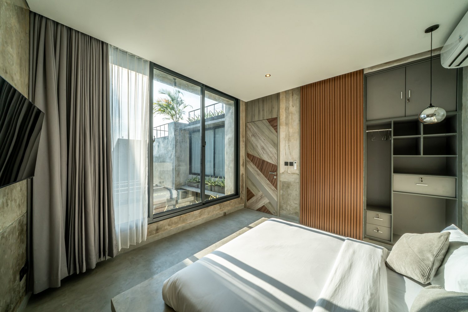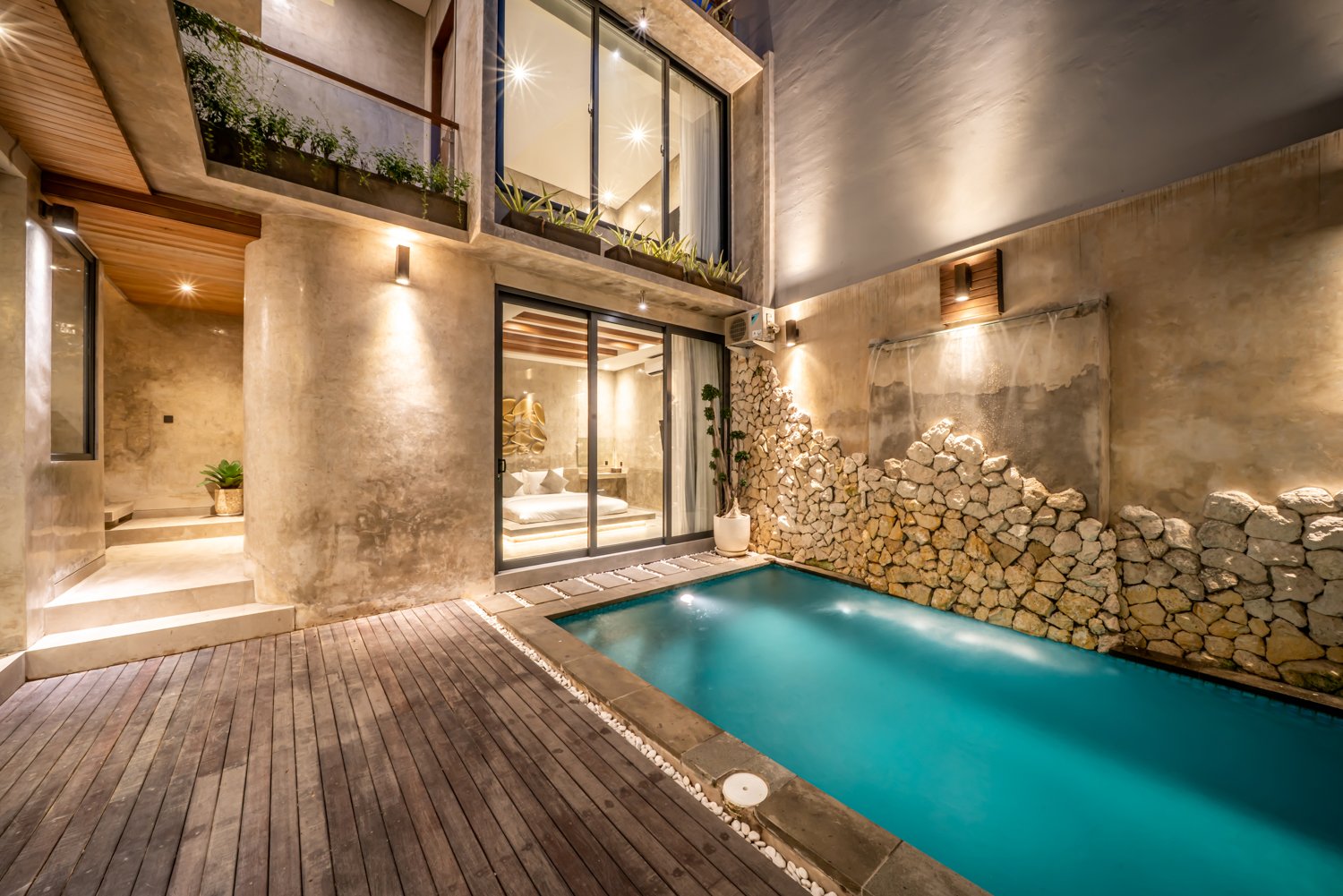 This modern industrial villa in Canggu Kayu Tulang is immediately available for yearly rent. The property features a two-story layout plus a rooftop area, offering views of the private pool and the surrounding residential neighborhood. Located in a prime spot, the villa is conveniently situated near popular places like Joomba Smoothies and Bali Social Club for Padel and Wellness, and is only a 5-minute bike ride to Echo Beach.